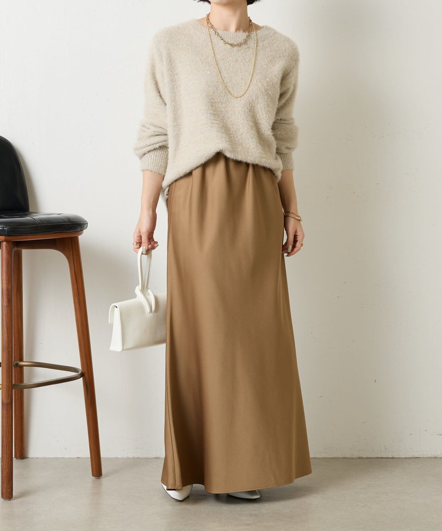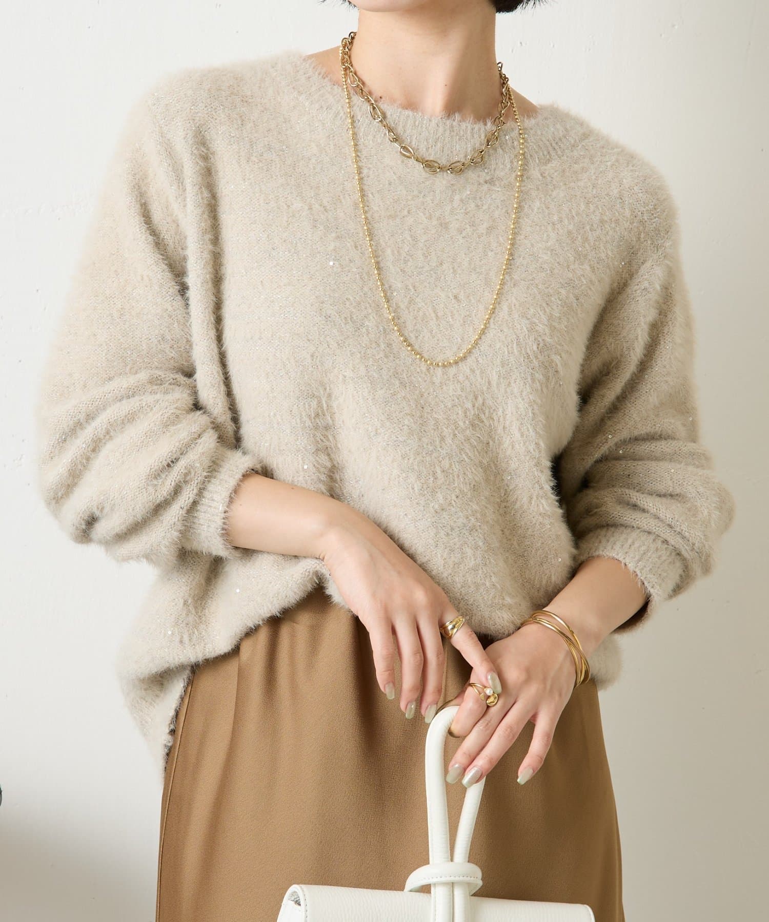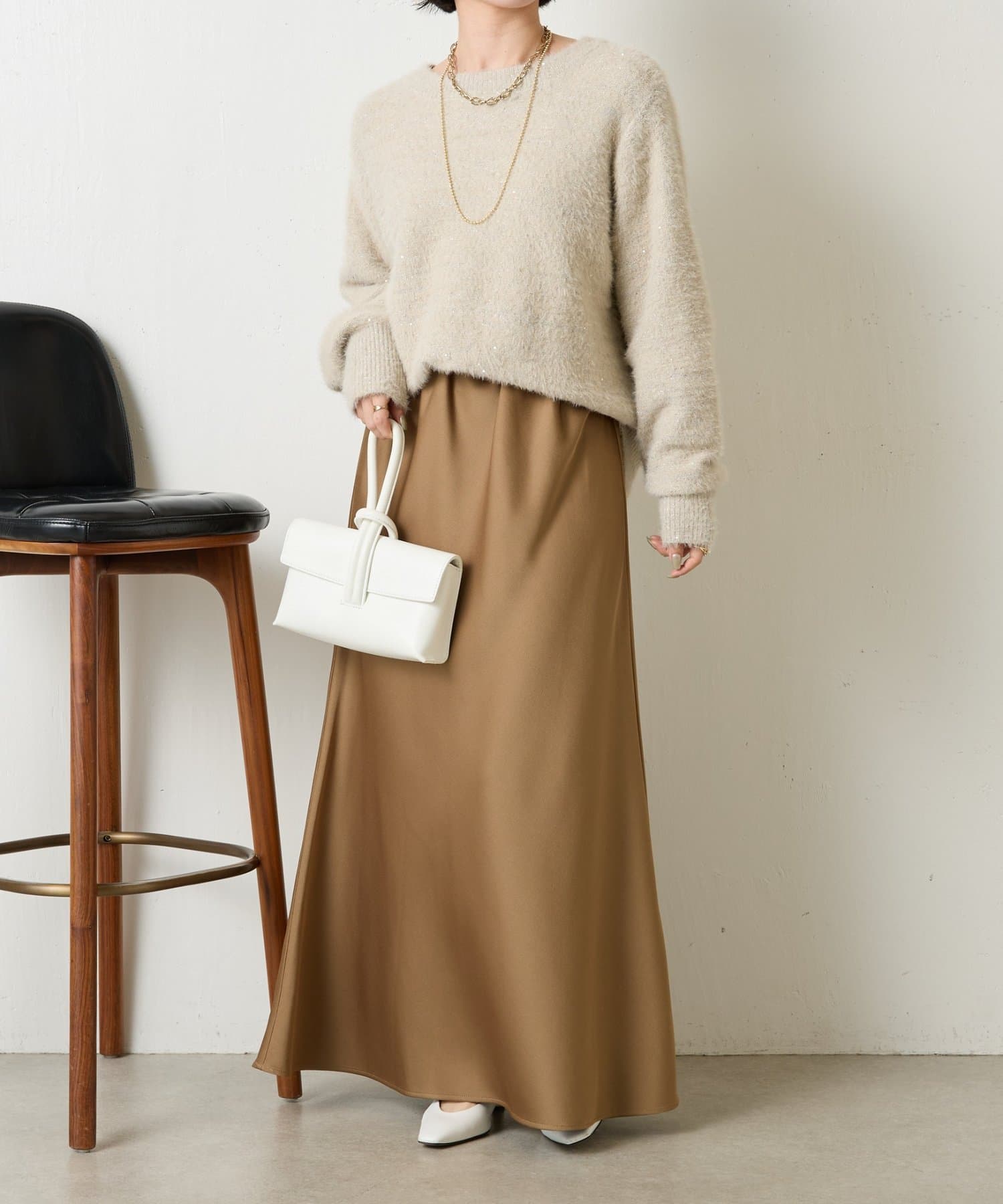 ・さりげないラメ生地がコーディネートを華やかに。