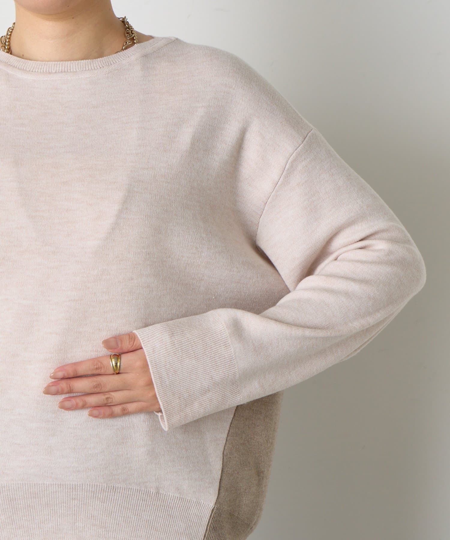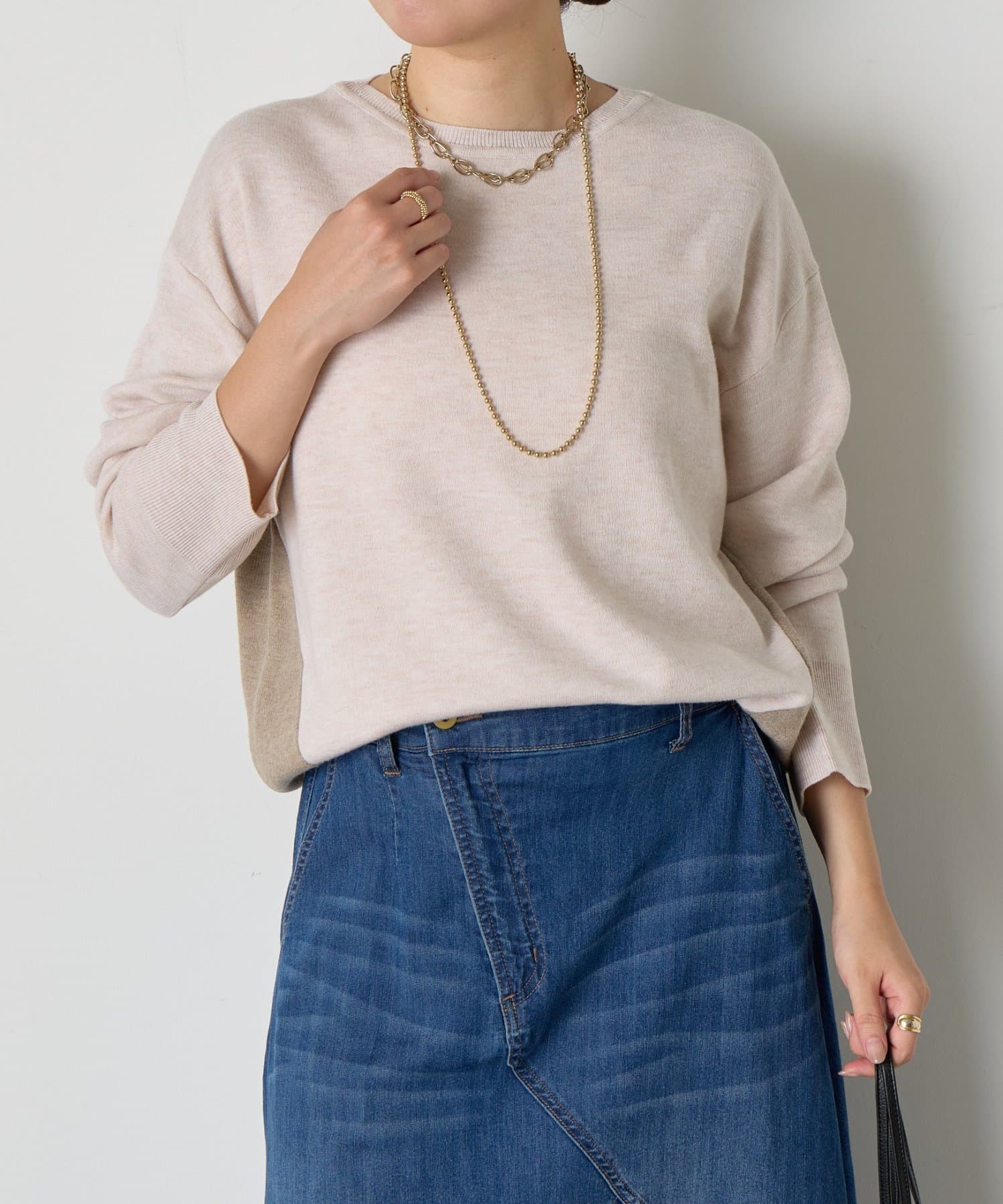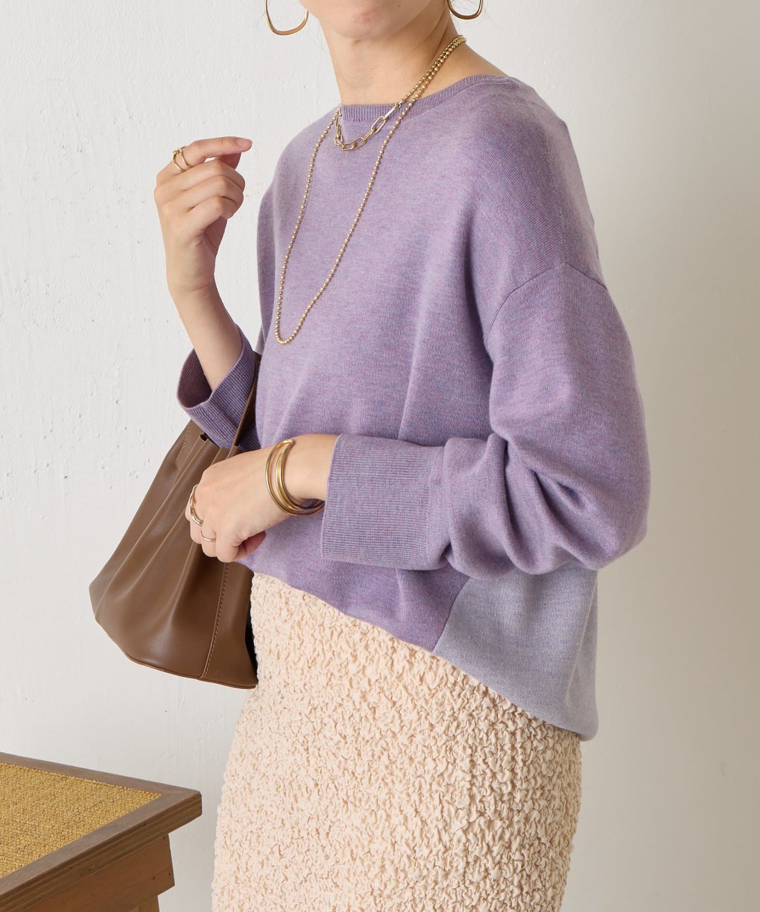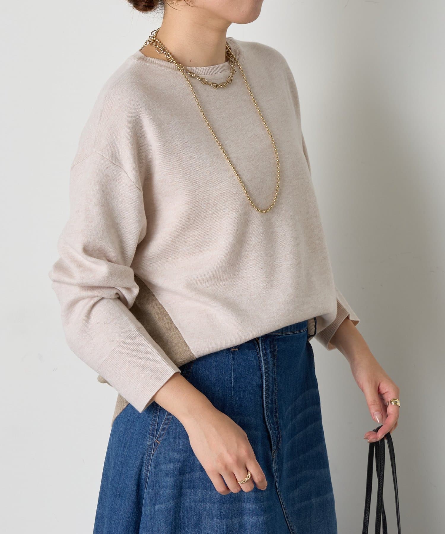 ・裾に向かった配色デザインがすっきり見えする綺麗見えニット。