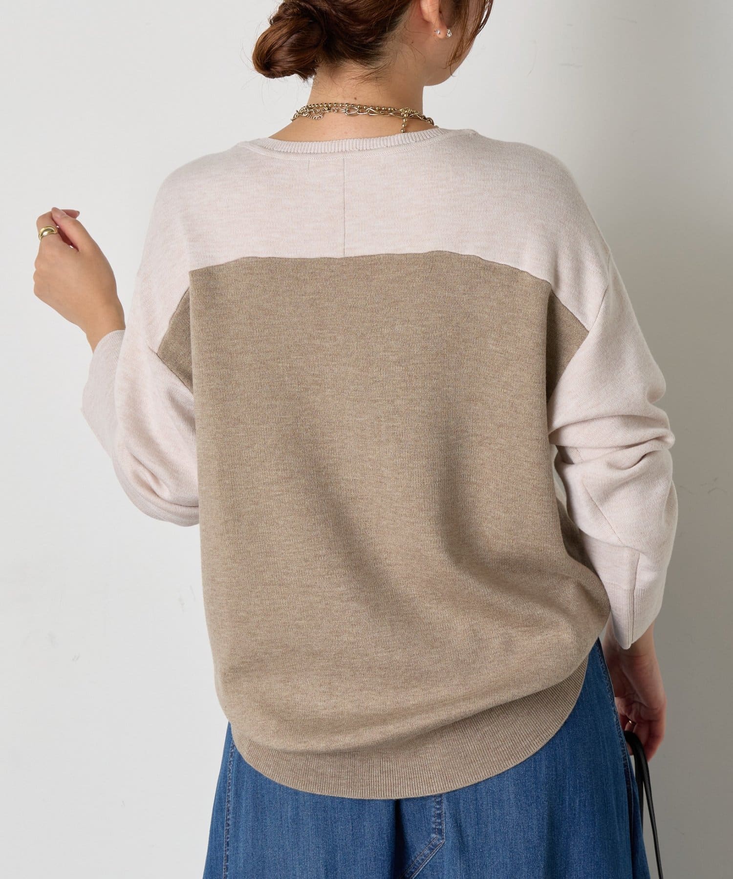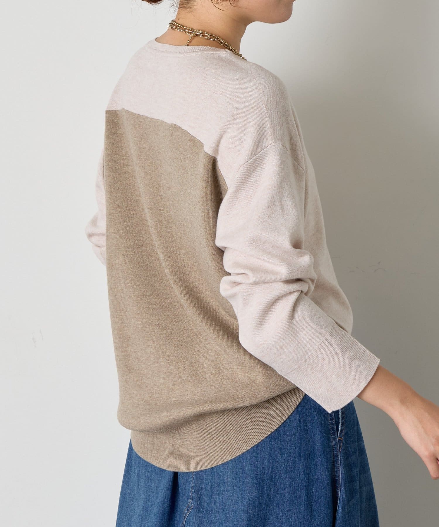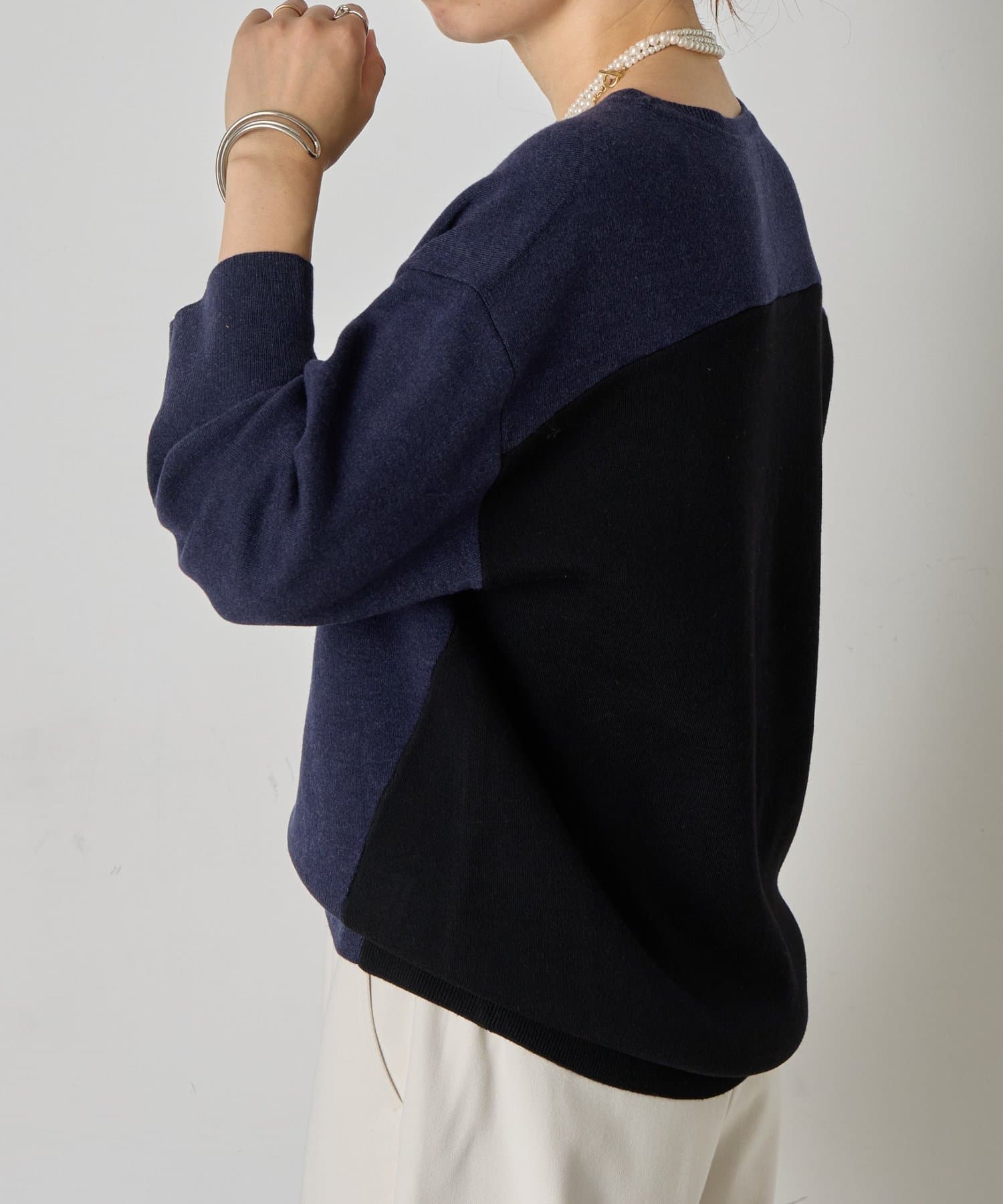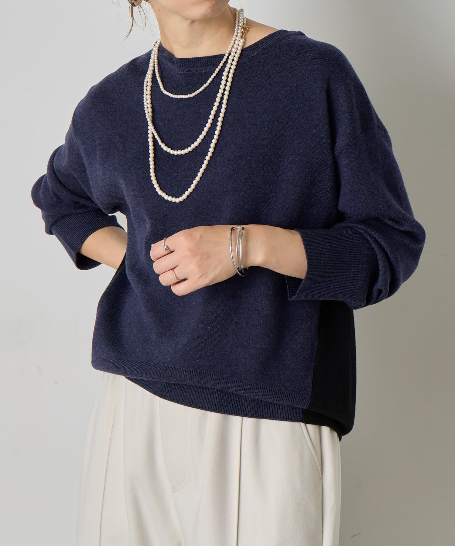 ・裾に向かった配色デザインがすっきり見えする綺麗見えニット。