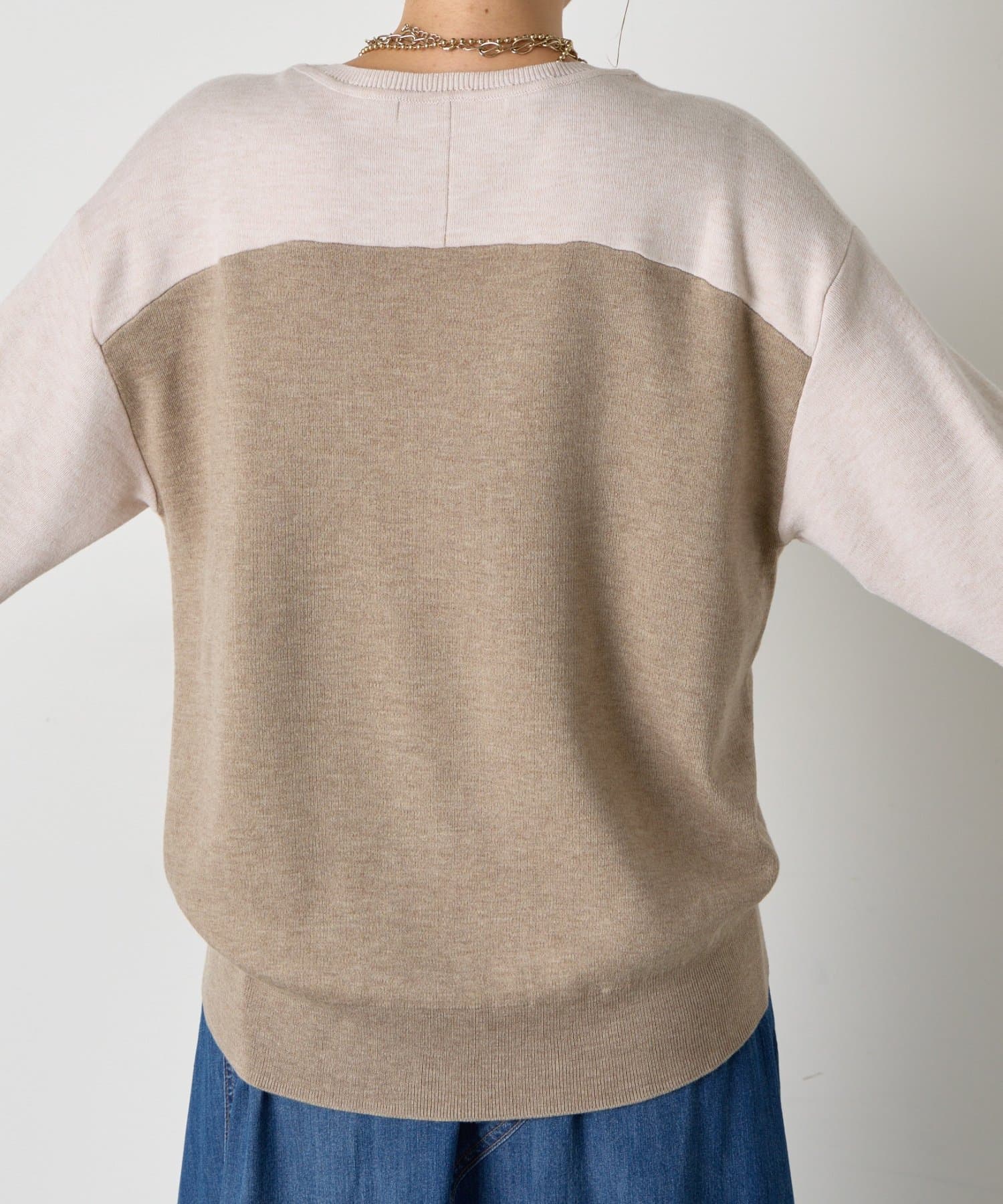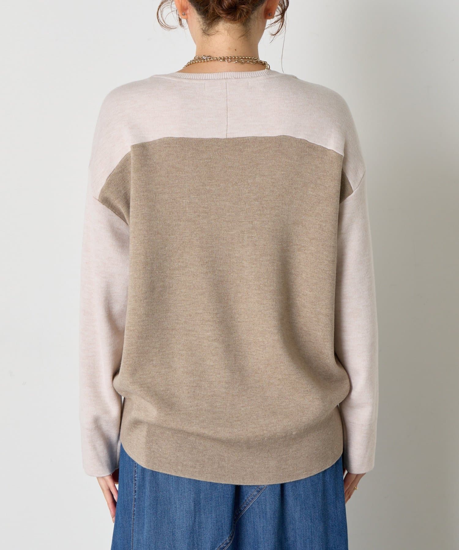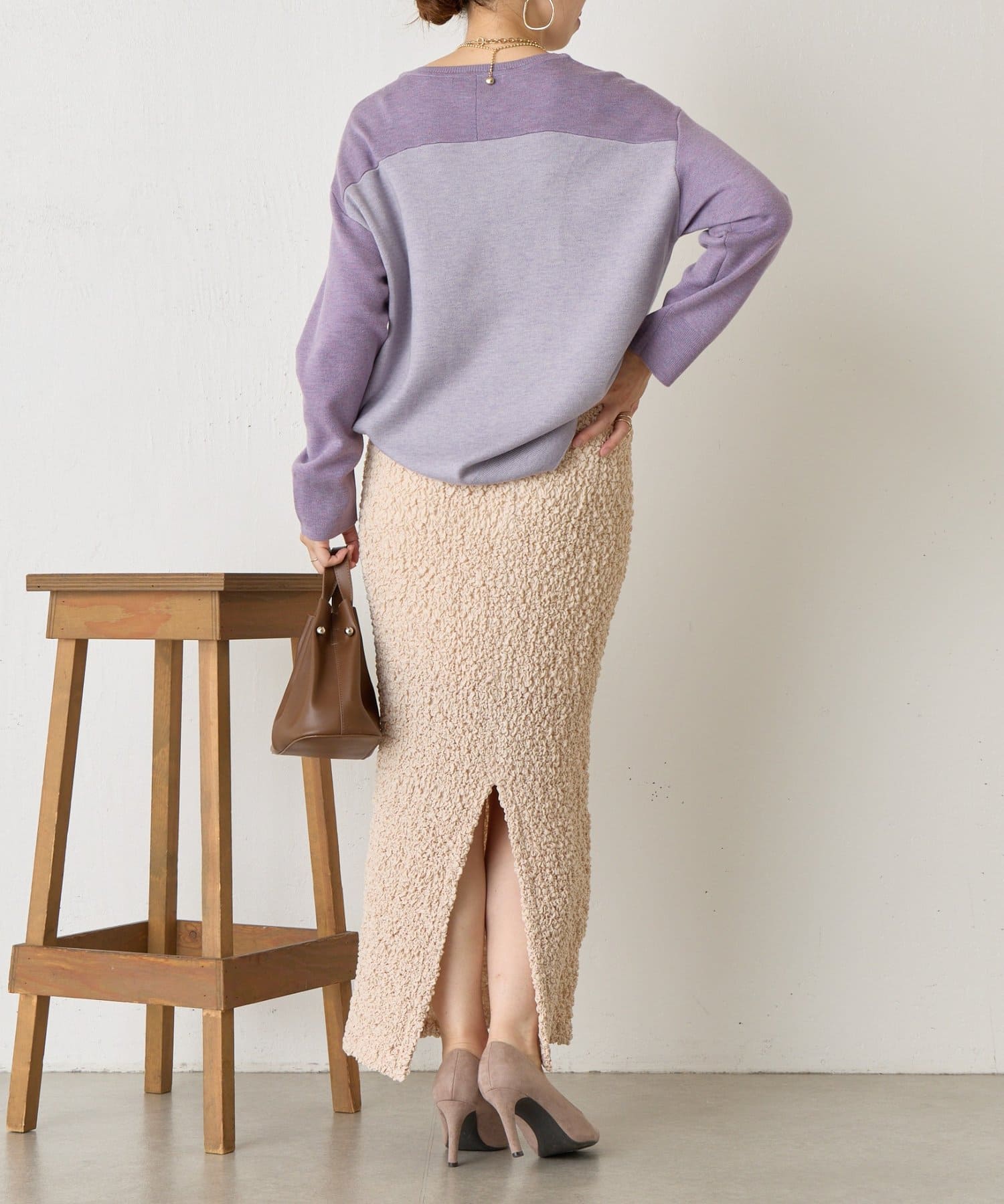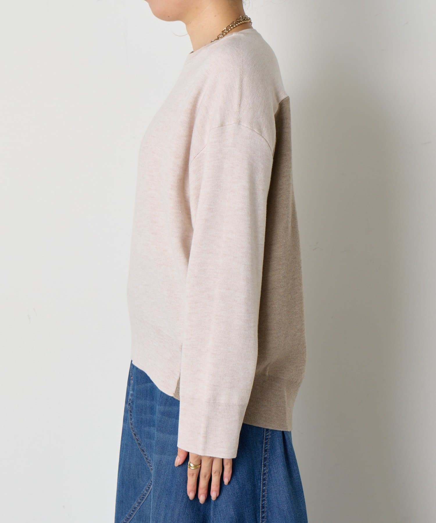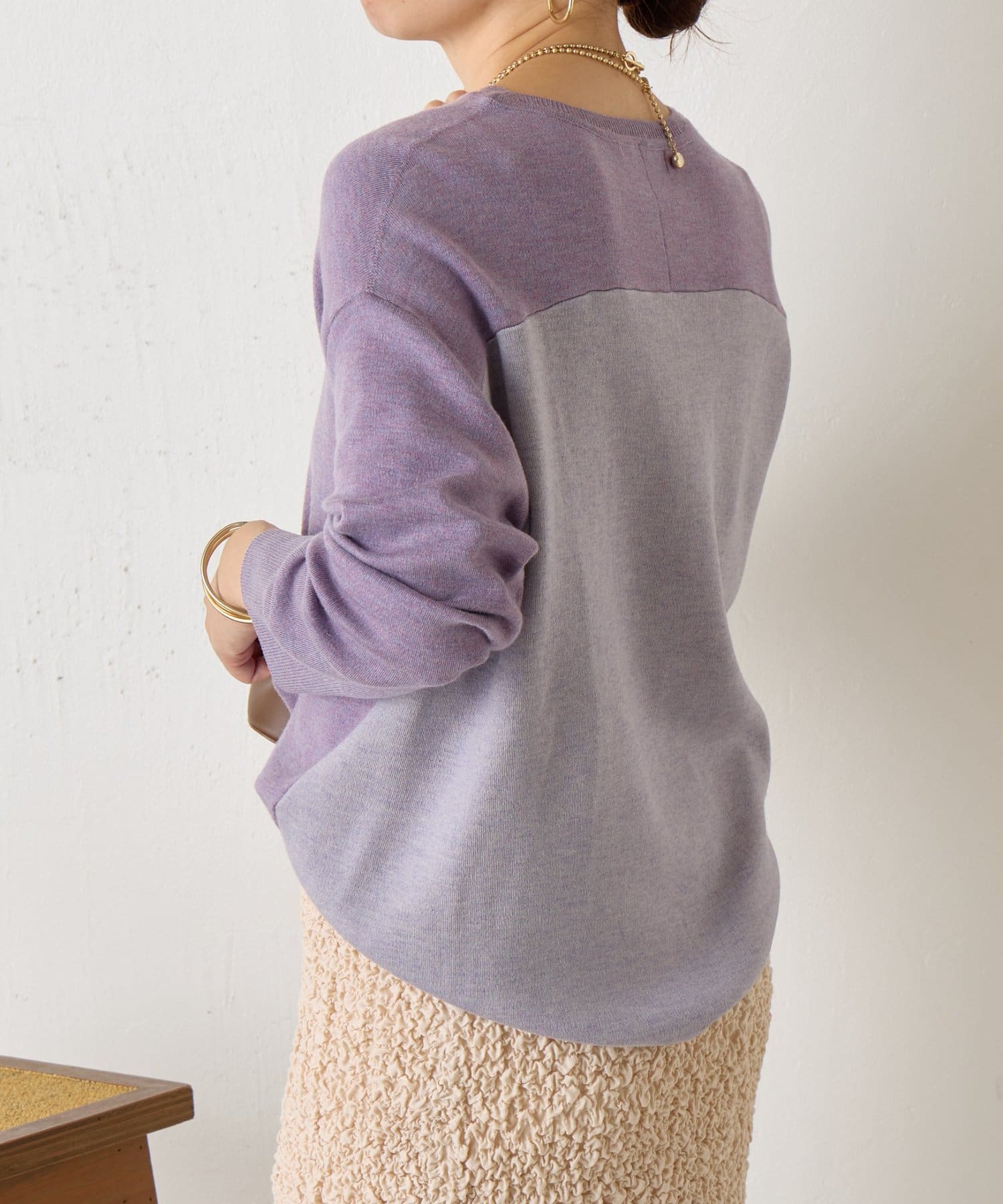 ・裾に向かった配色デザインがすっきり見えする綺麗見えニット。