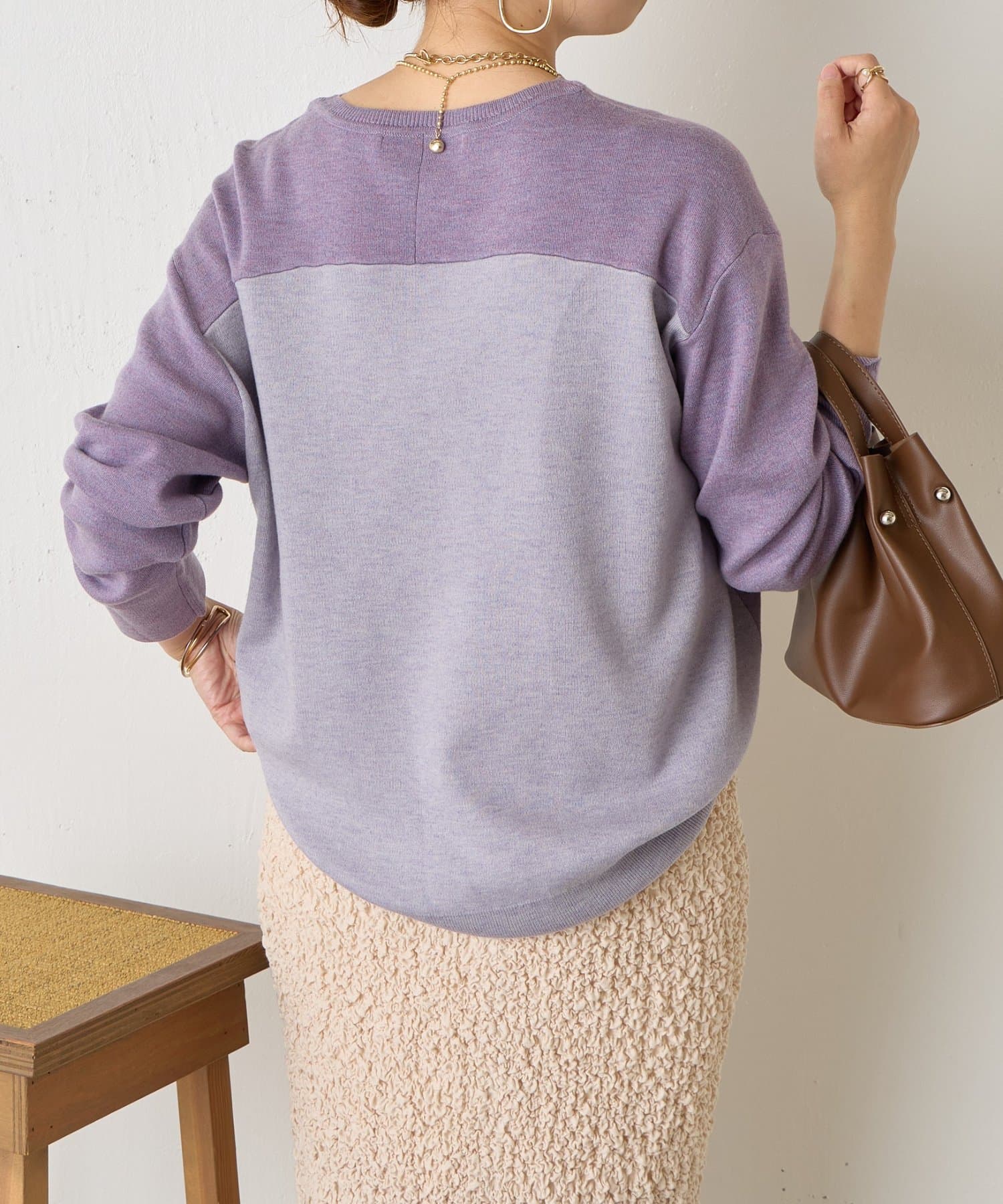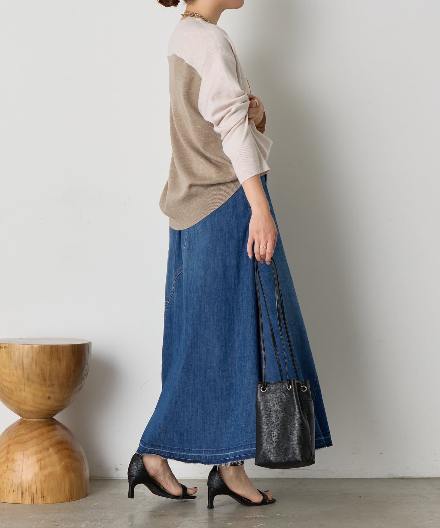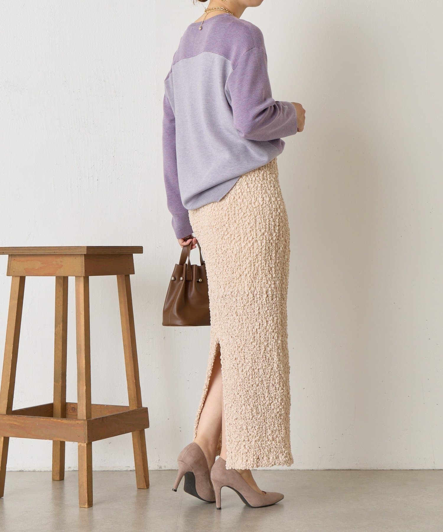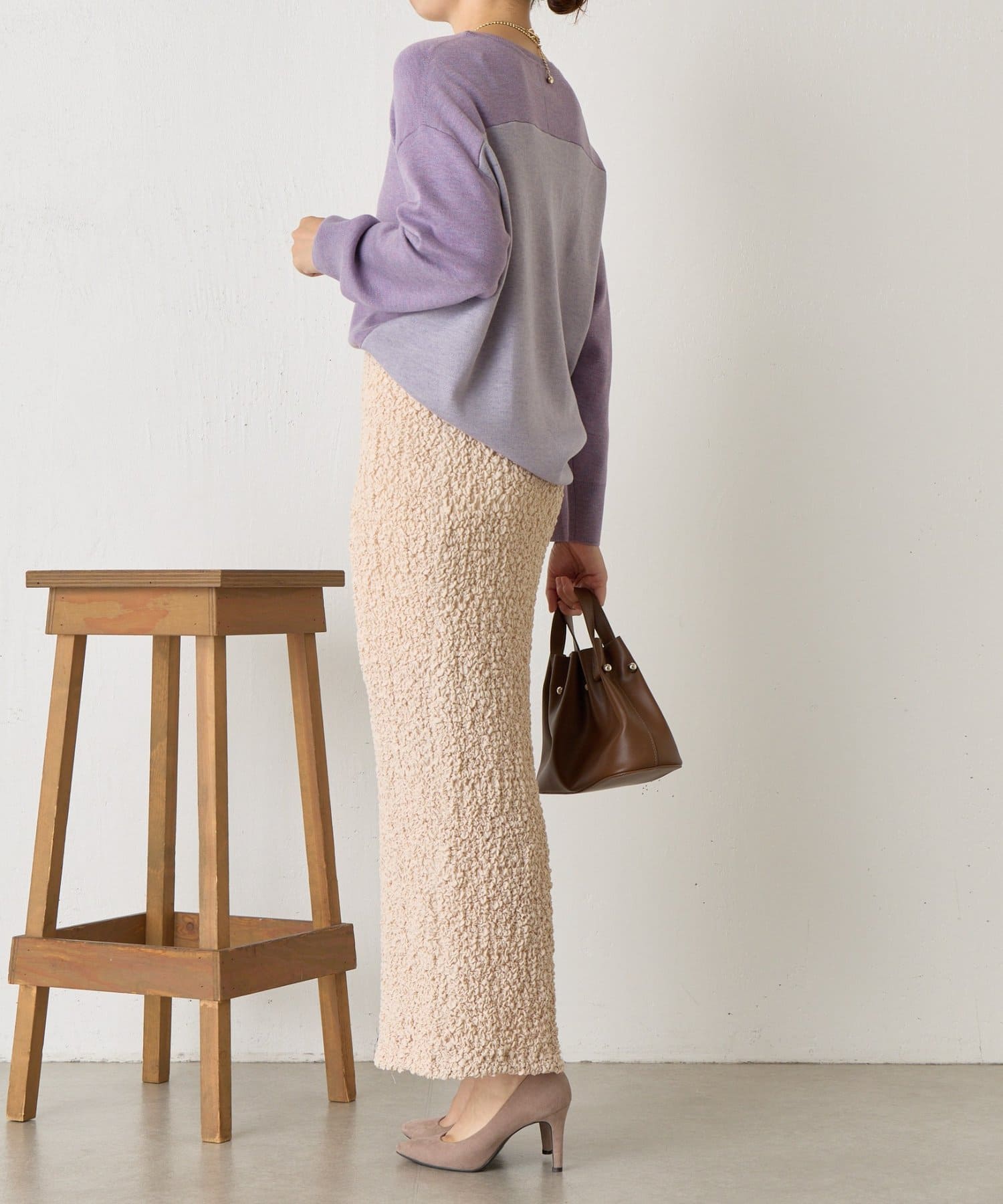 ・裾に向かった配色デザインがすっきり見えする綺麗見えニット。