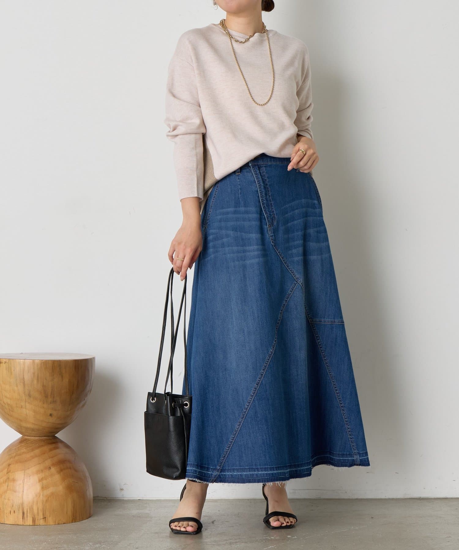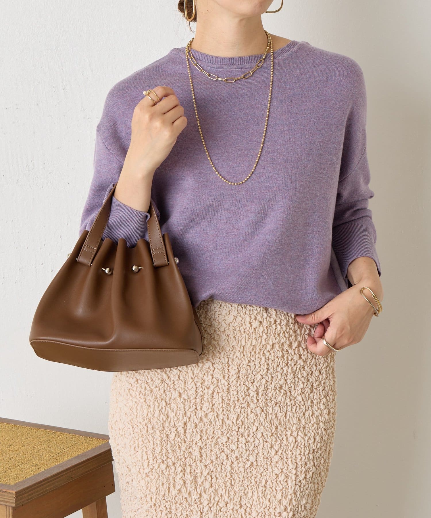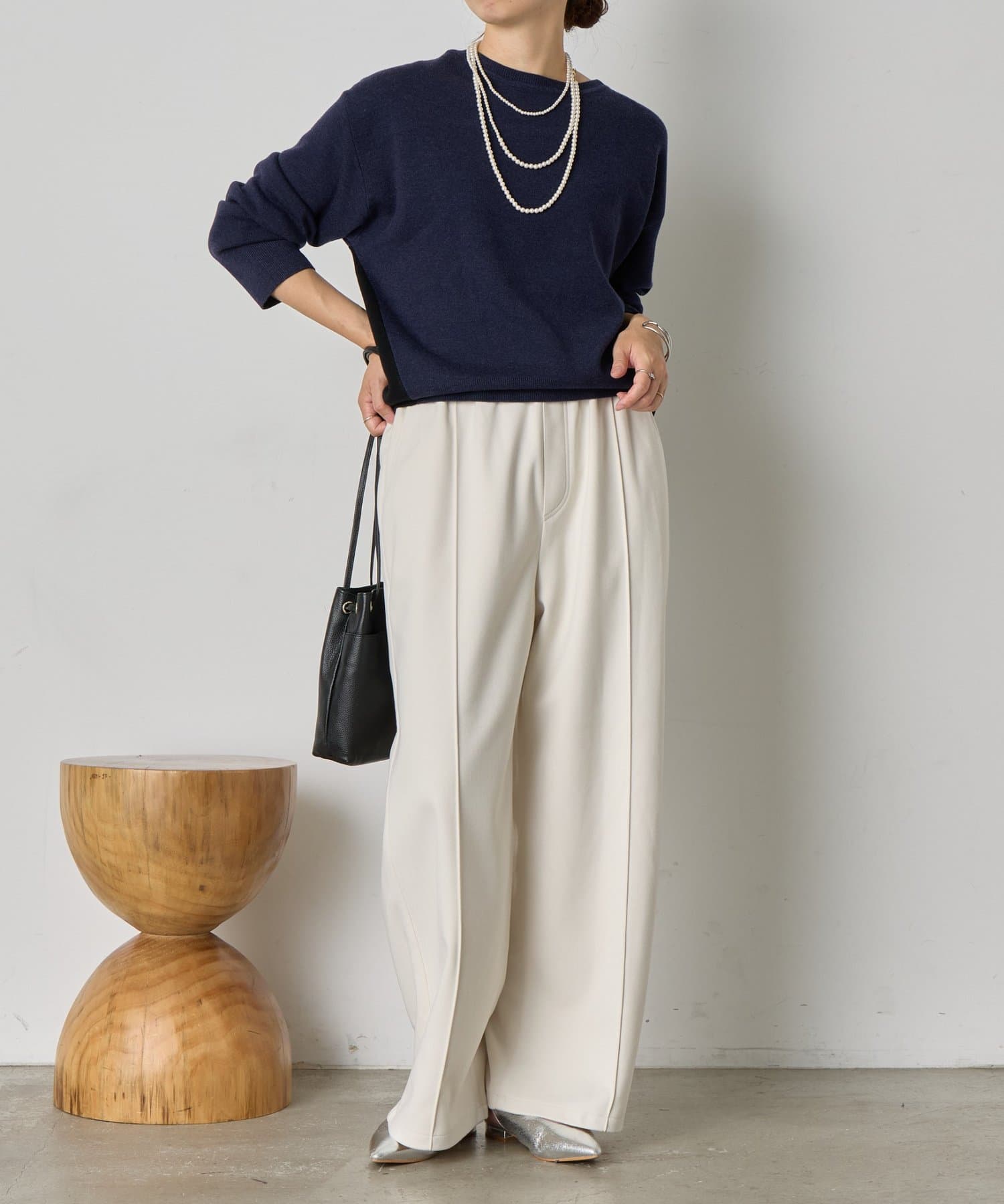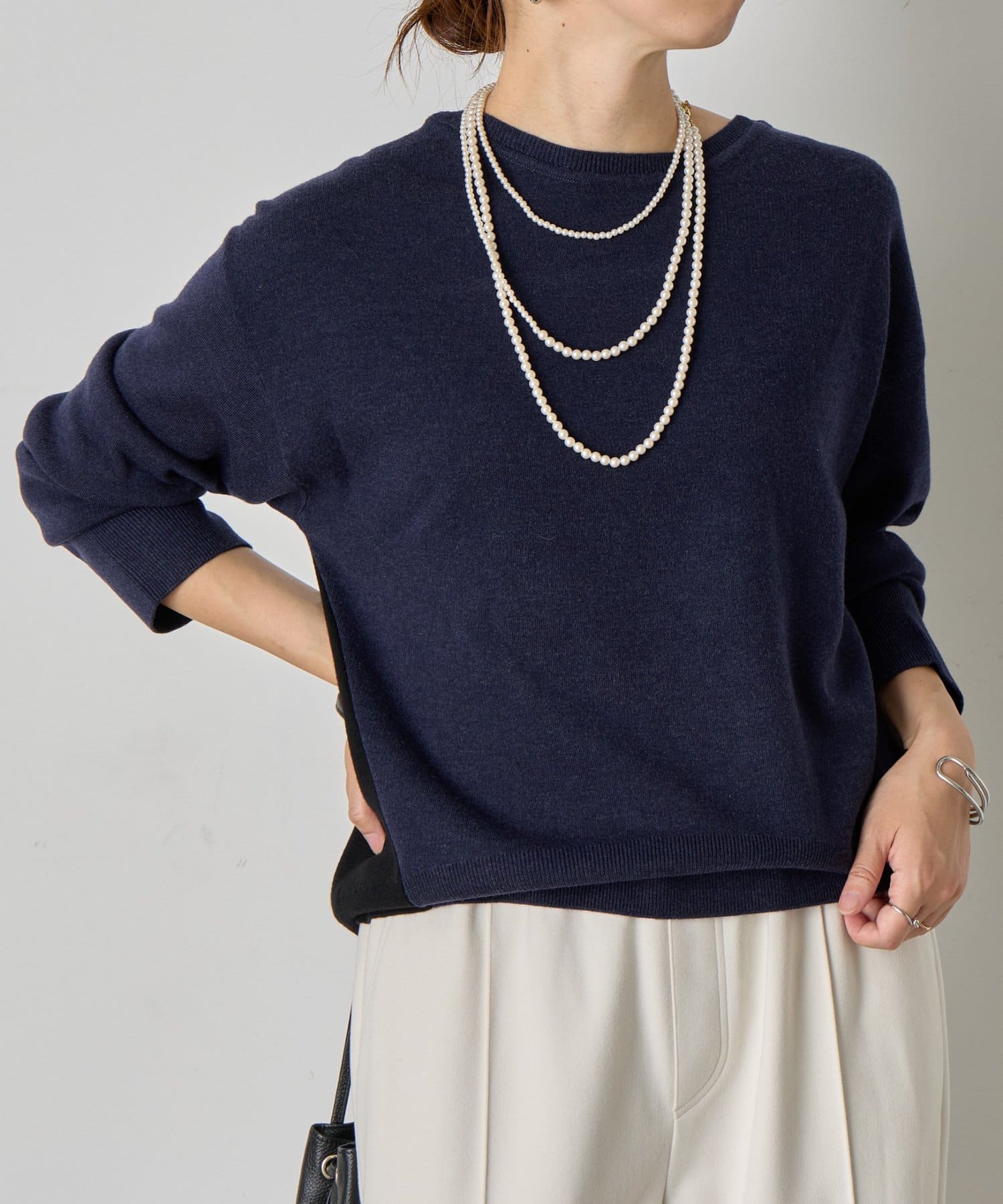 ・詰まりすぎないボートネックが品の良い女性らしい印象に。