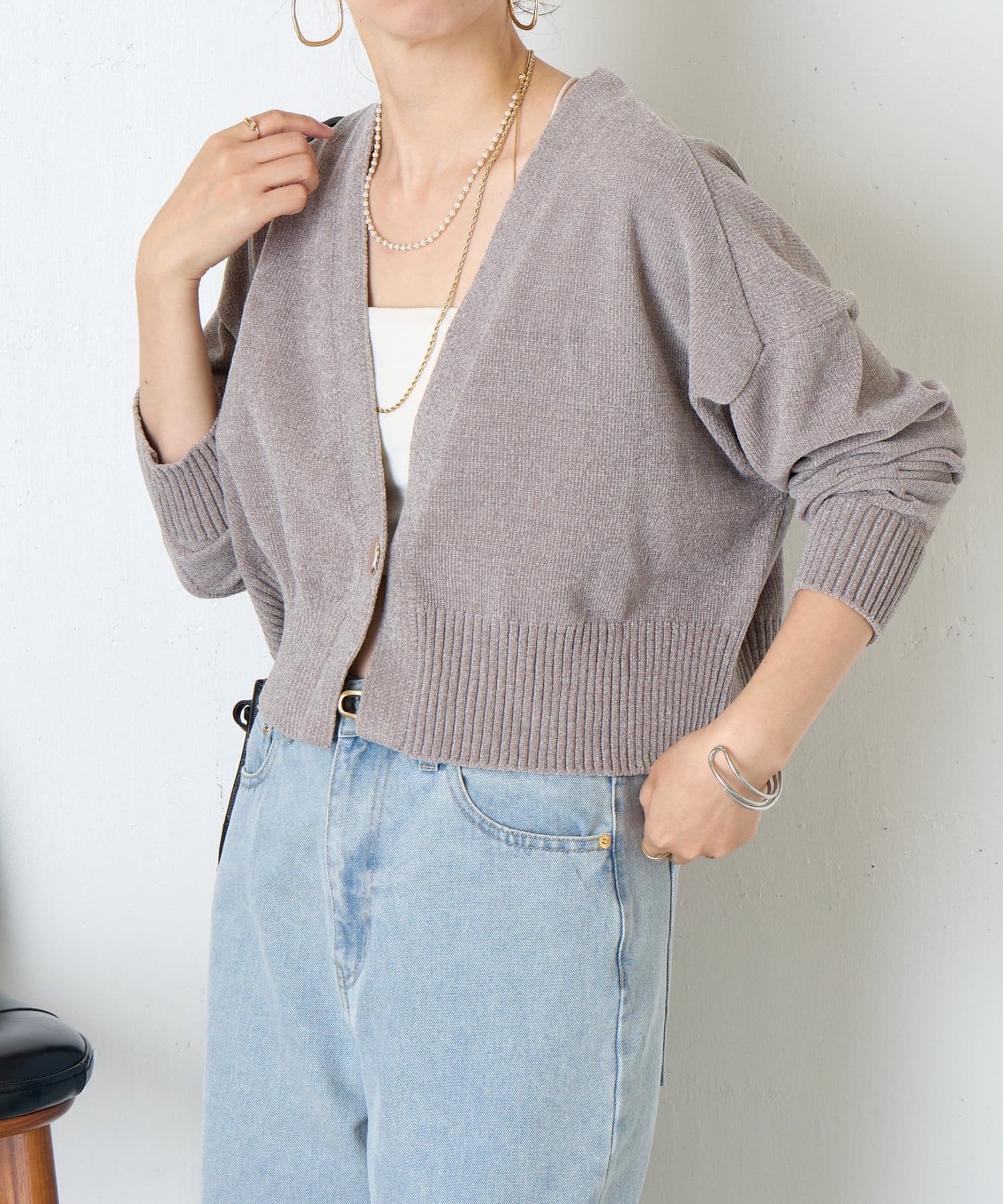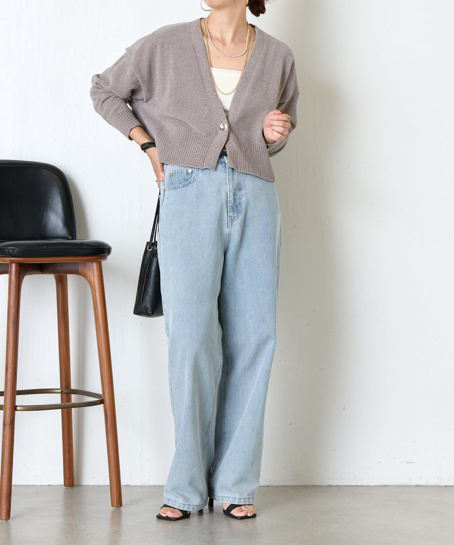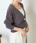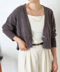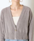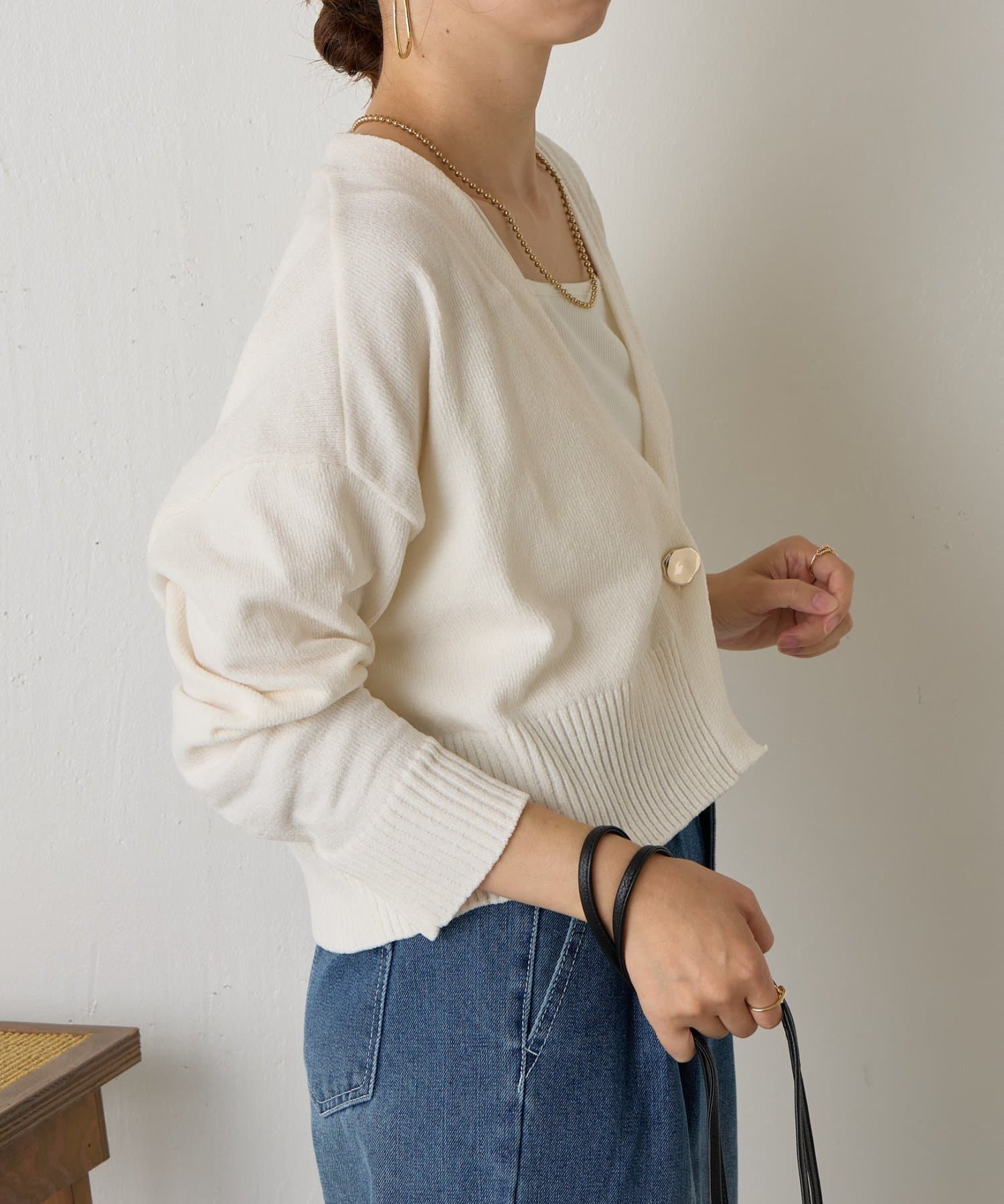 ・存在感のある大きなゴールドボタンがアクセントになったショートカーディガン。