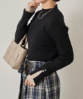 ・袖口にシアーニットがレイヤードされたデザインニット。