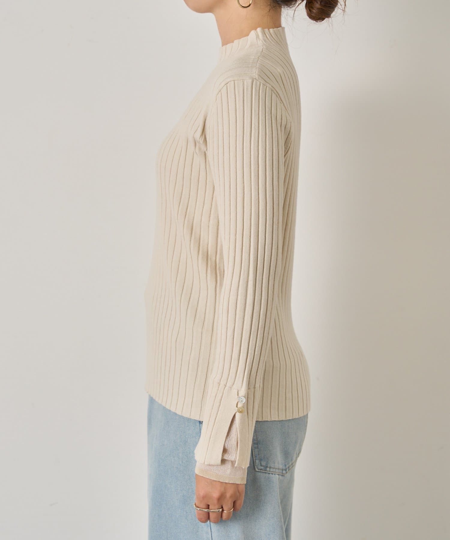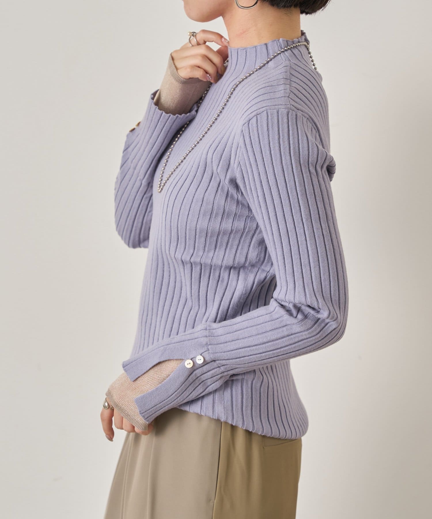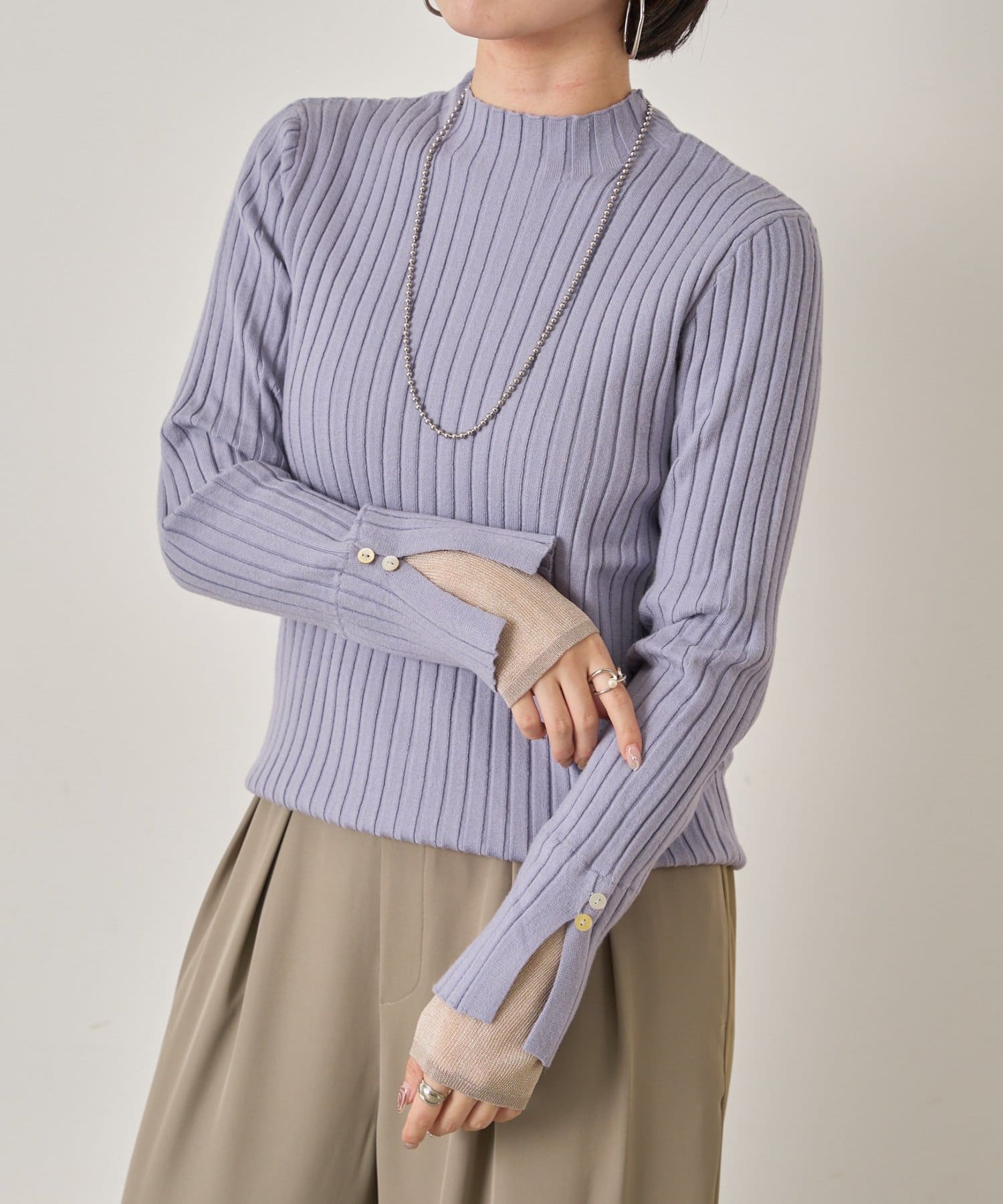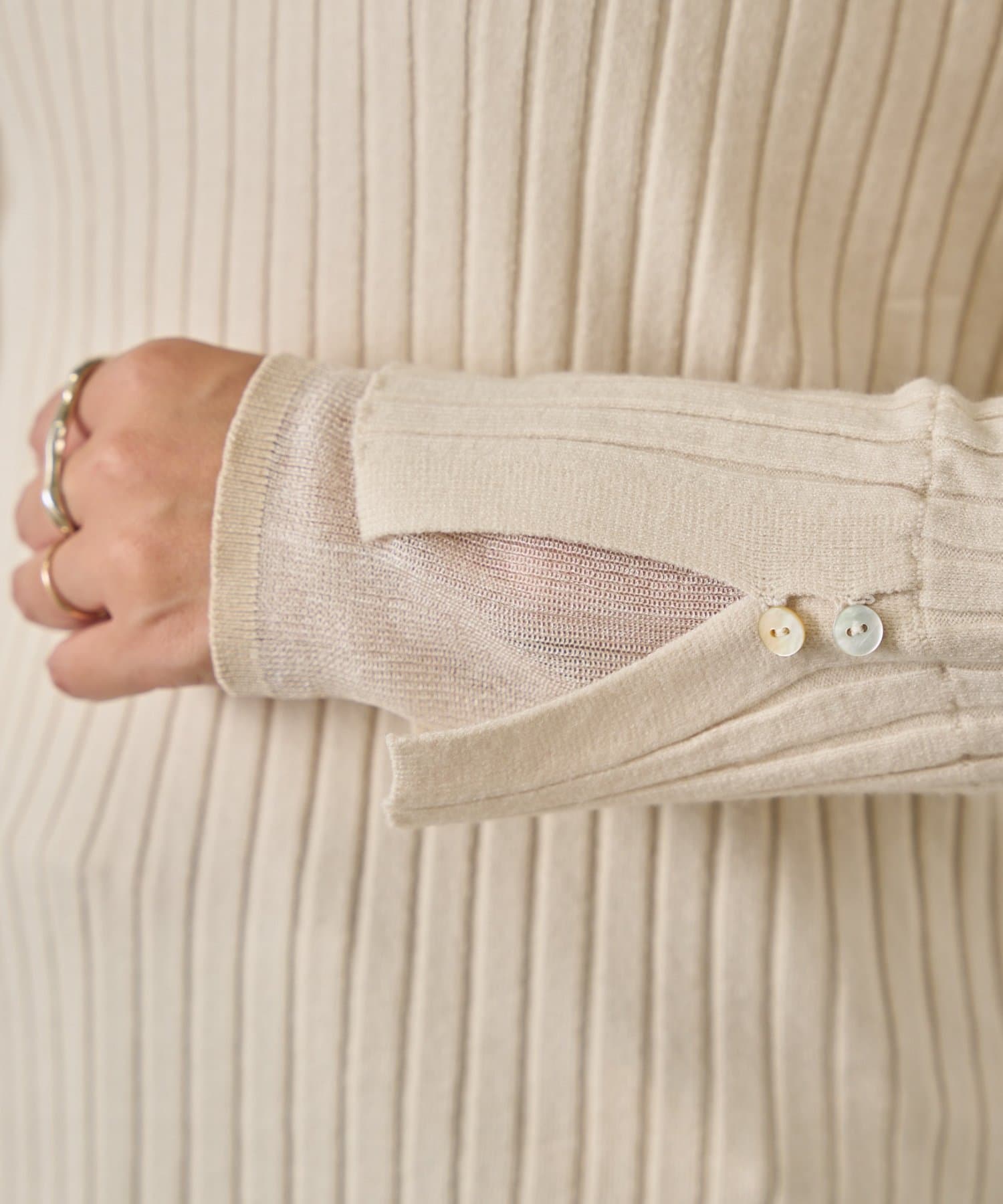 手元から華やぐ、ボタン付きレイヤードリブニット