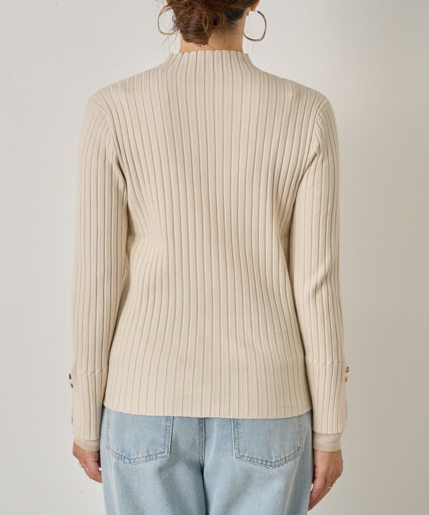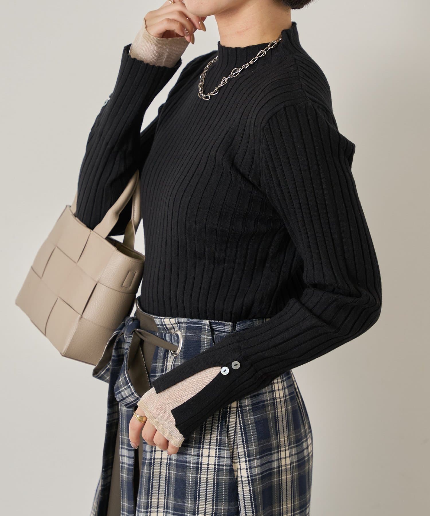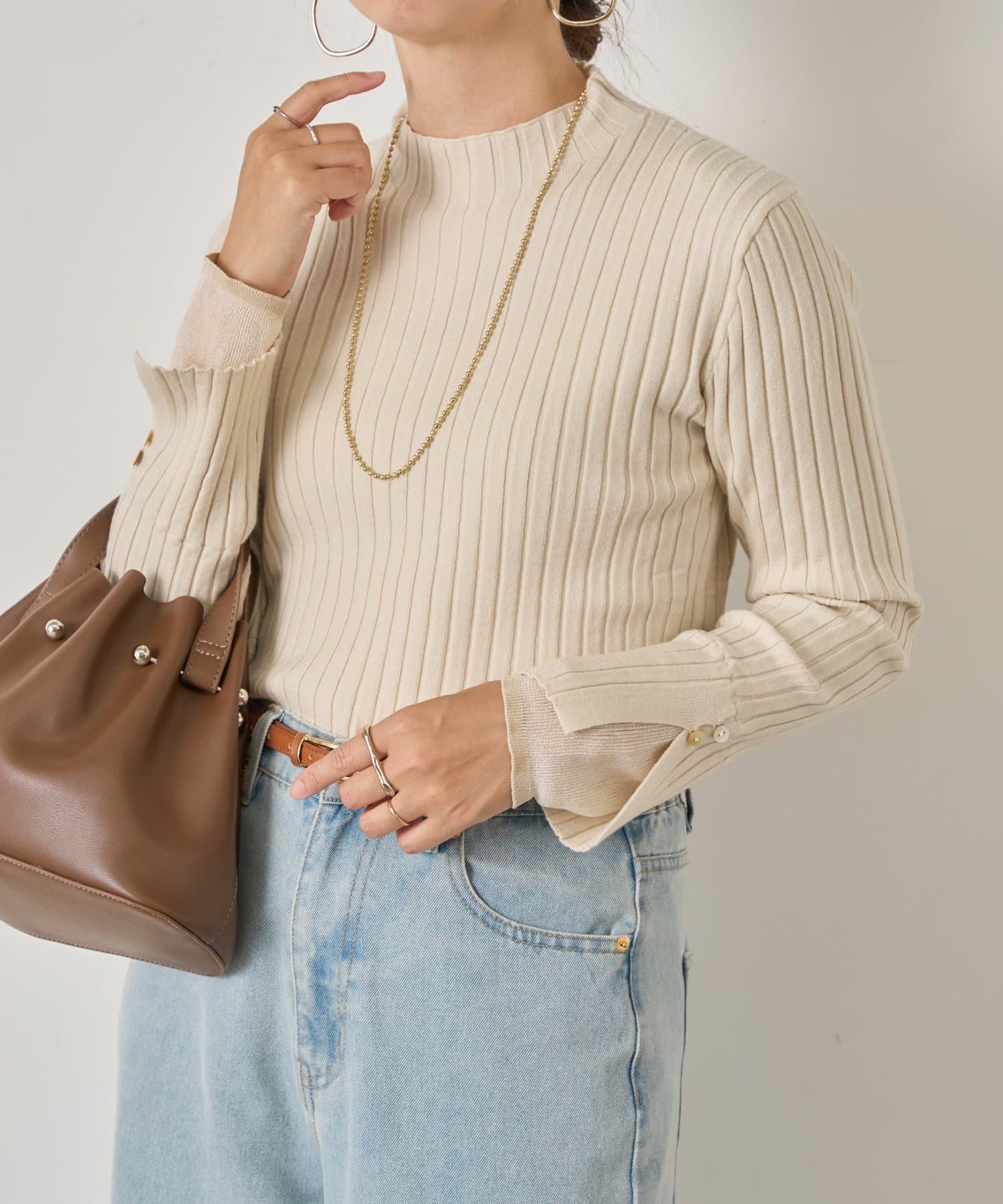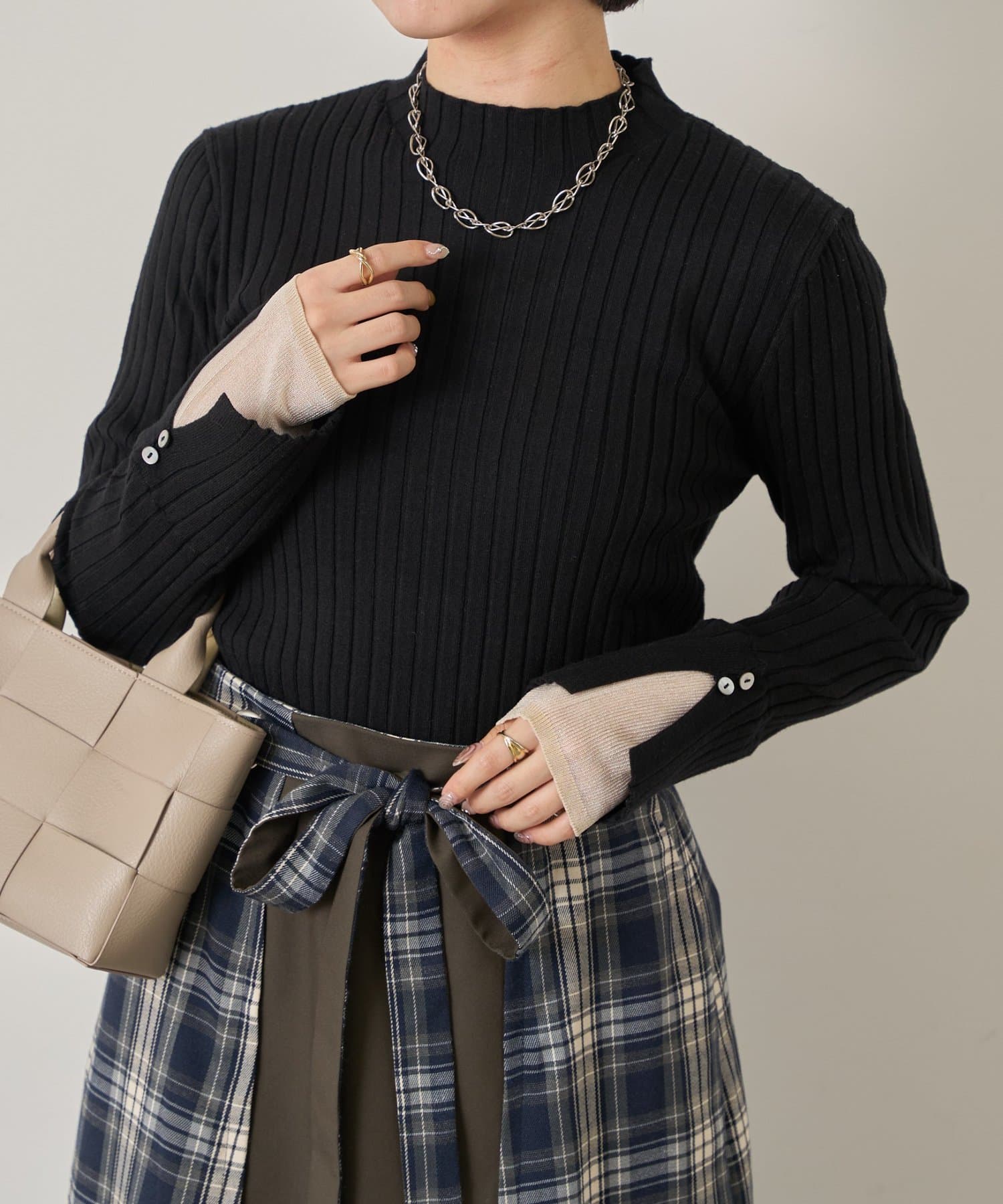 手元から華やぐ、ボタン付きレイヤードリブニット