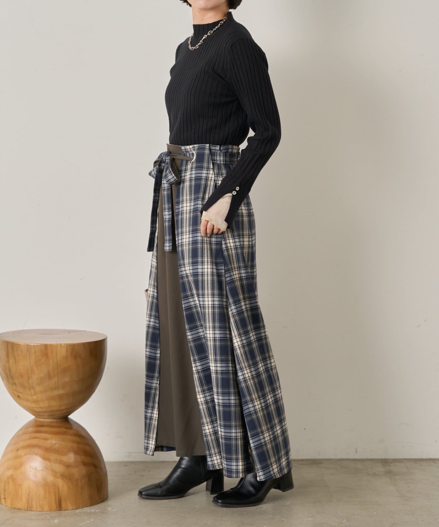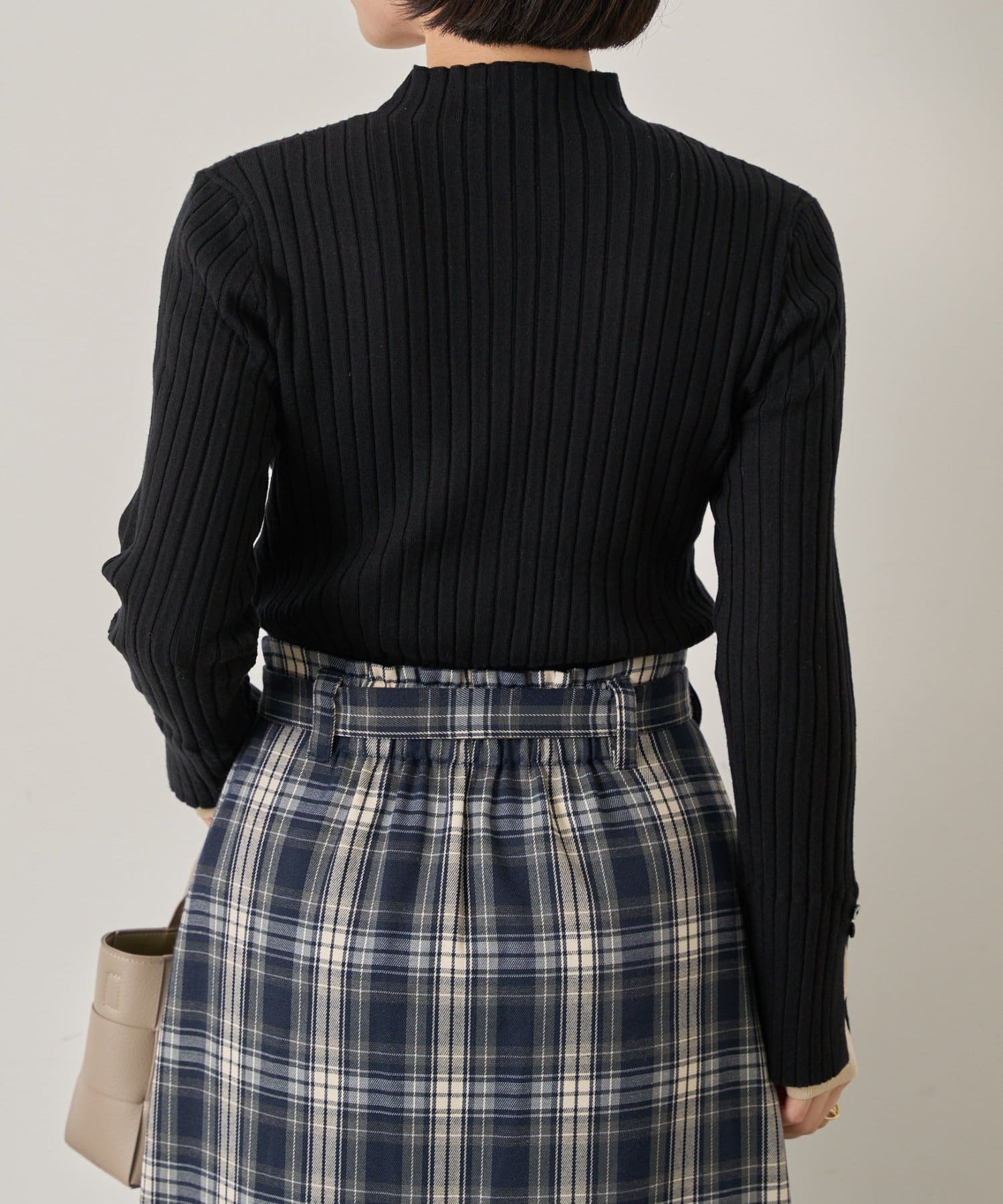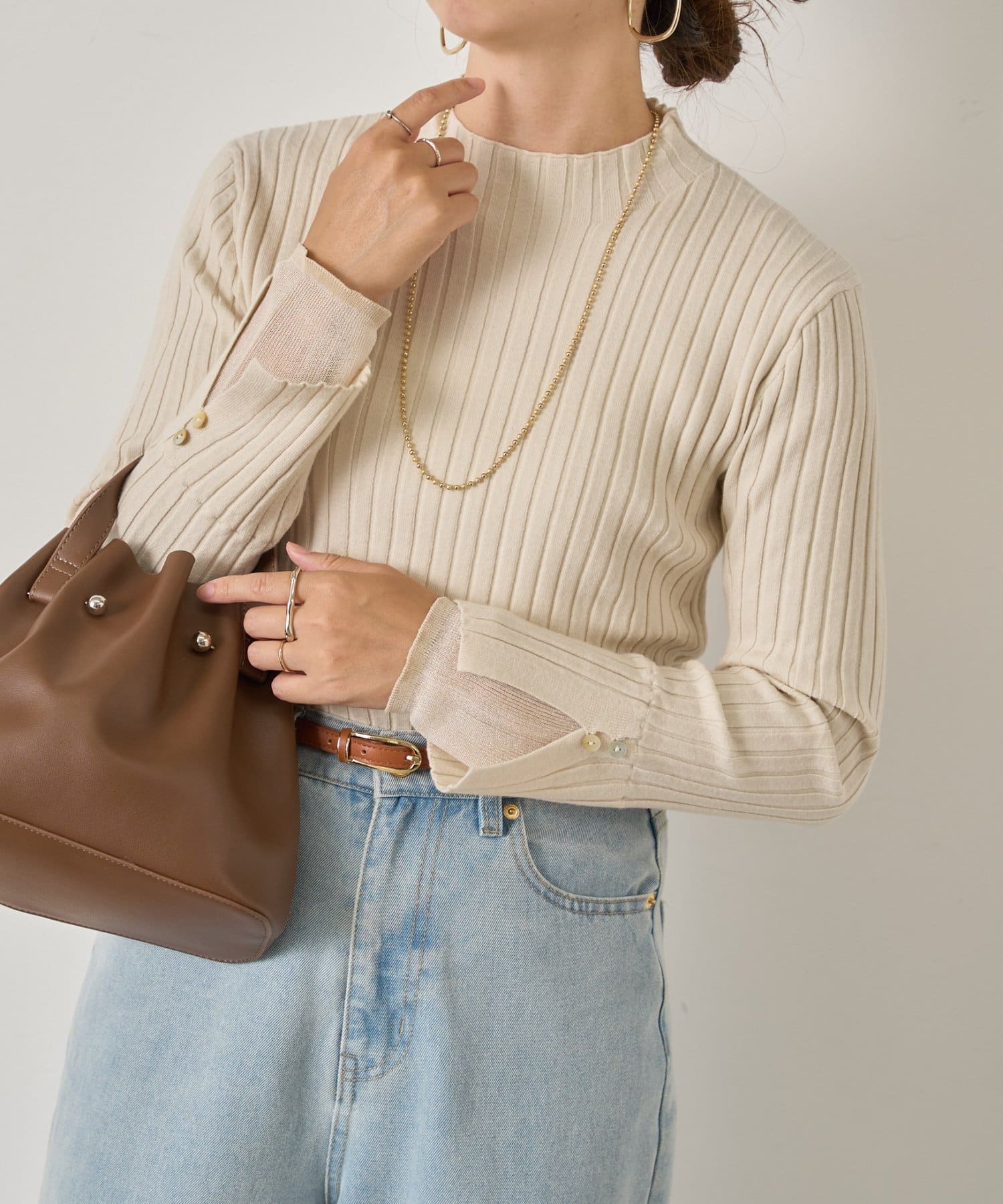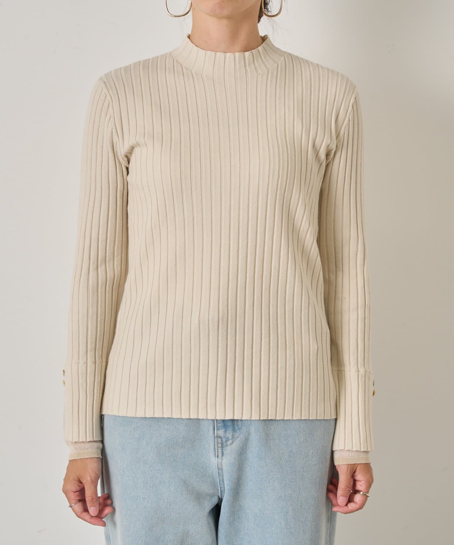 手元から華やぐ、ボタン付きレイヤードリブニット