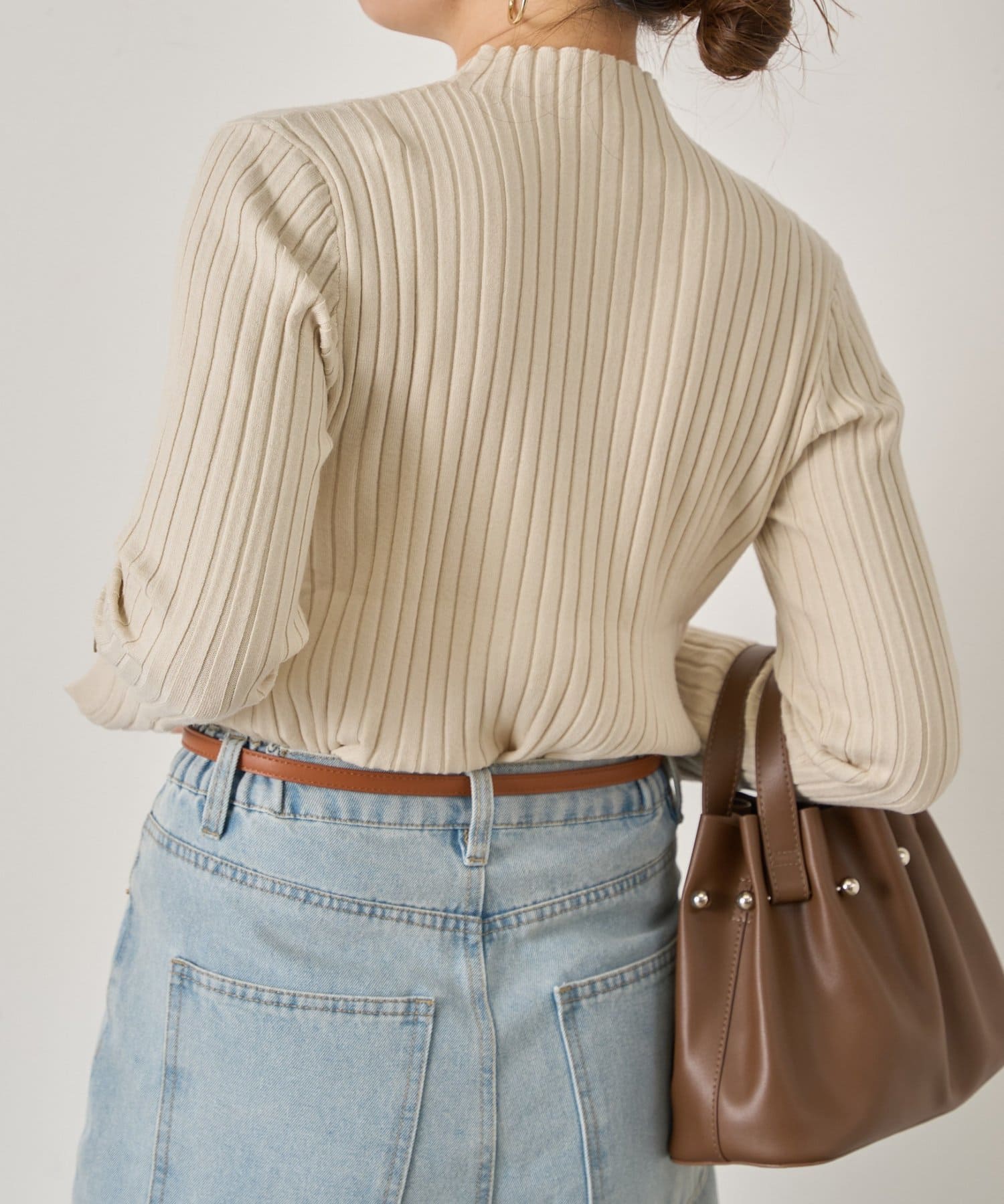 ・ほどよいフィット感と伸縮性も魅力◎縦ラインを強調するリブ編みは細見え効果も抜群です。