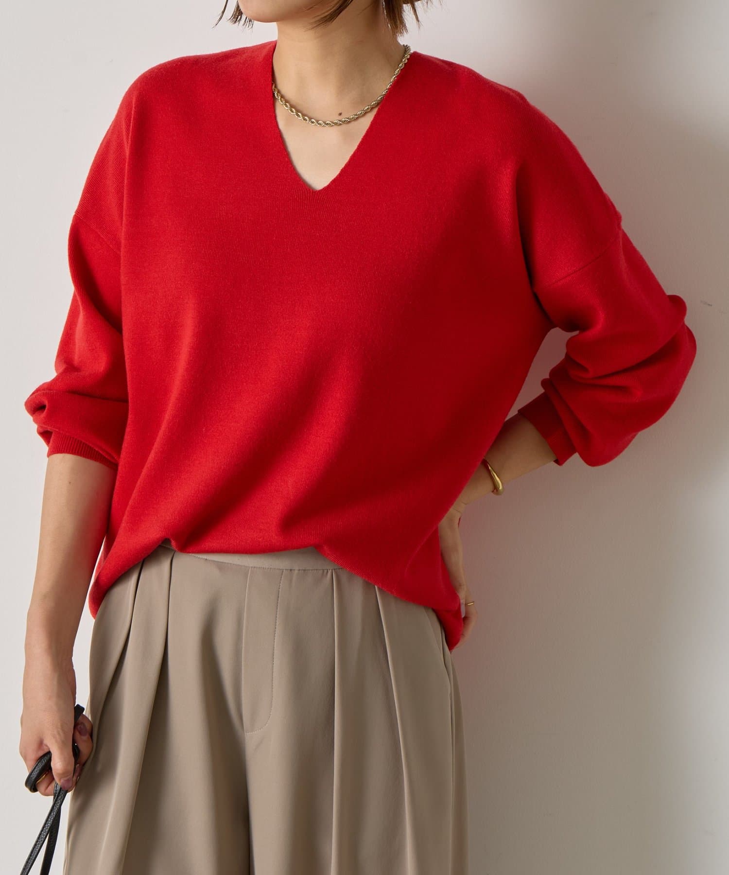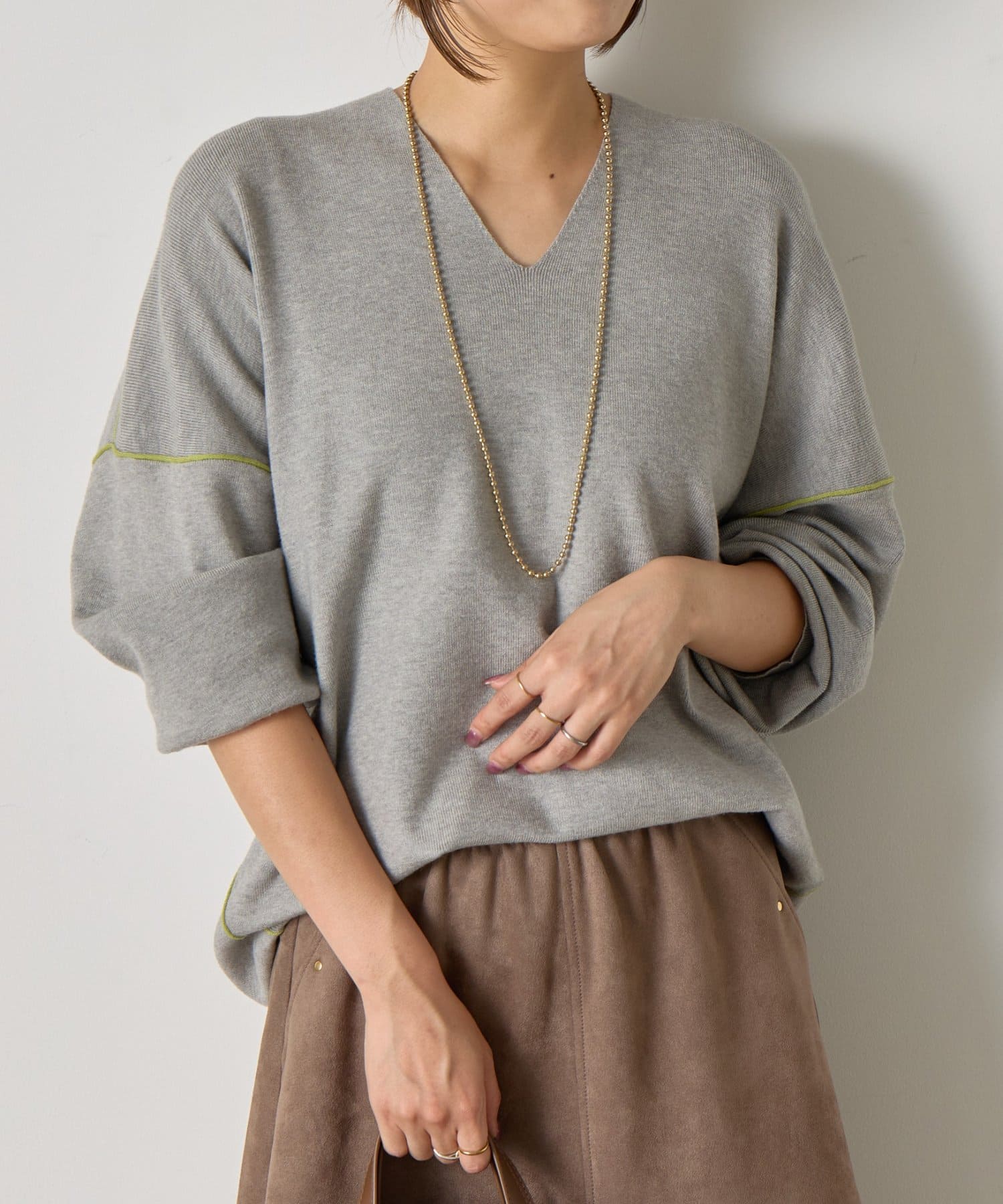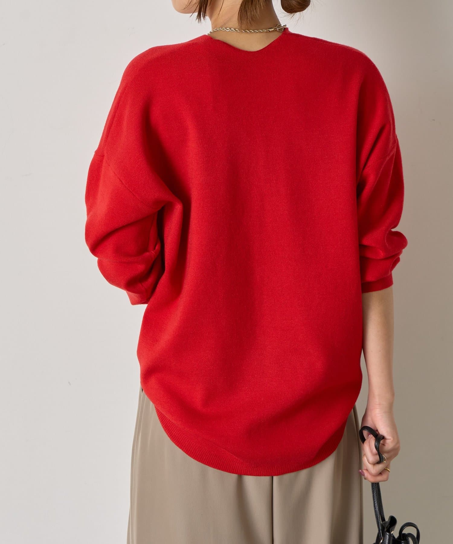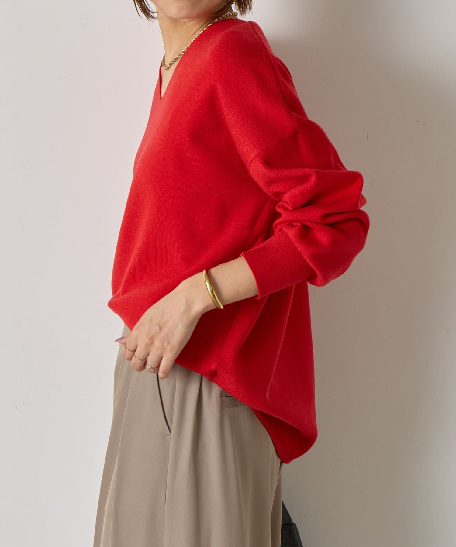・シンプルながら一枚で着映えするドルマンスリーブのニットトップス。