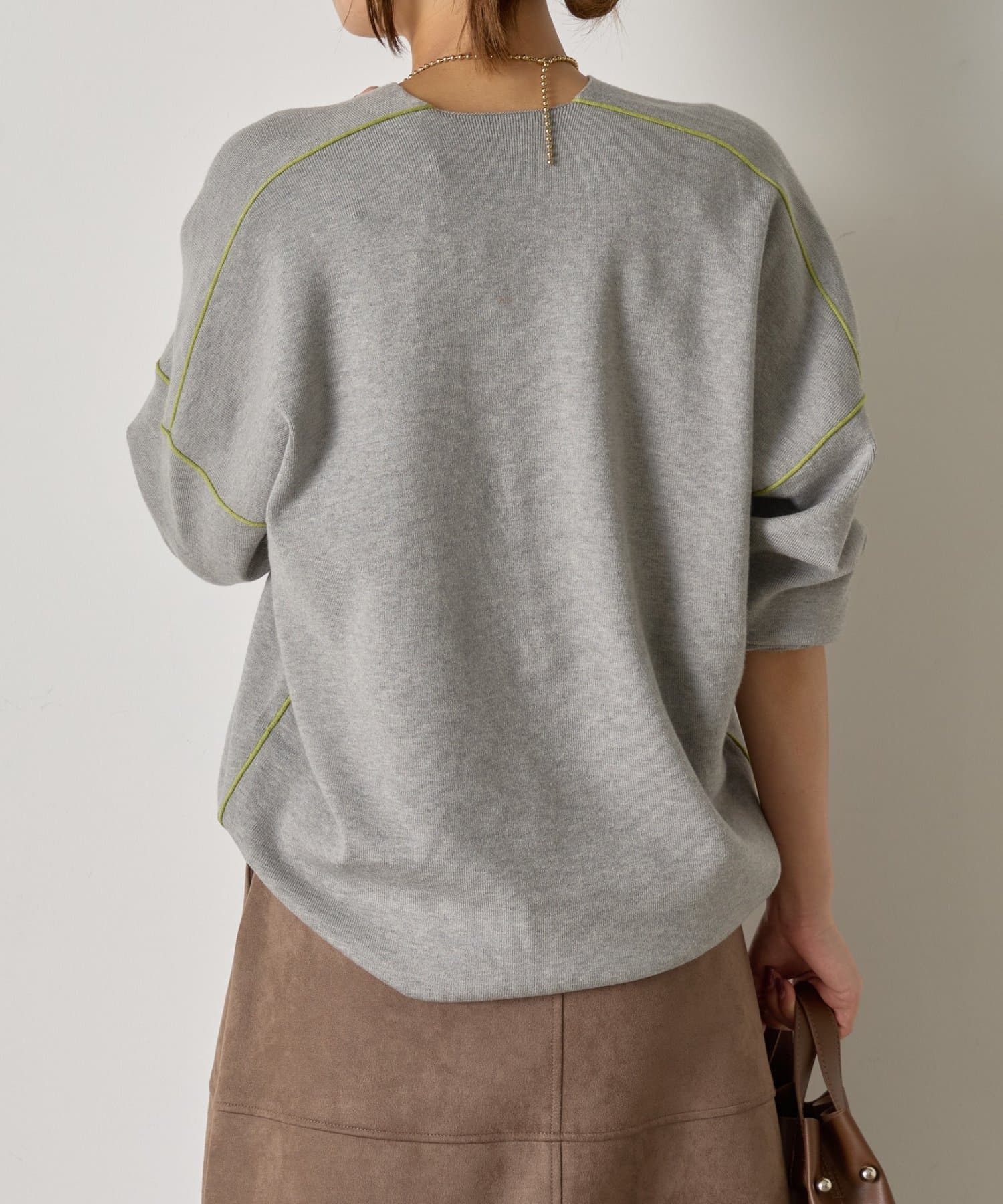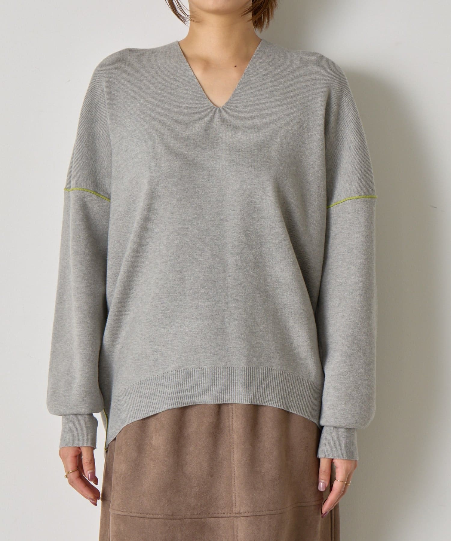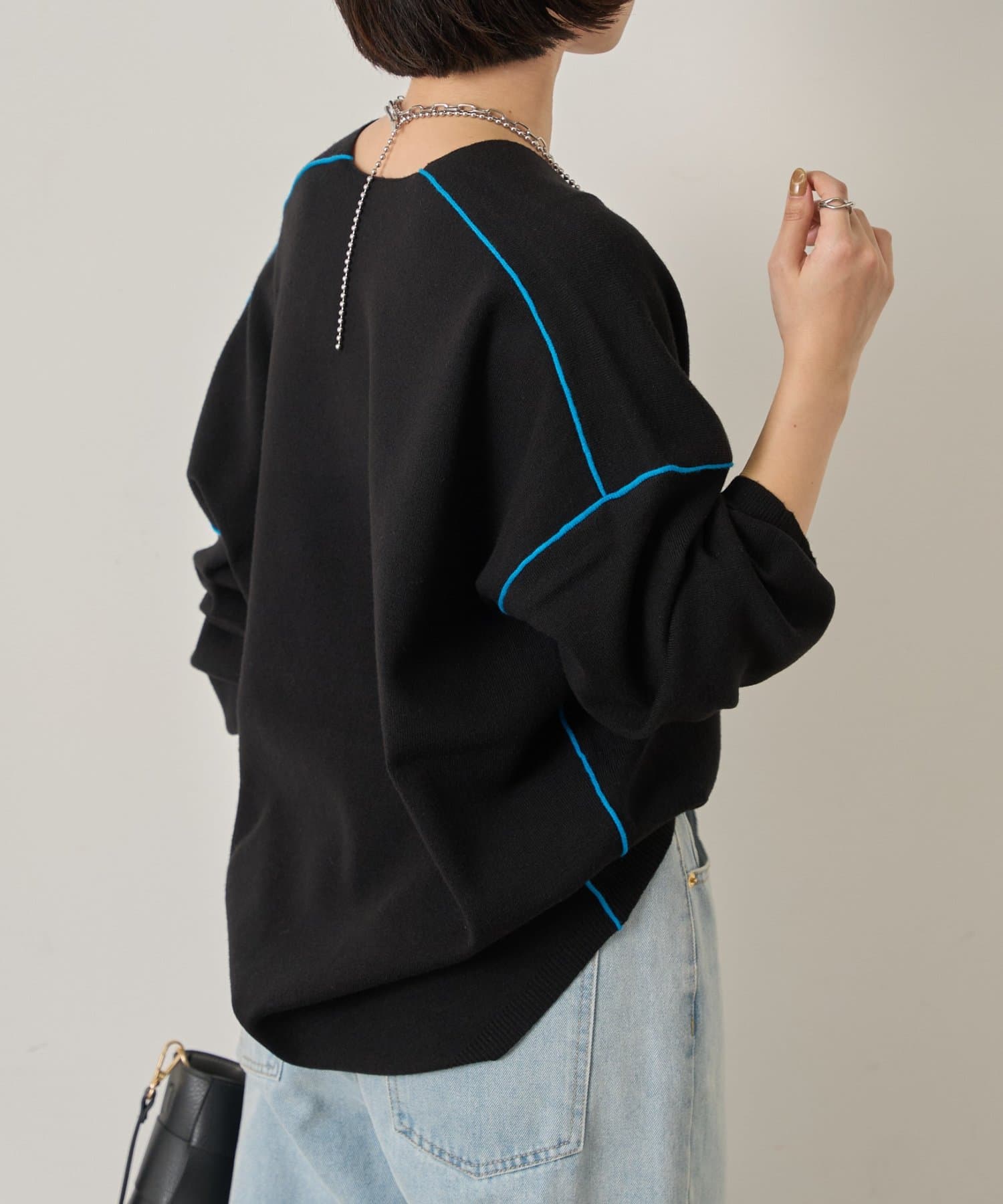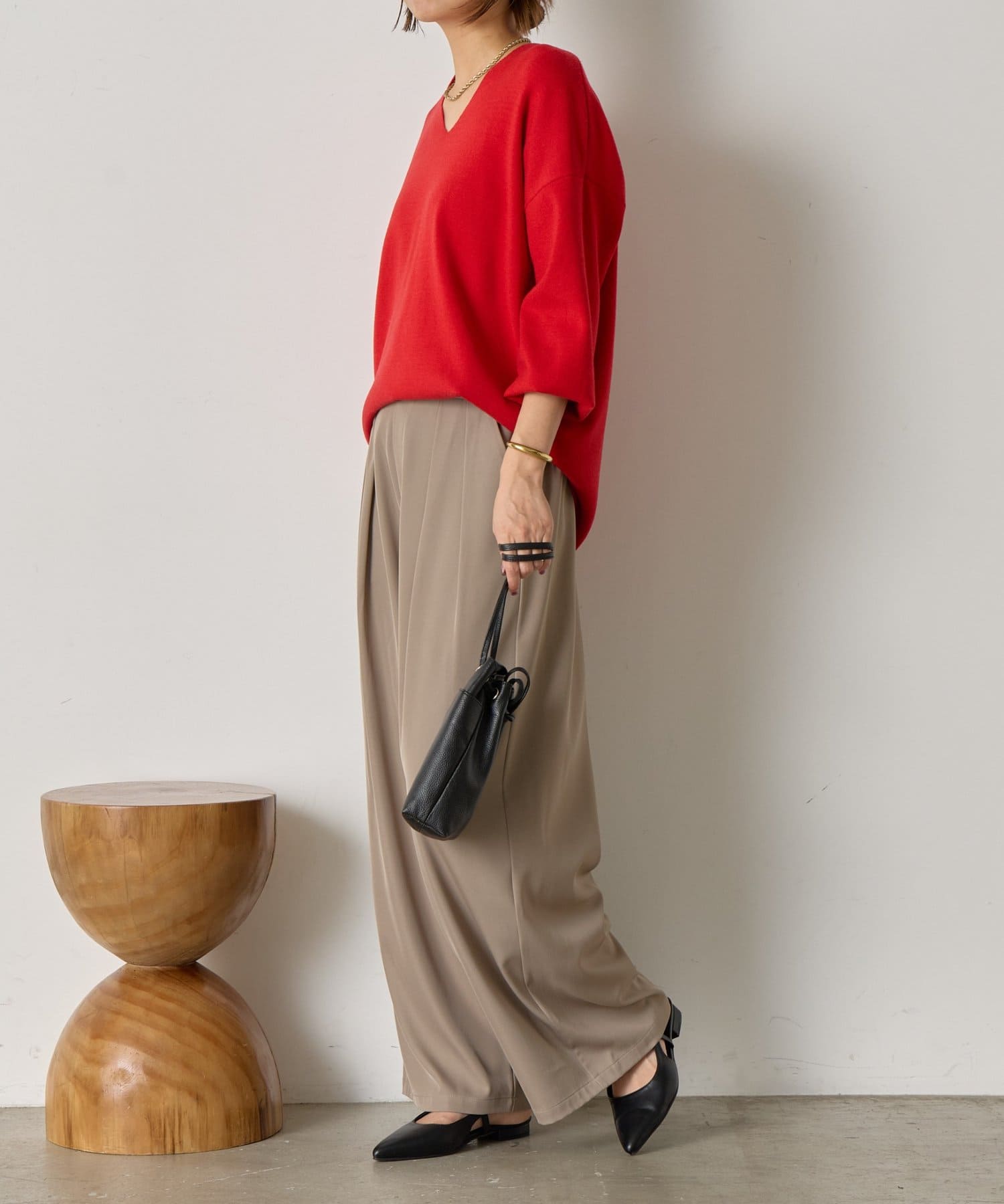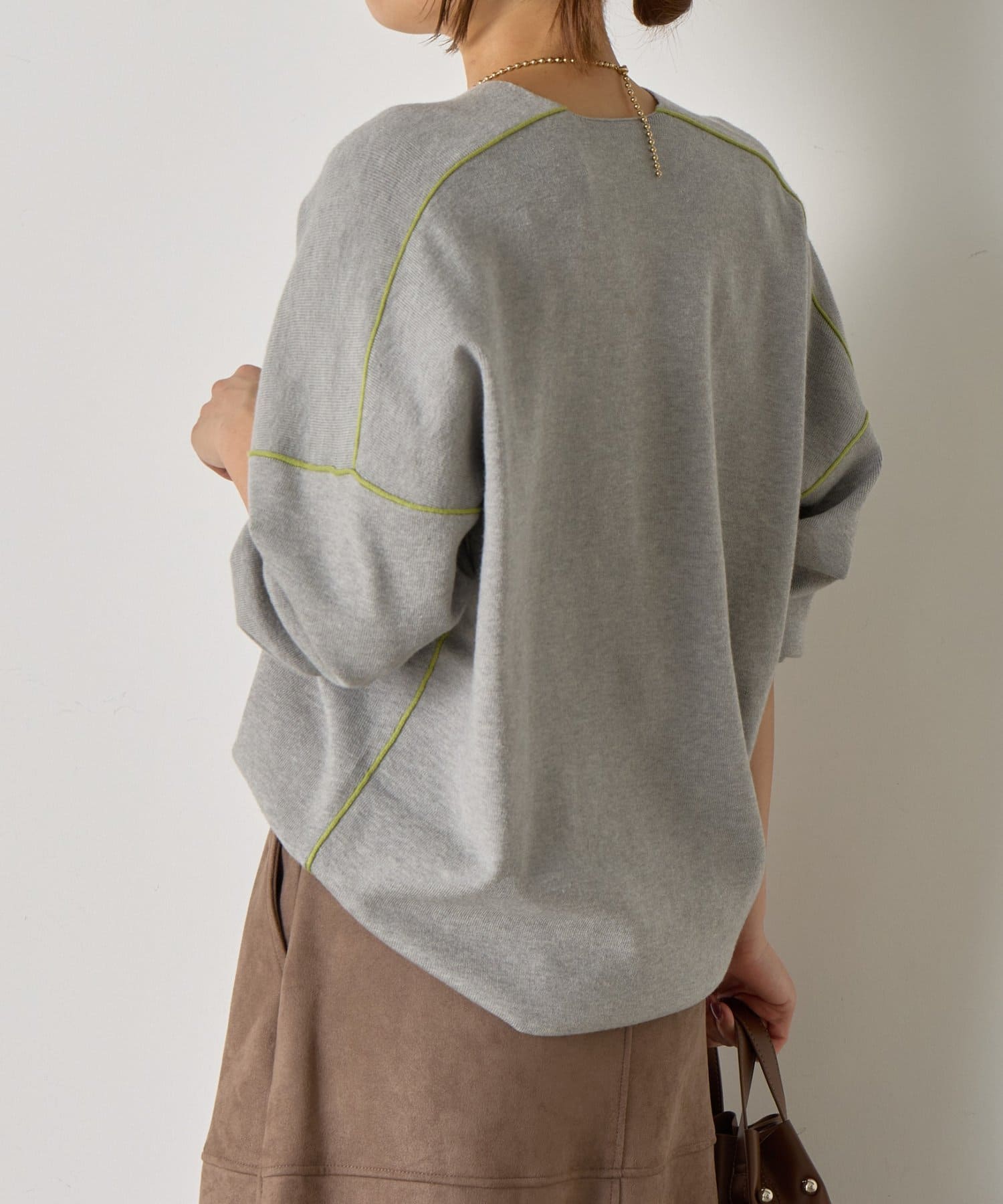・シンプルながら一枚で着映えするドルマンスリーブのニットトップス。