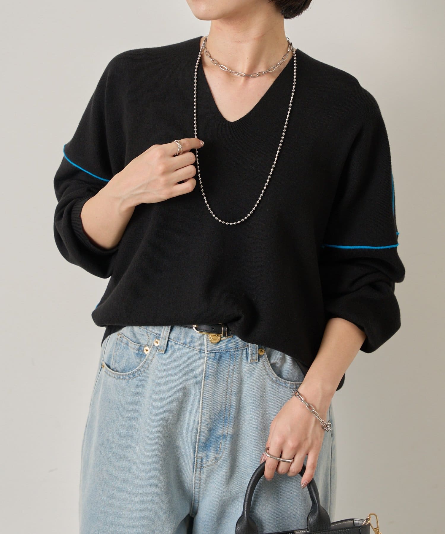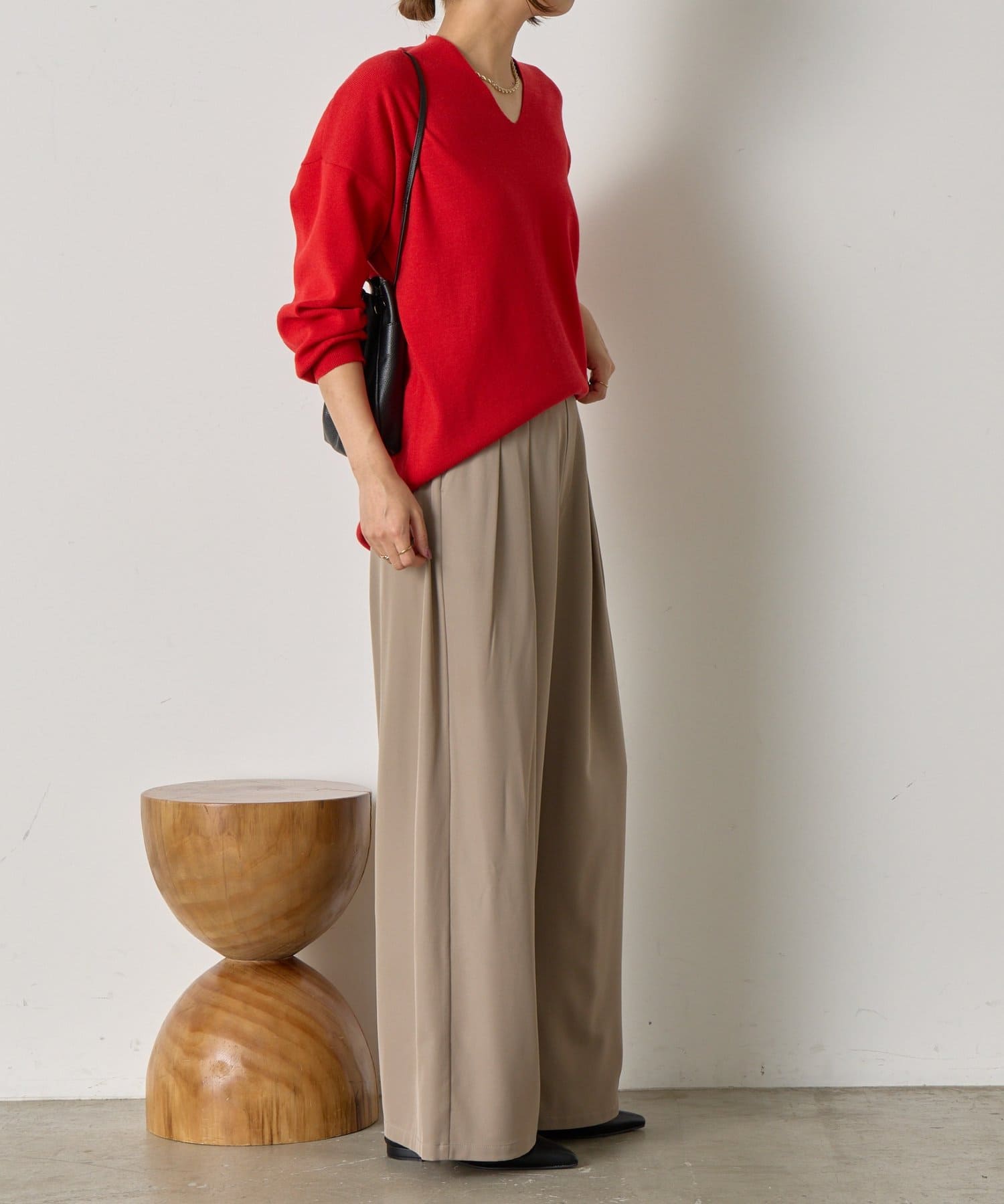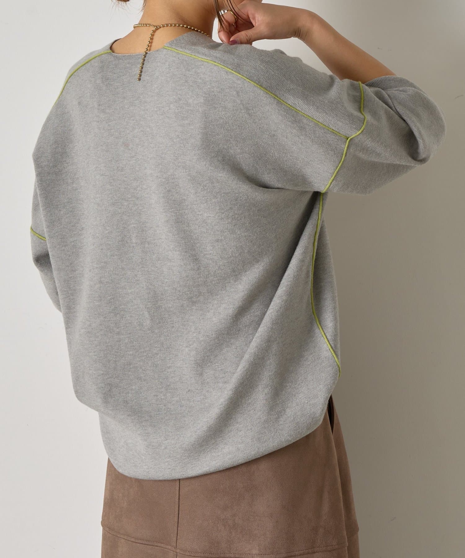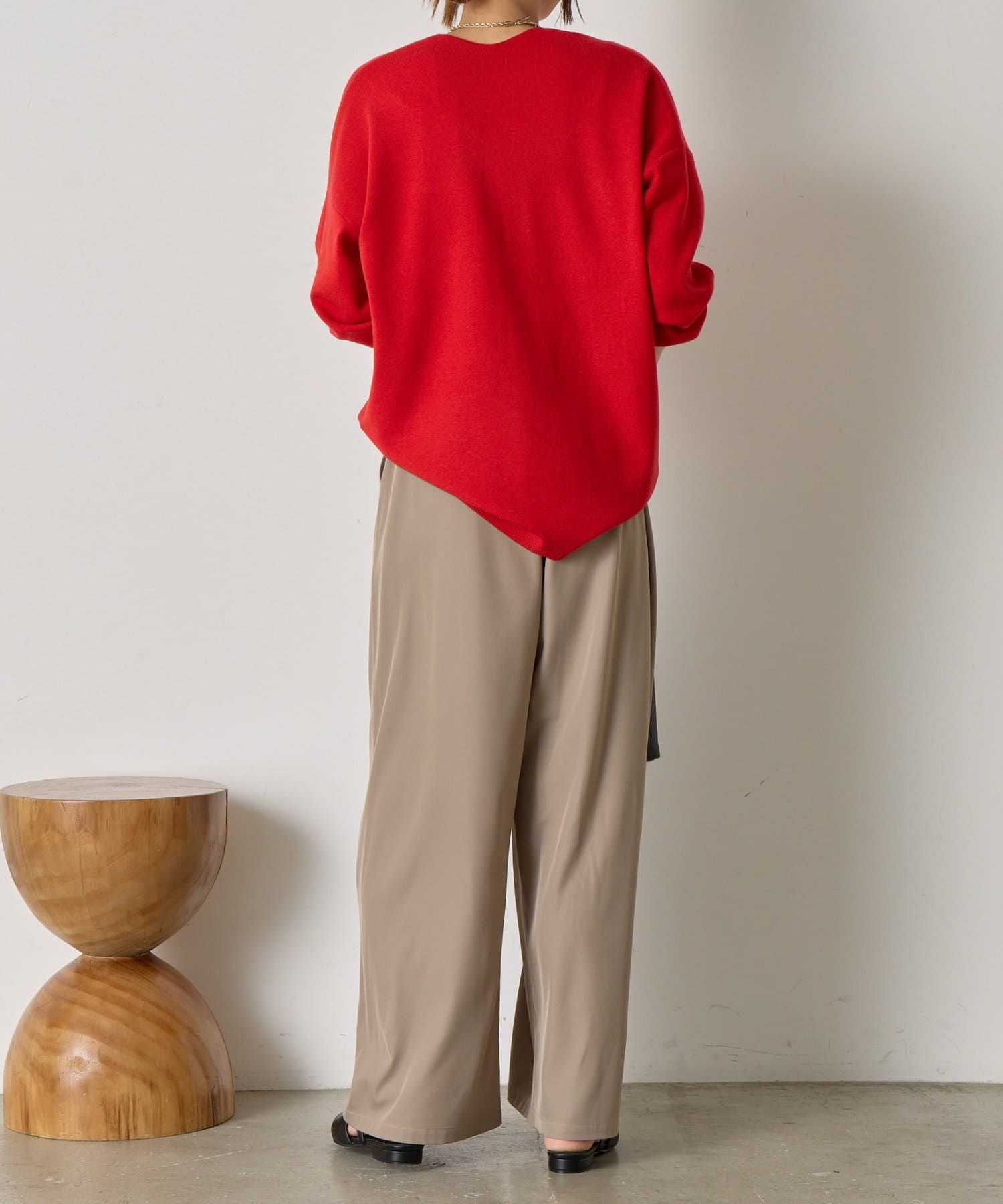 ・シンプルながら一枚で着映えするドルマンスリーブのニットトップス。