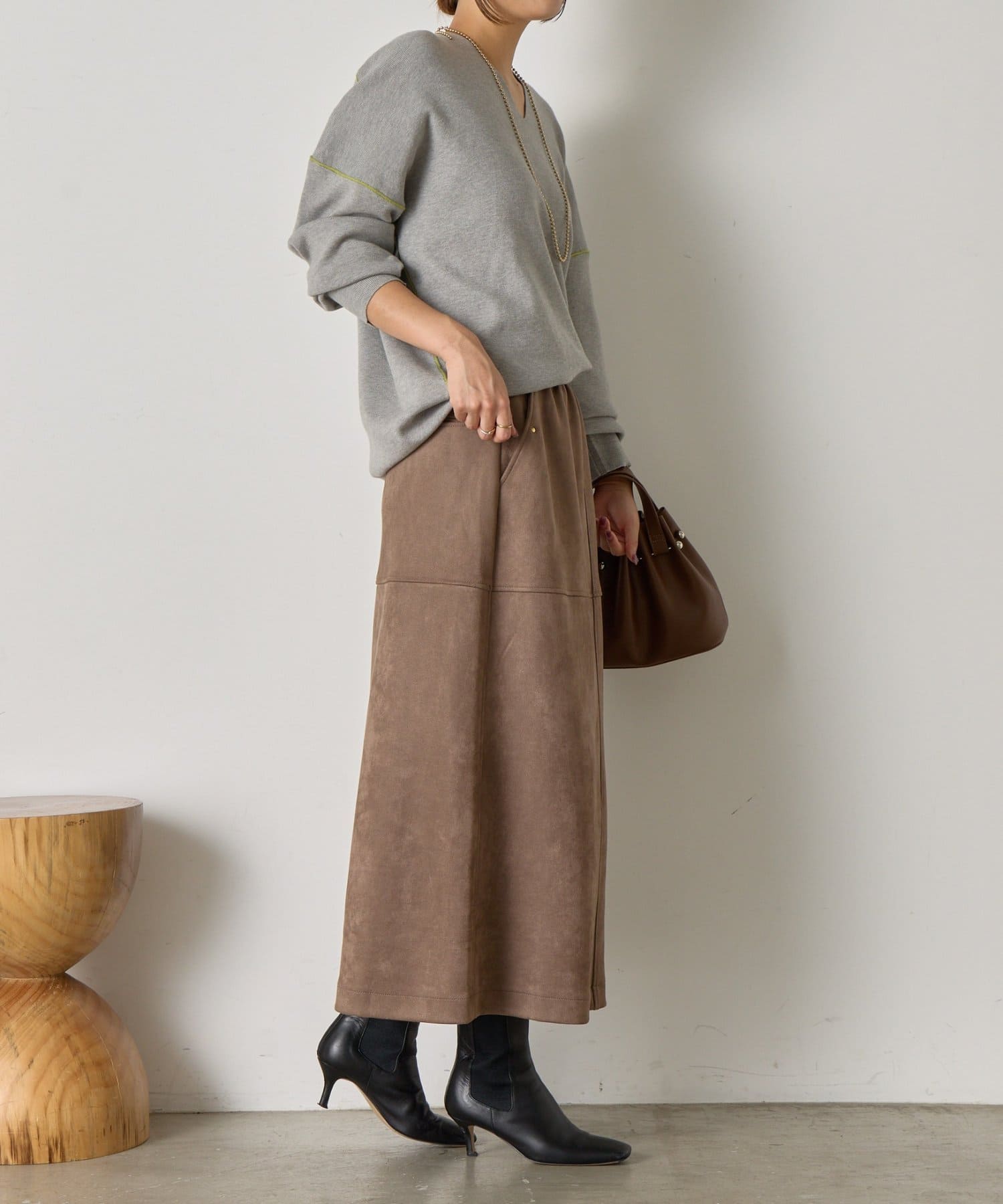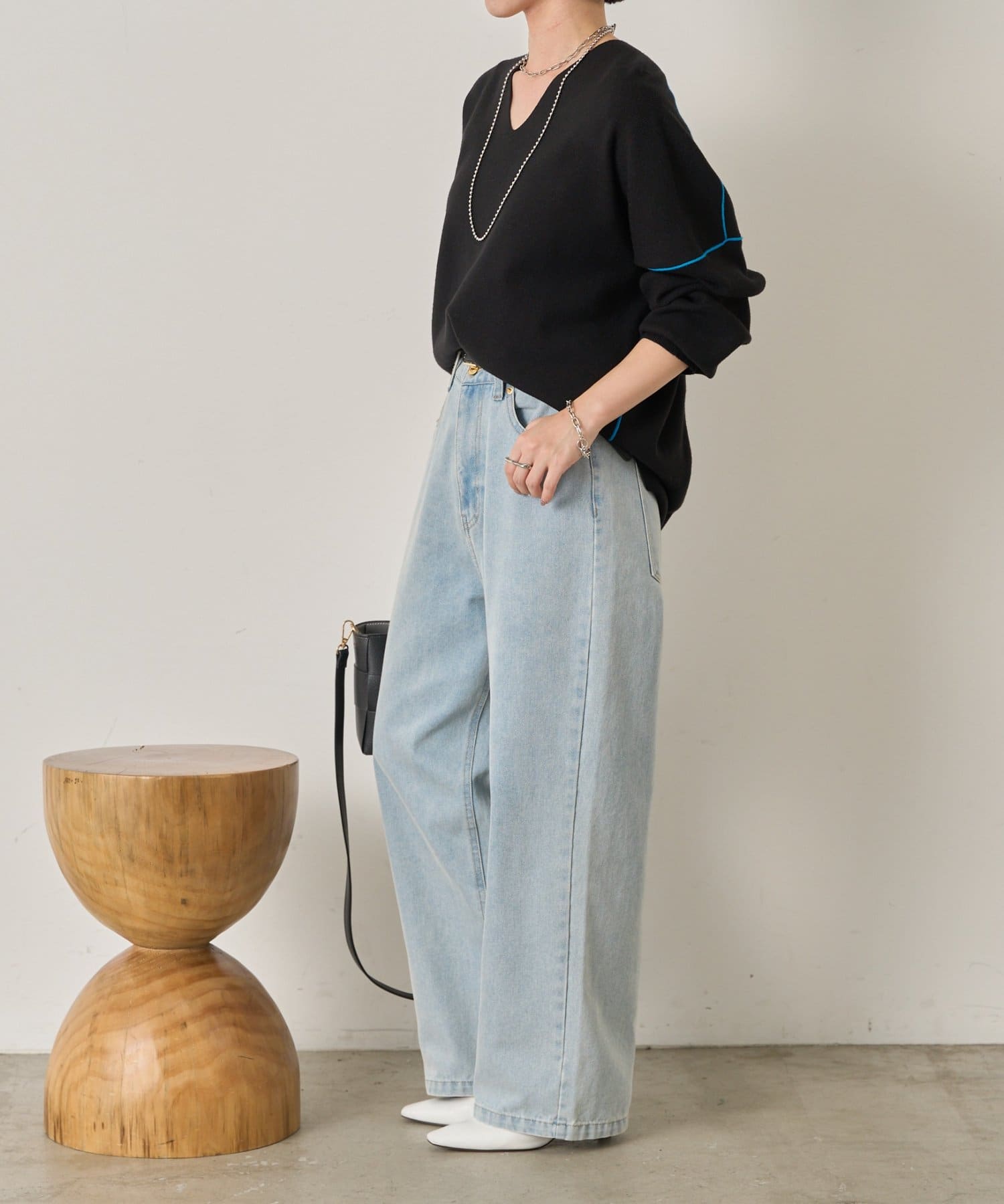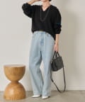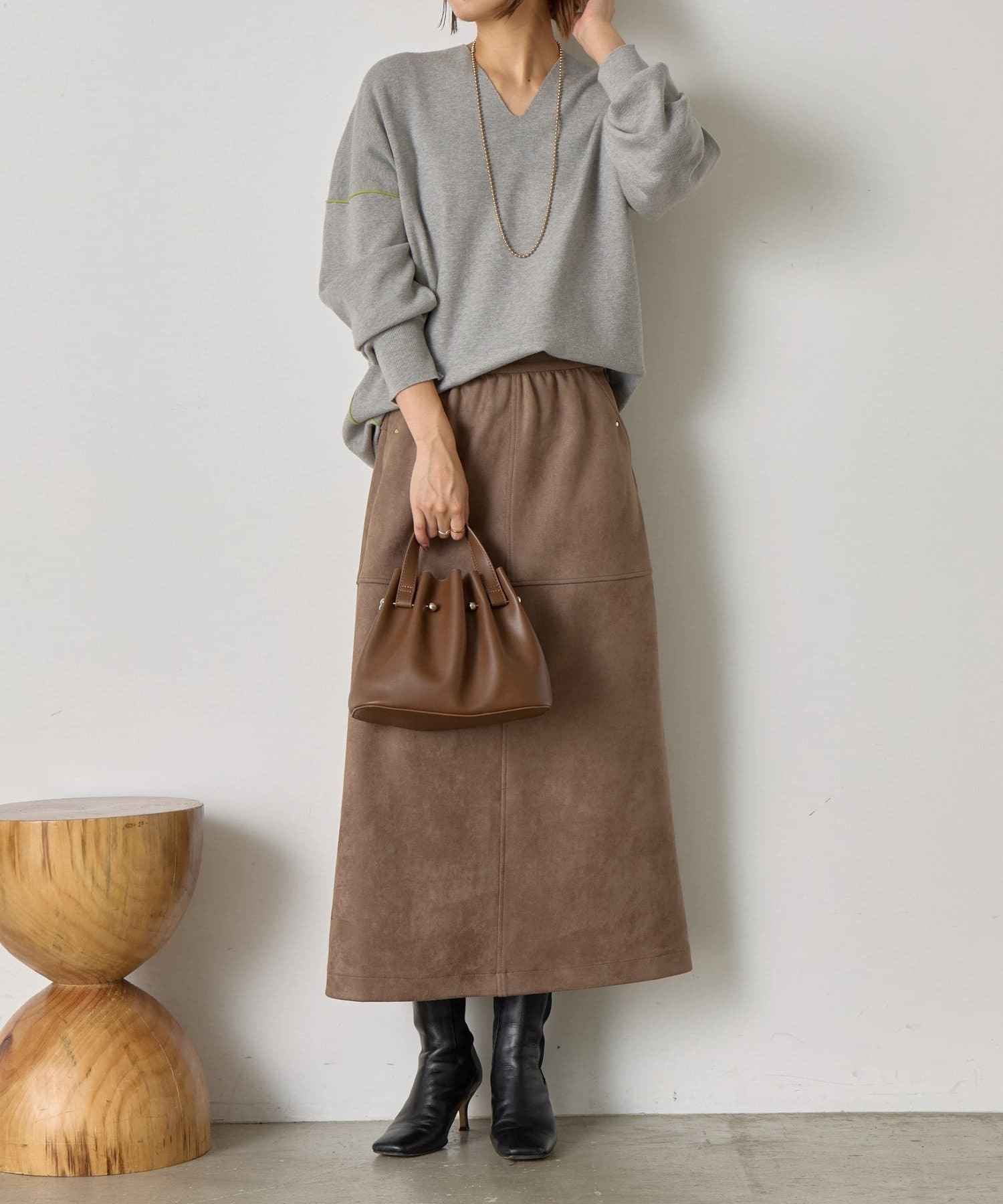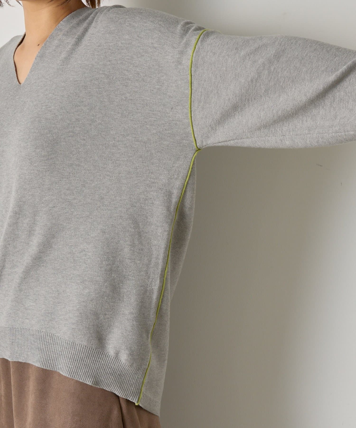 ・シンプルながら一枚で着映えするドルマンスリーブのニットトップス。