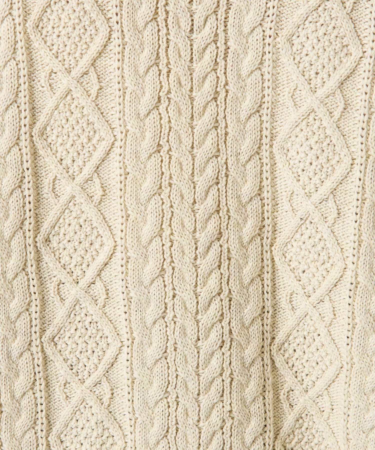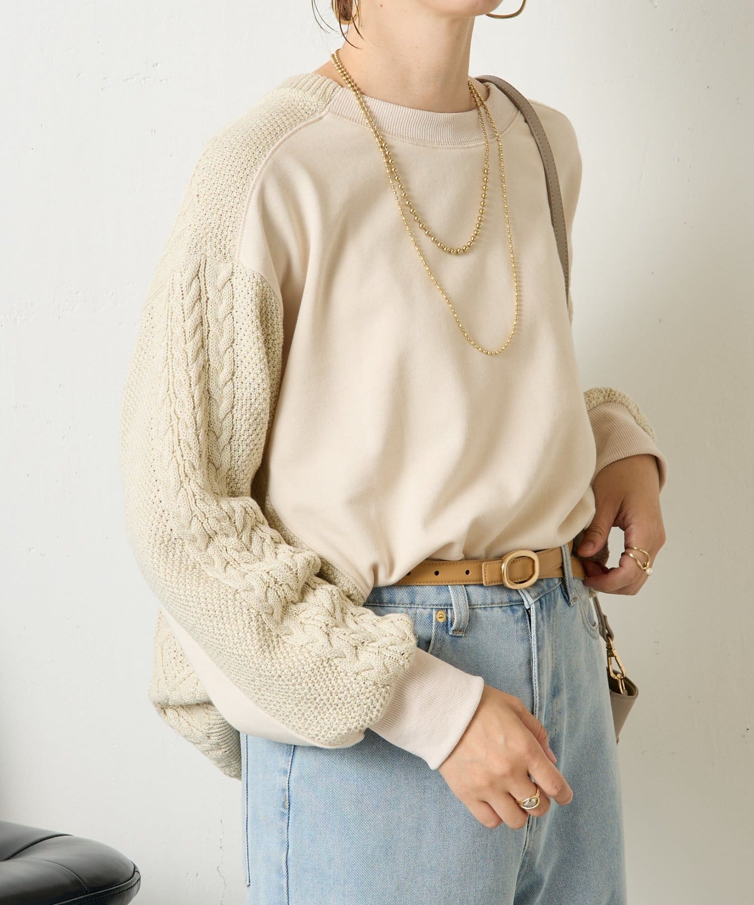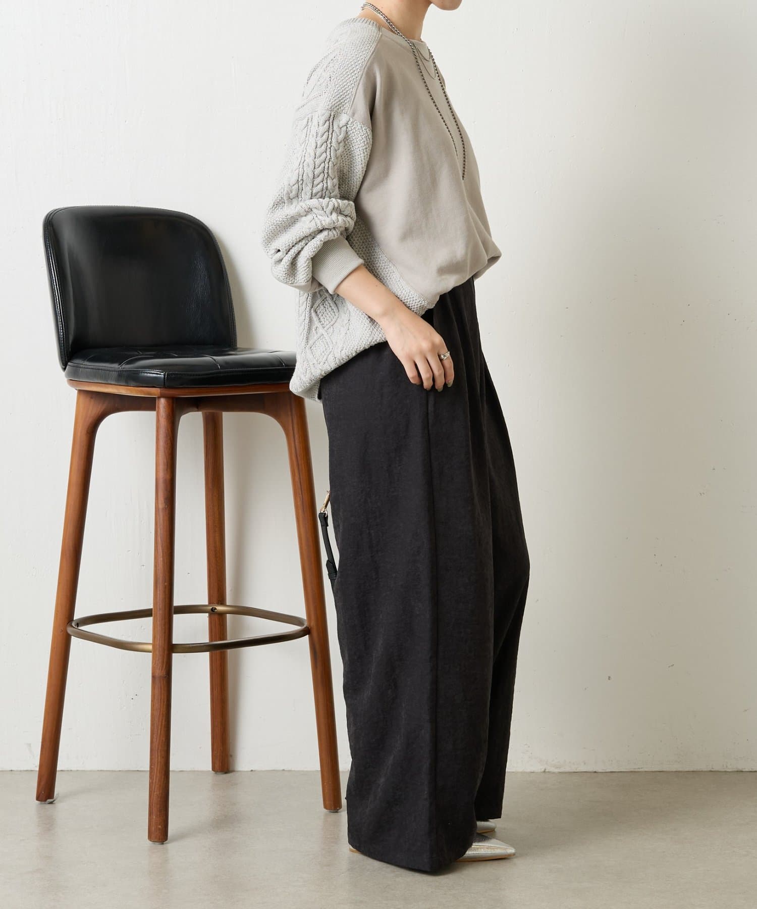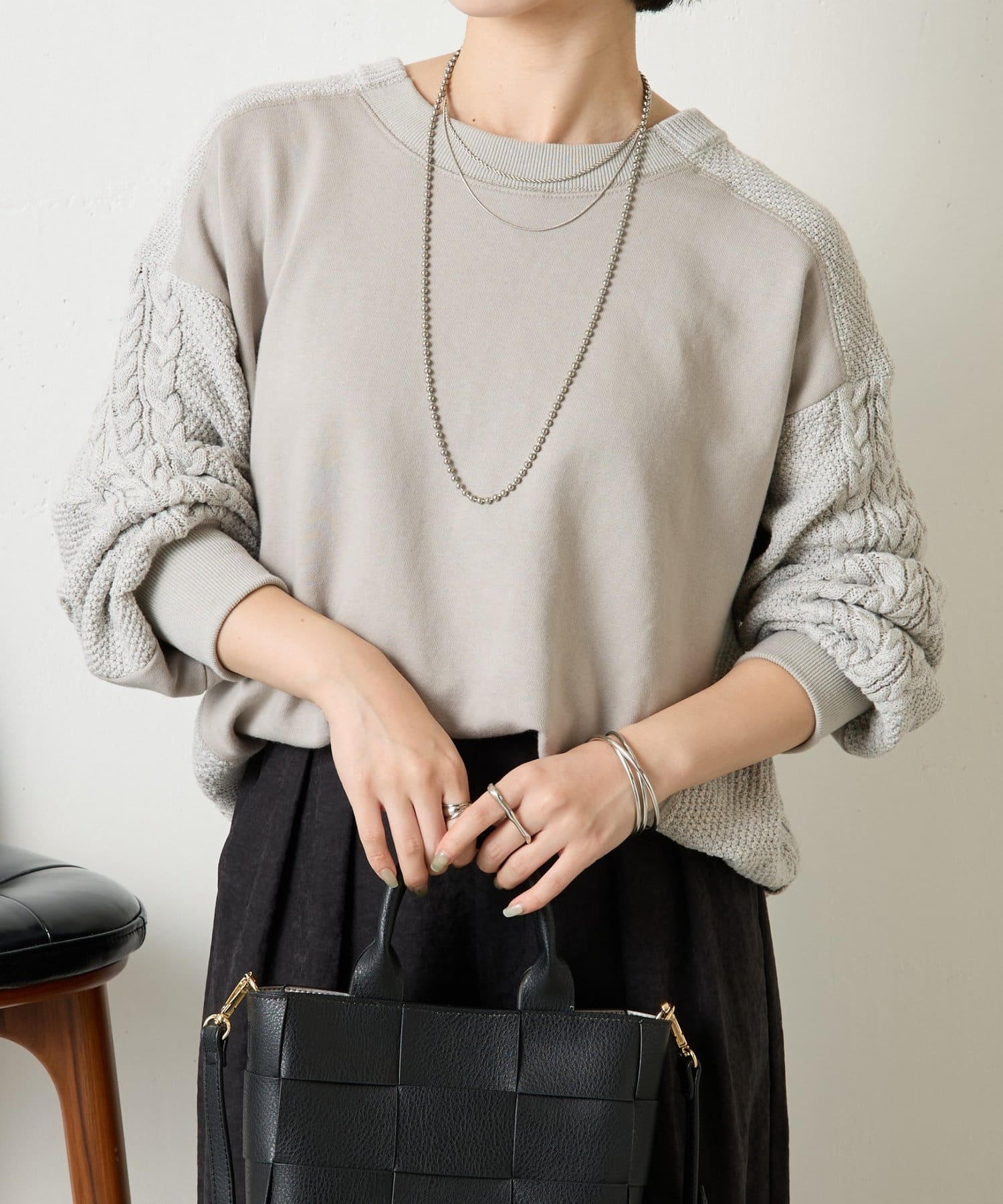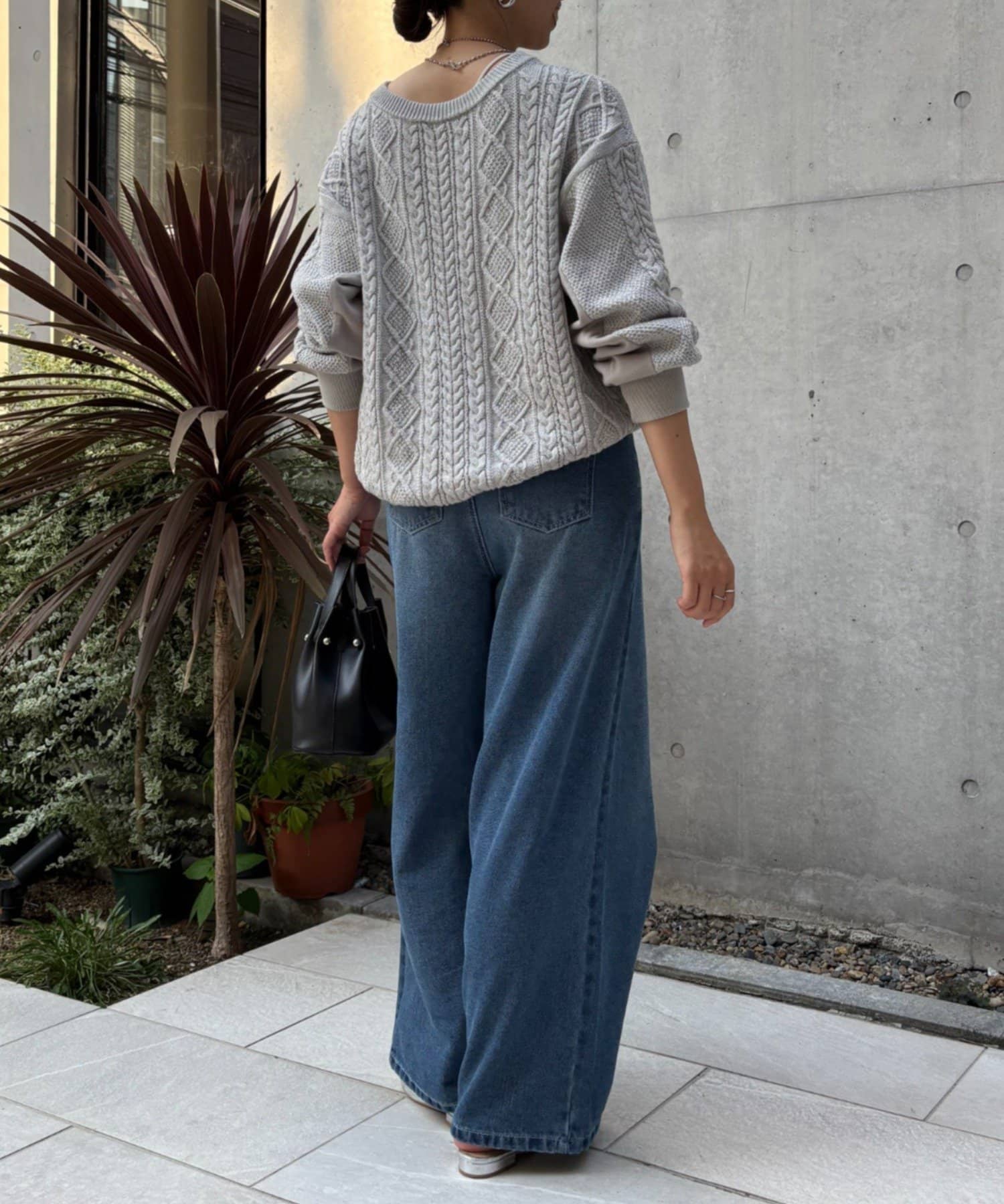 ・ケーブルニットとドッキングされた前後の大胆な切替が、他にはない一枚。