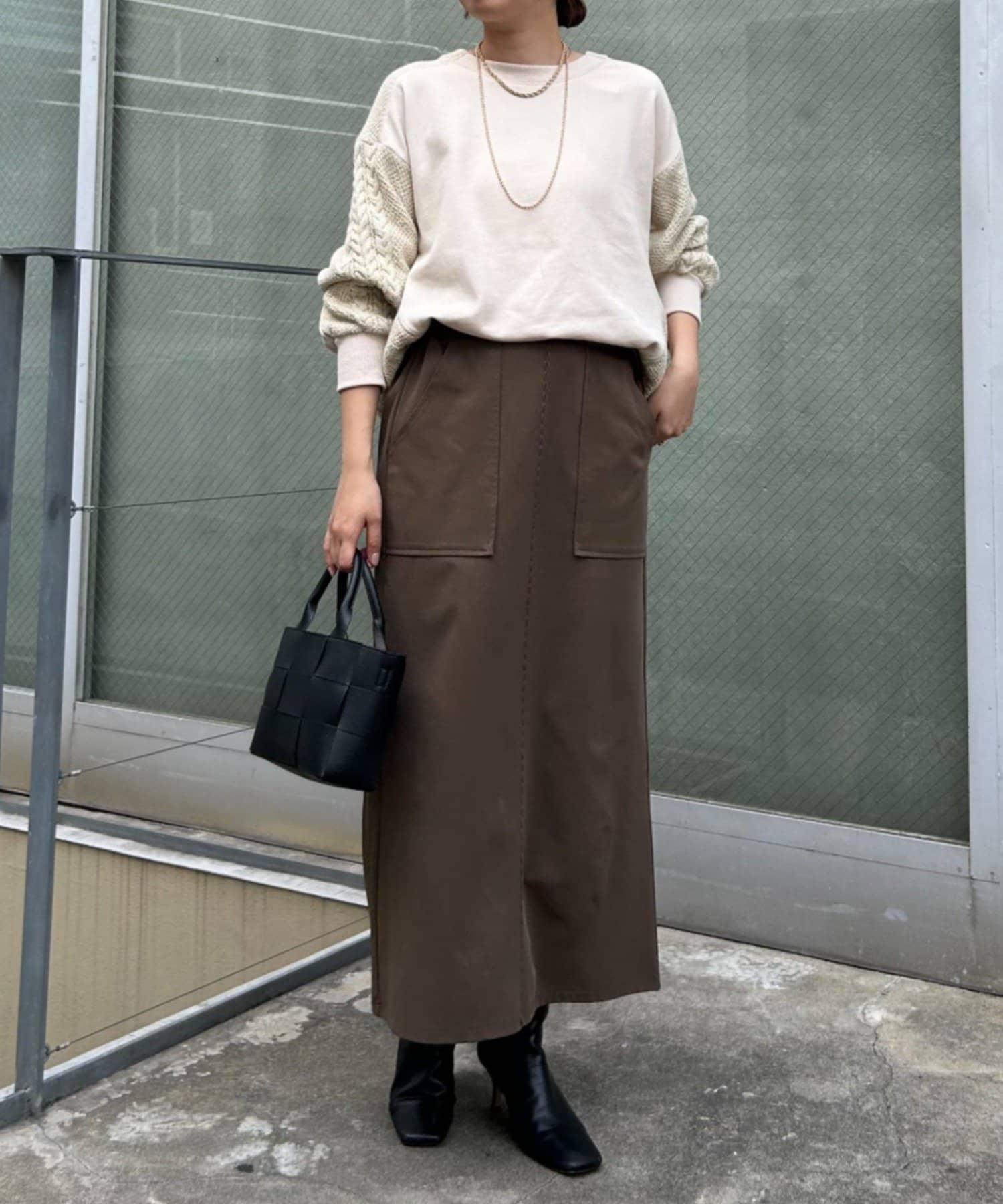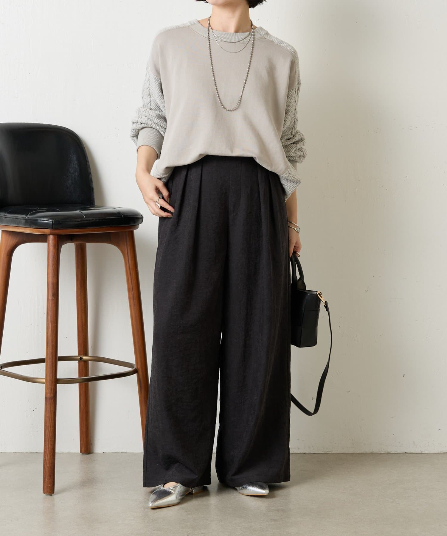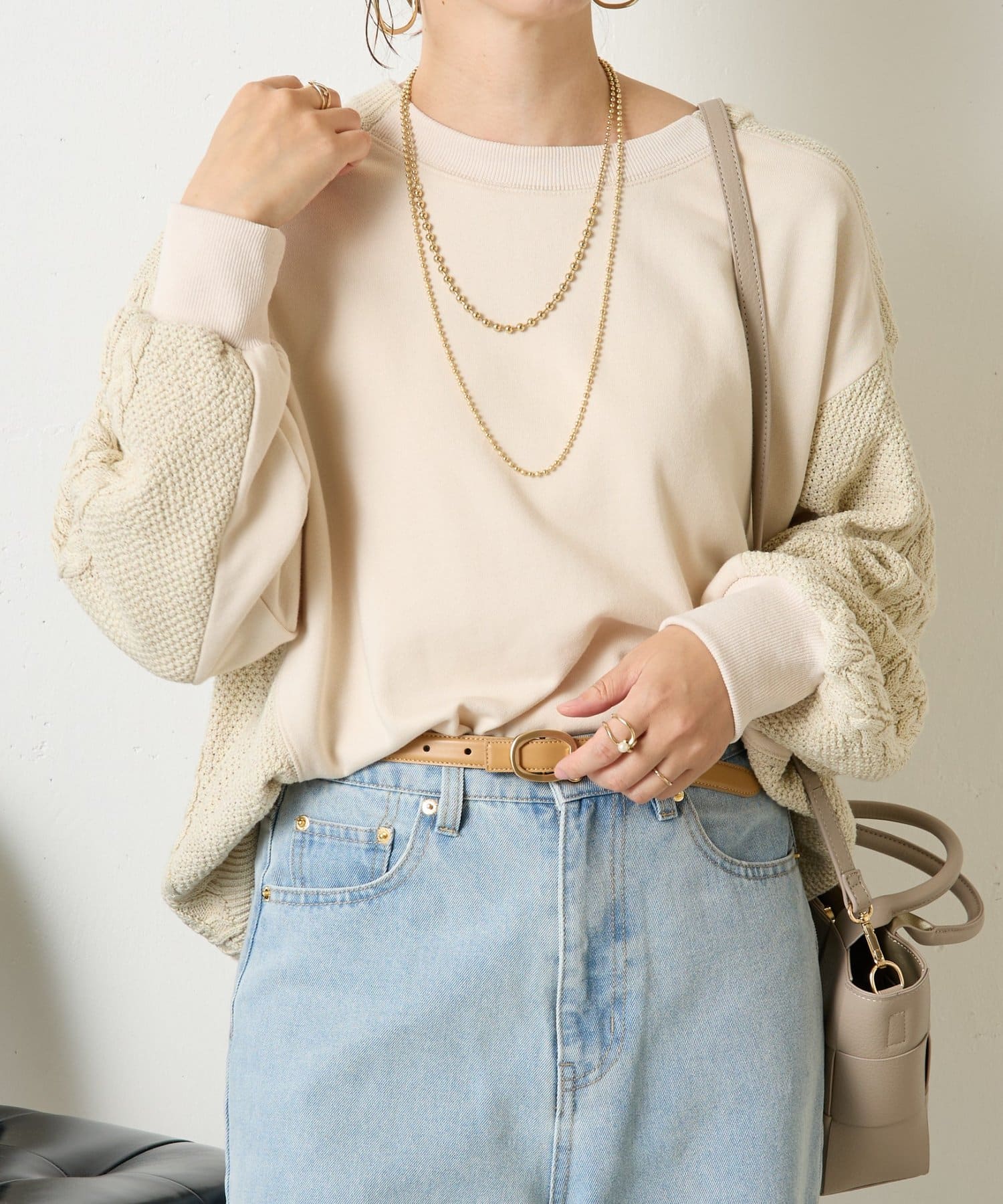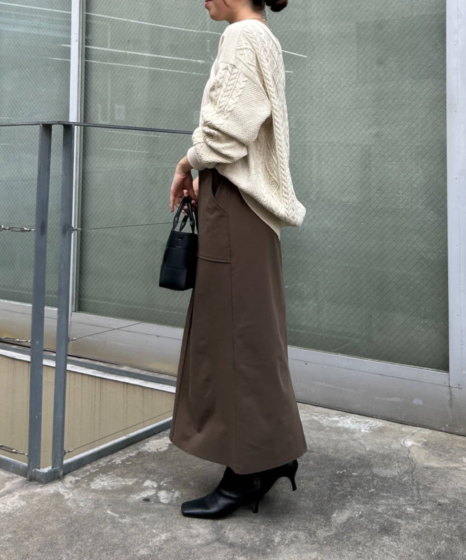 ・ケーブルニットとドッキングされた前後の大胆な切替が、他にはない一枚。