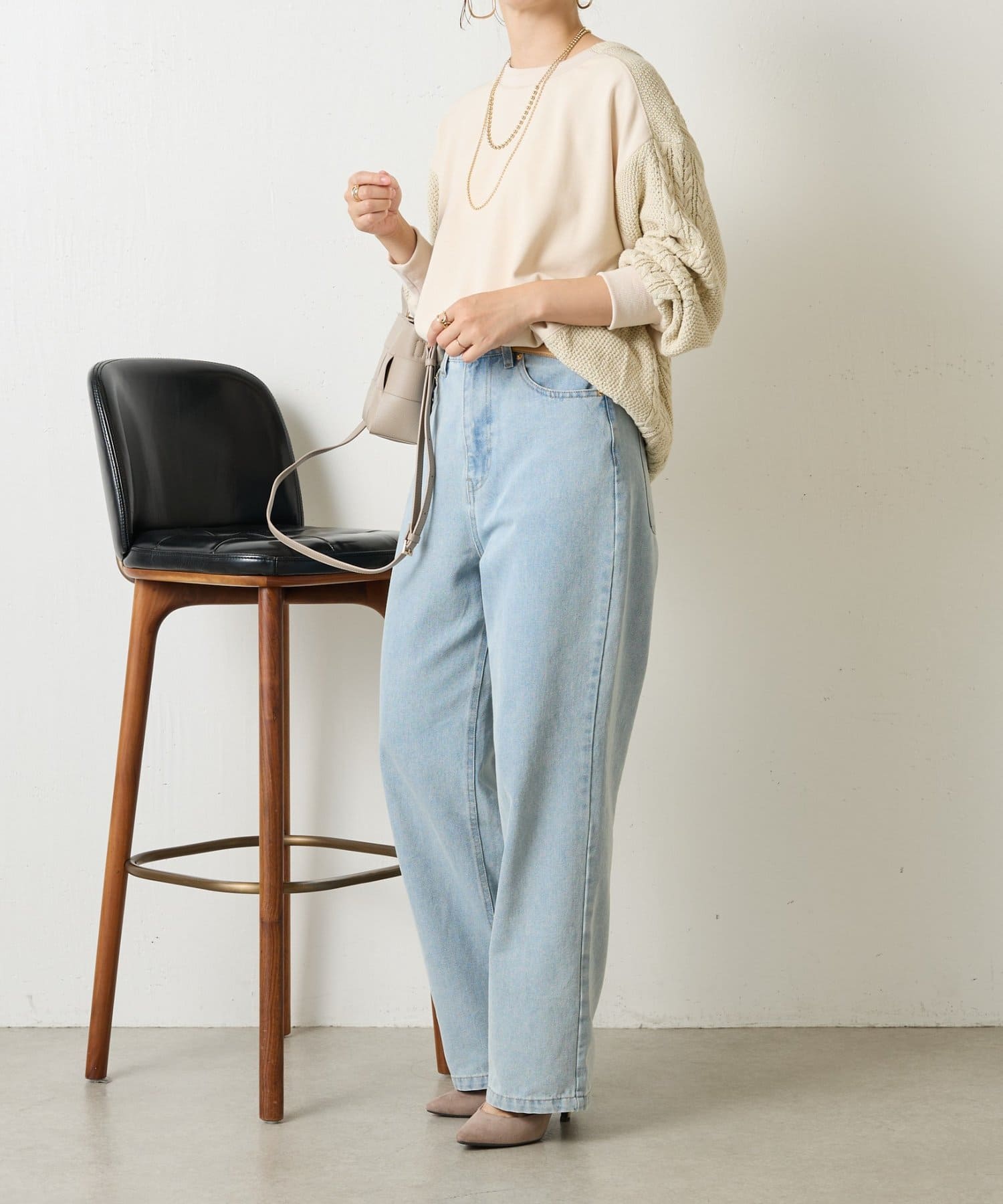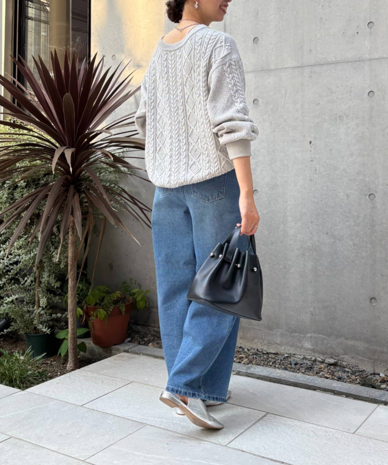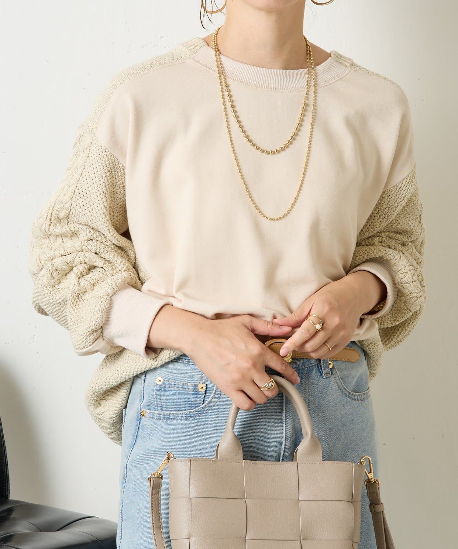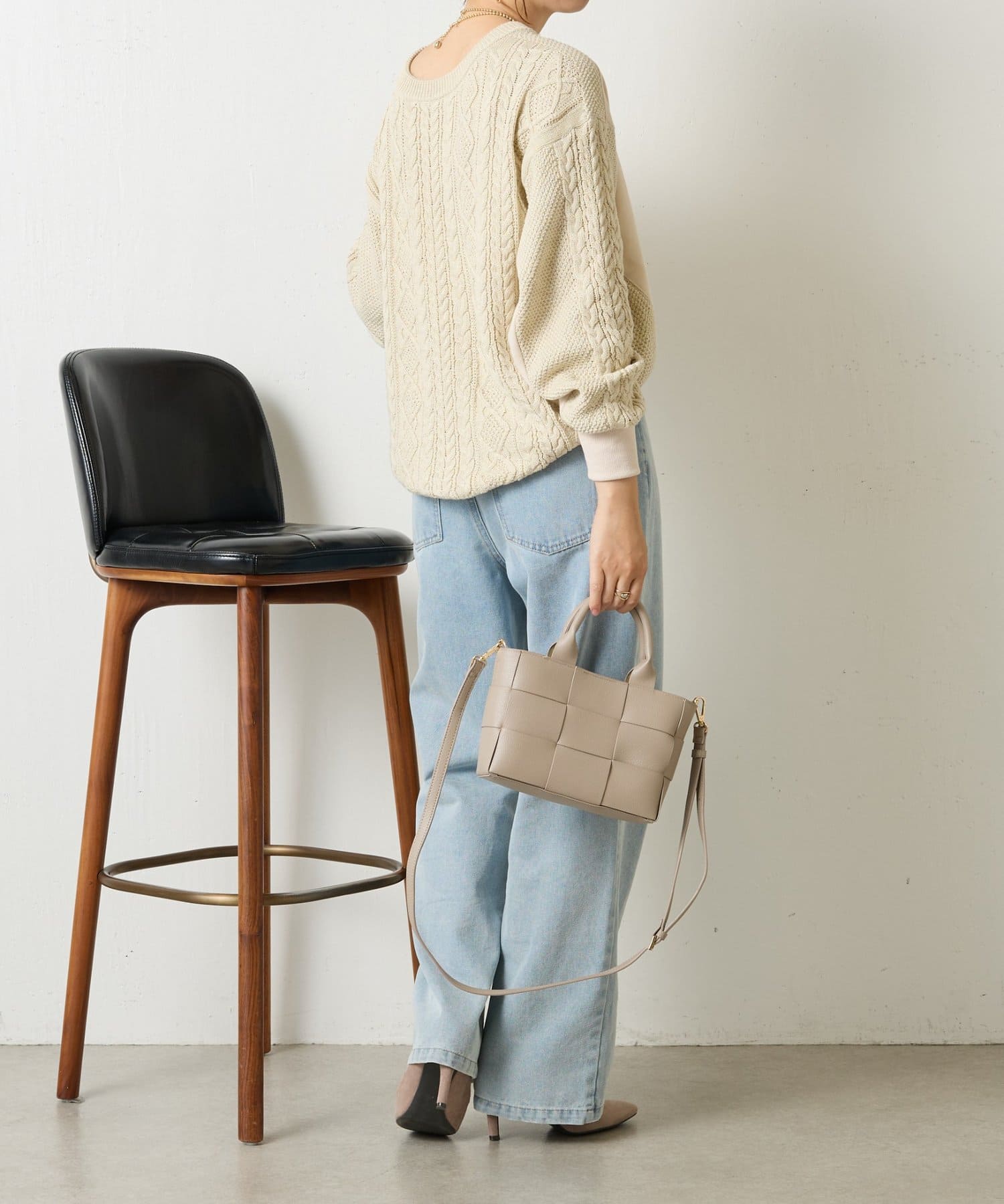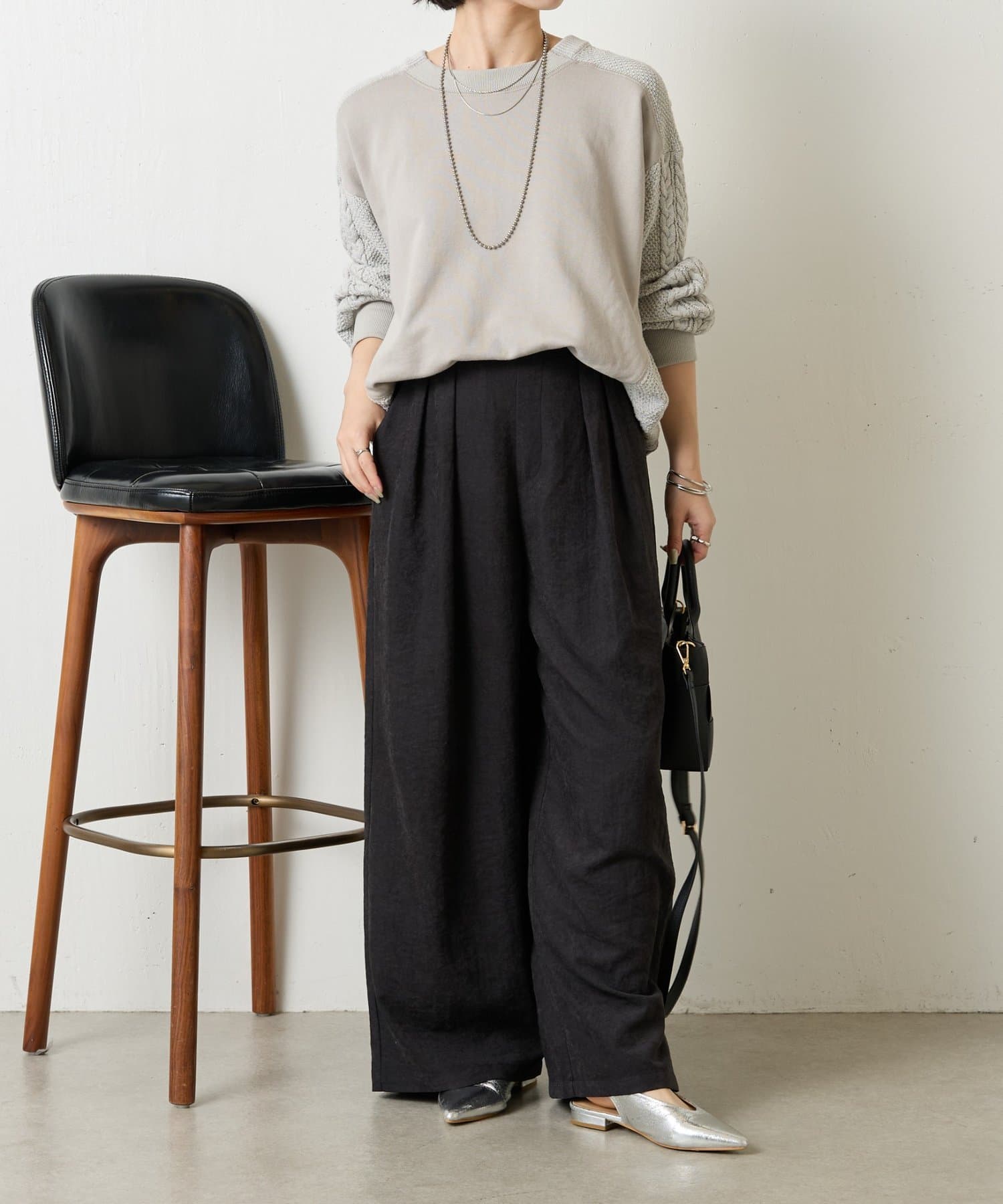・ケーブルニットとドッキングされた前後の大胆な切替が、他にはない一枚。