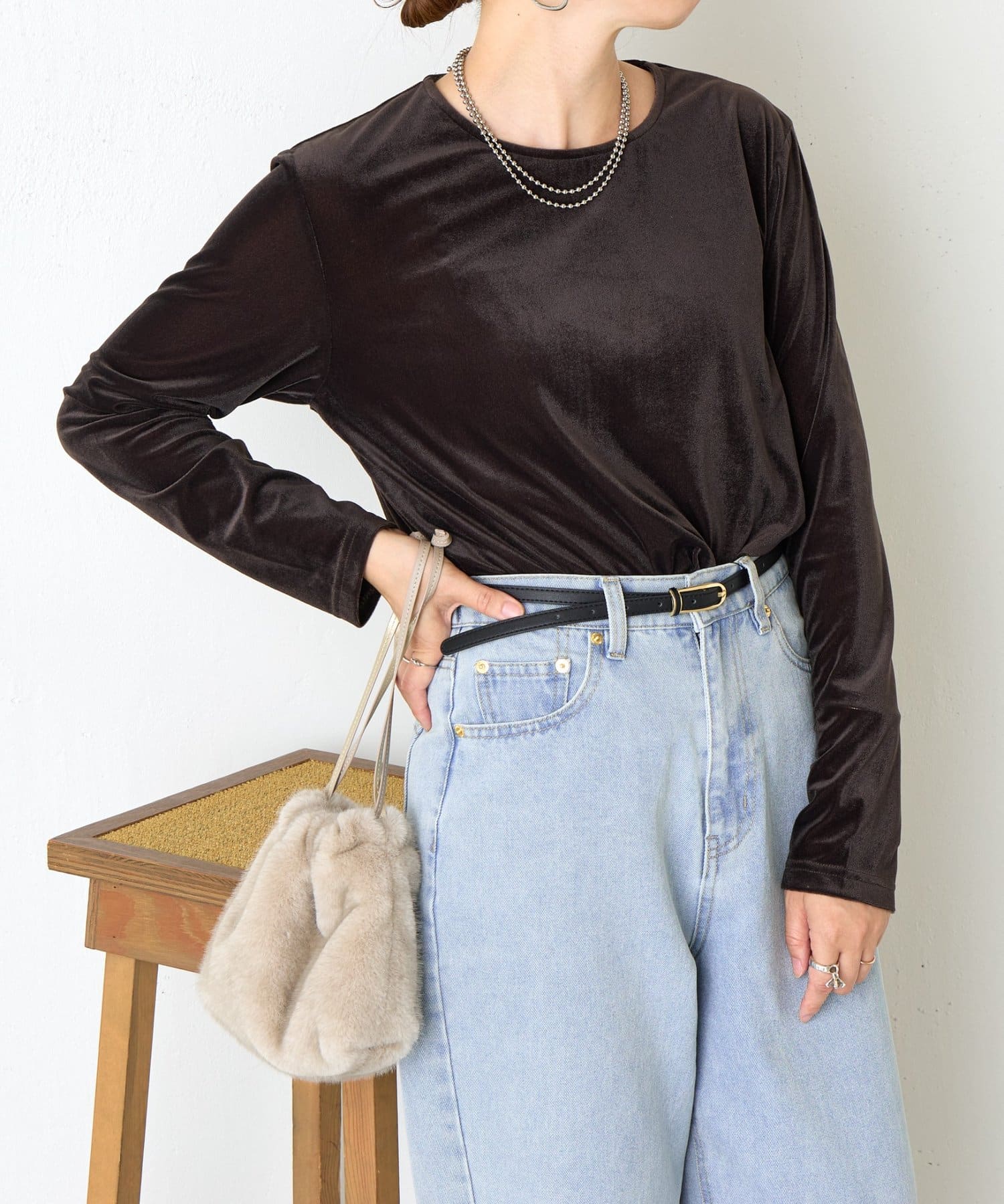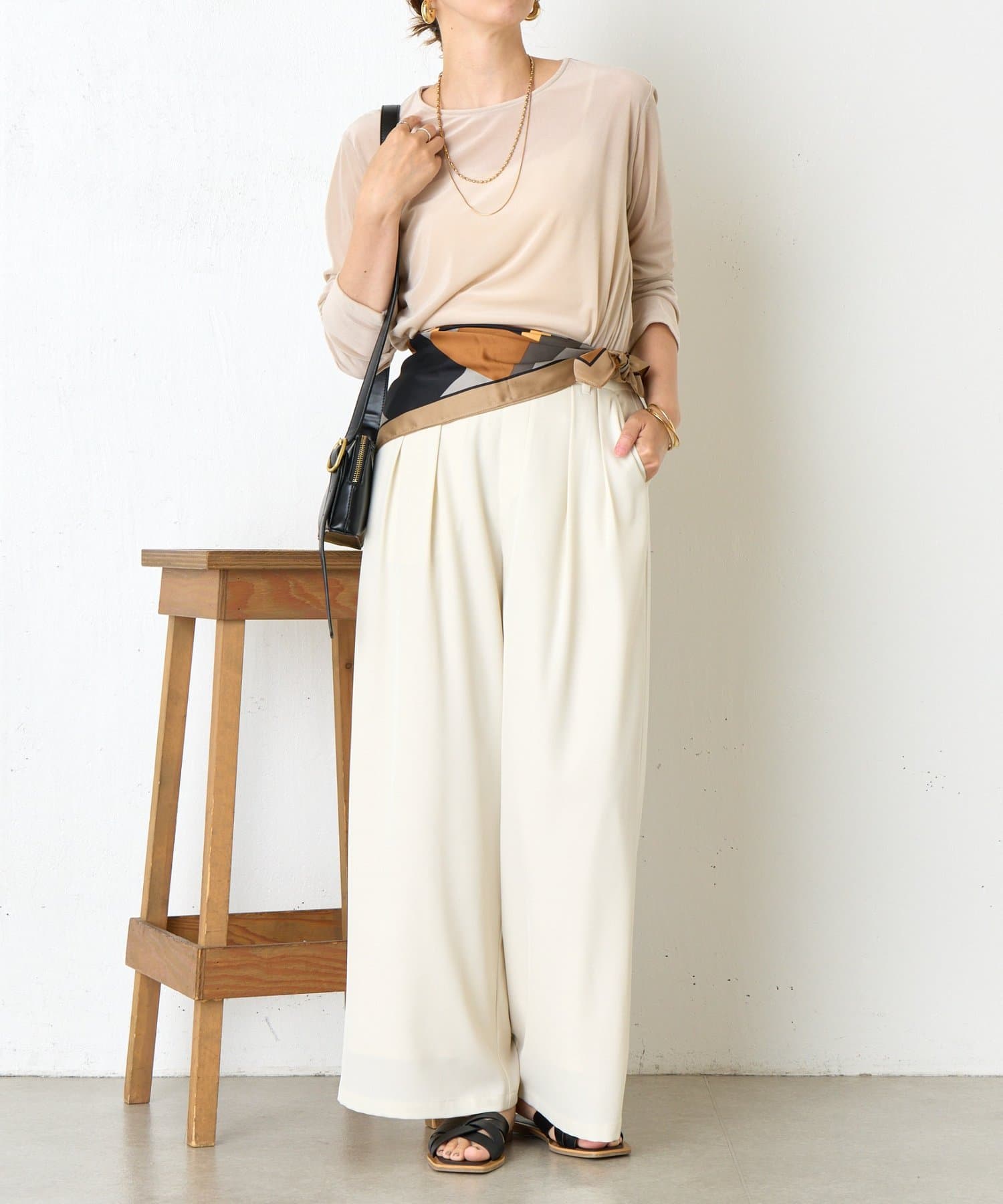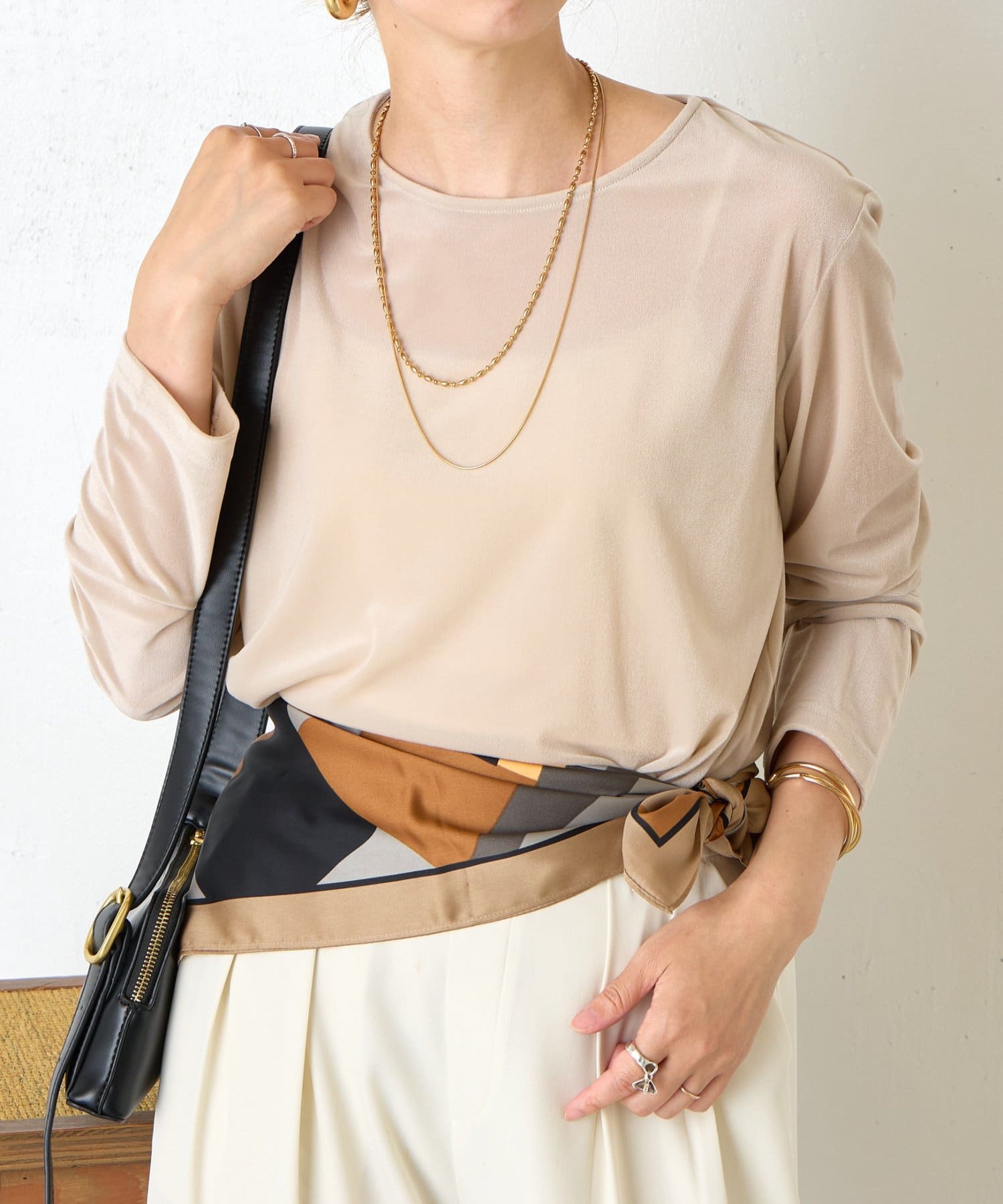 ・身体のラインを拾わないシルエットでボトムを選ばず、着まわしやすいデザイン。