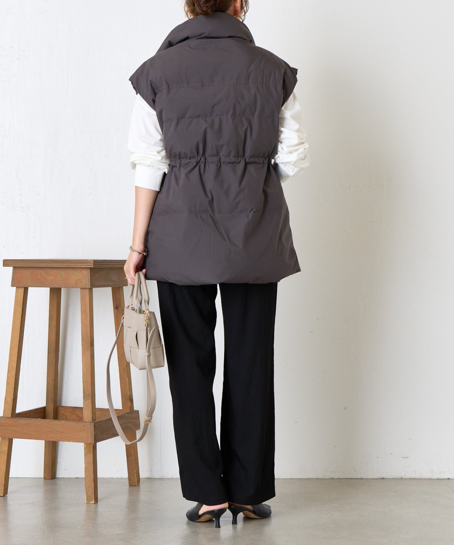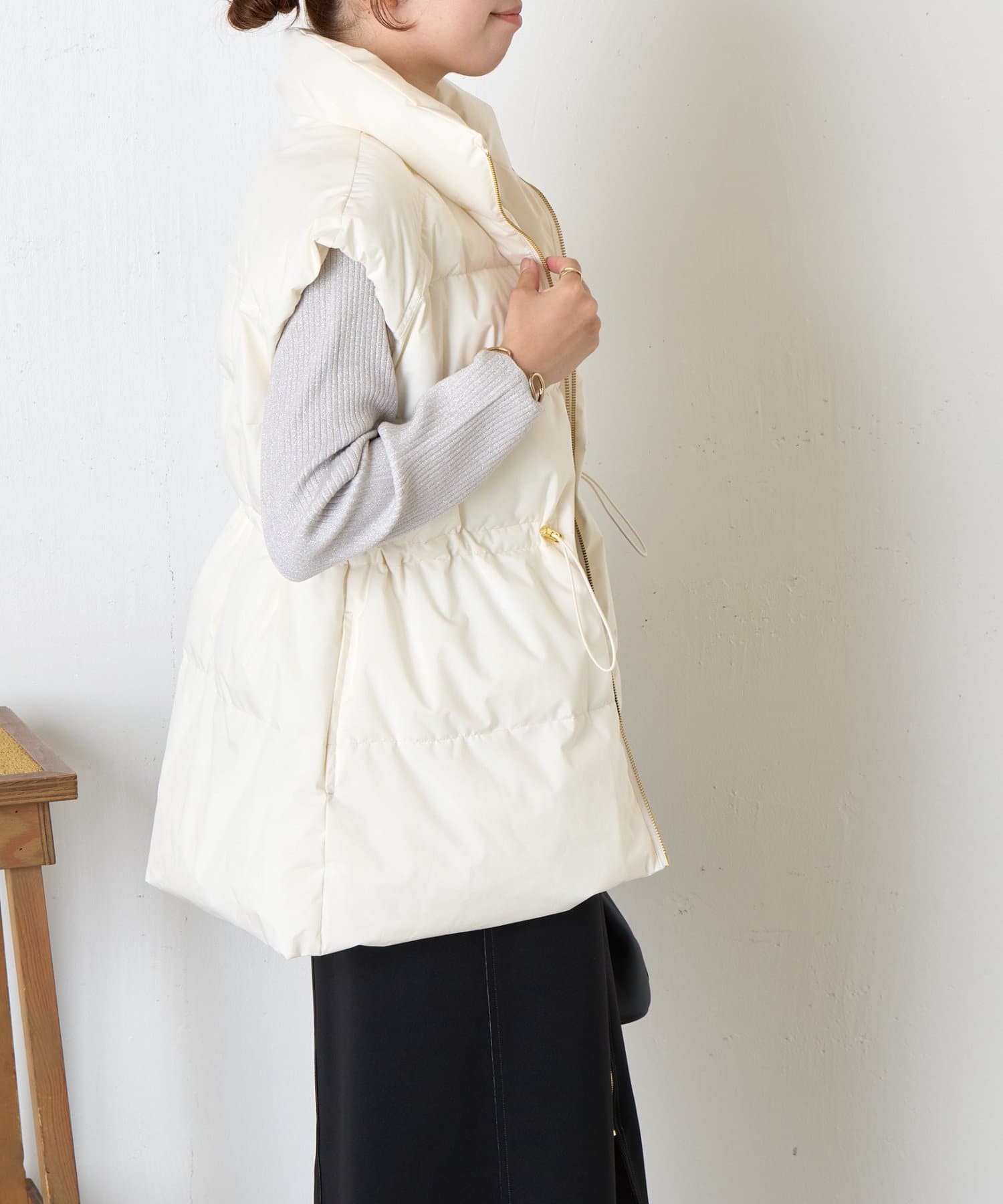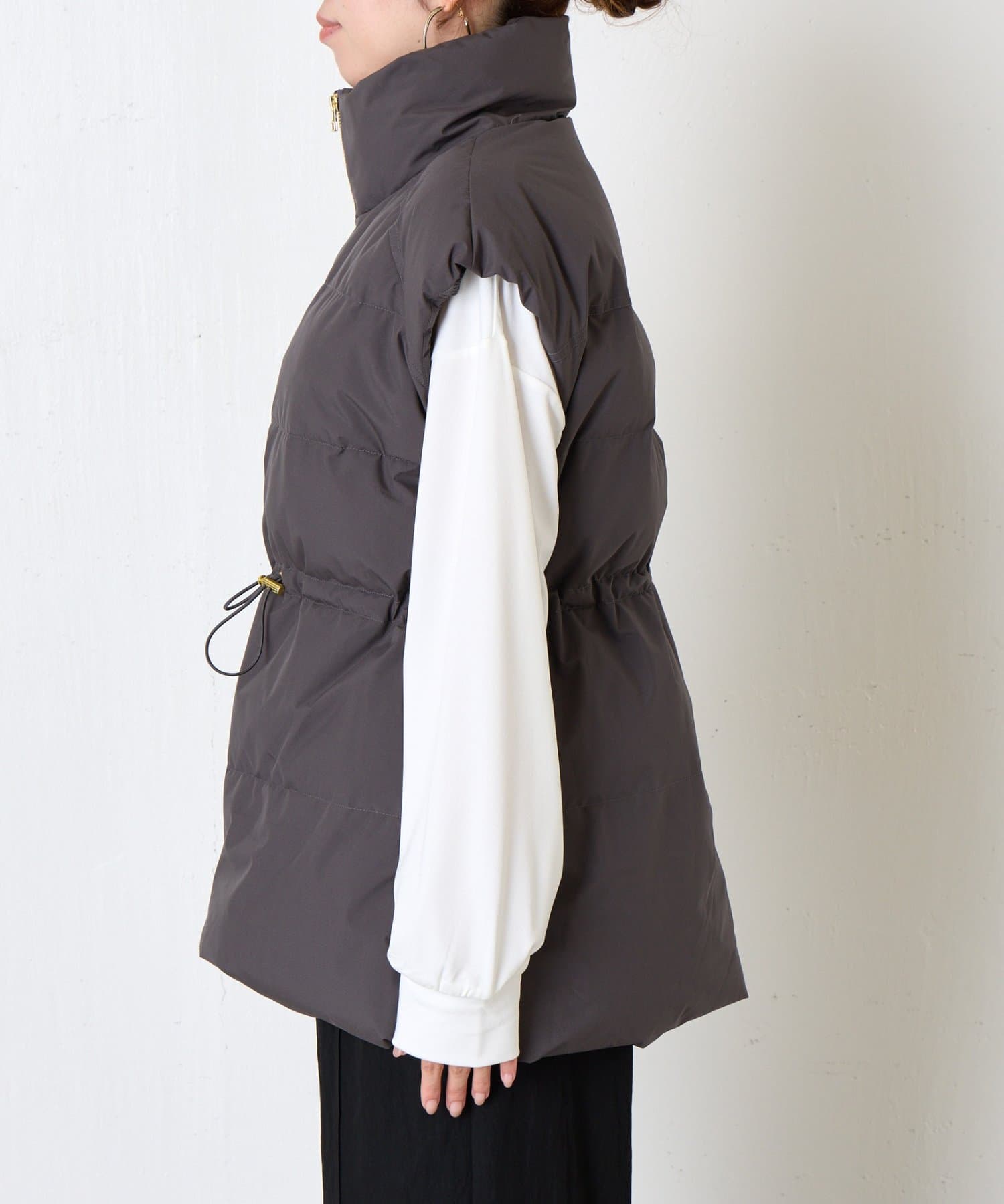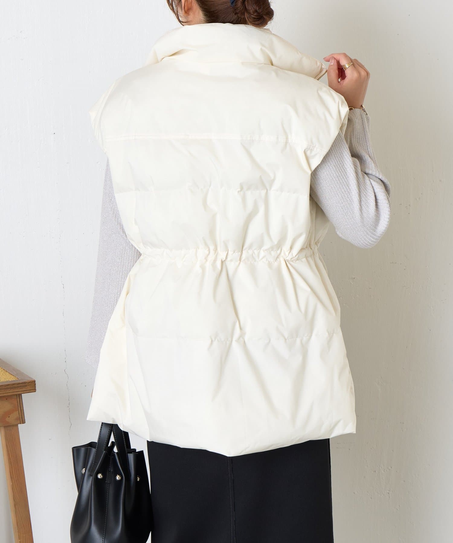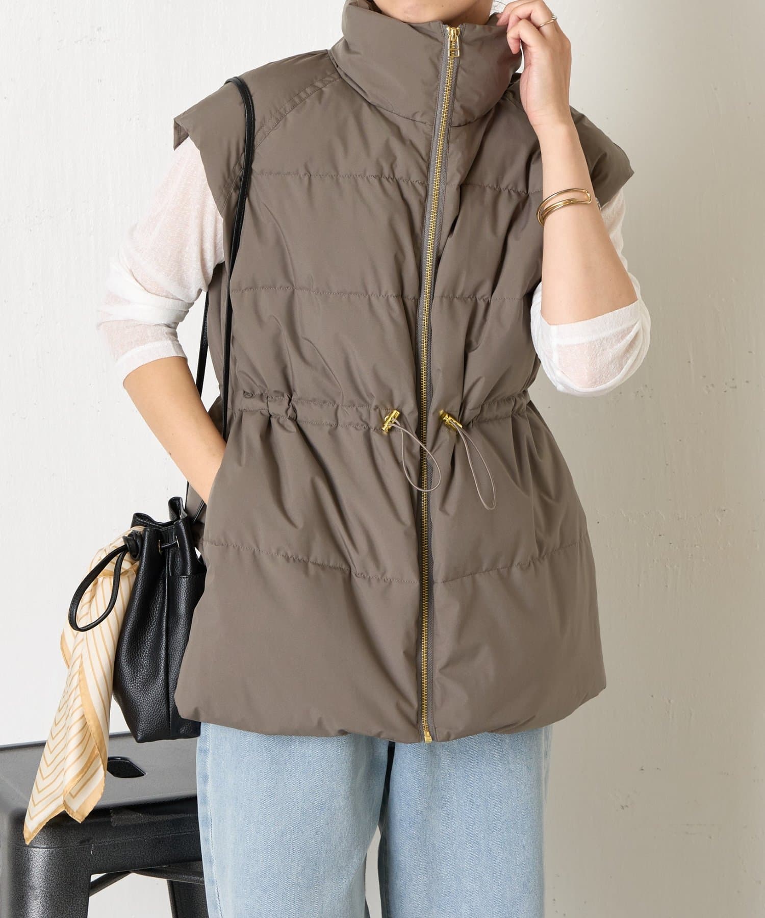 ・ウエストに施されたドロストデザインがポイントのトレンド感あふれる中綿ベスト。
