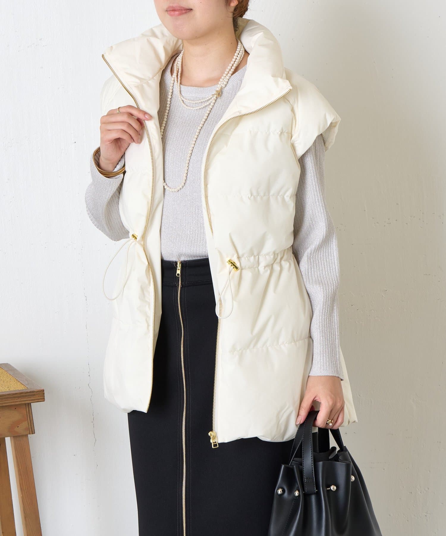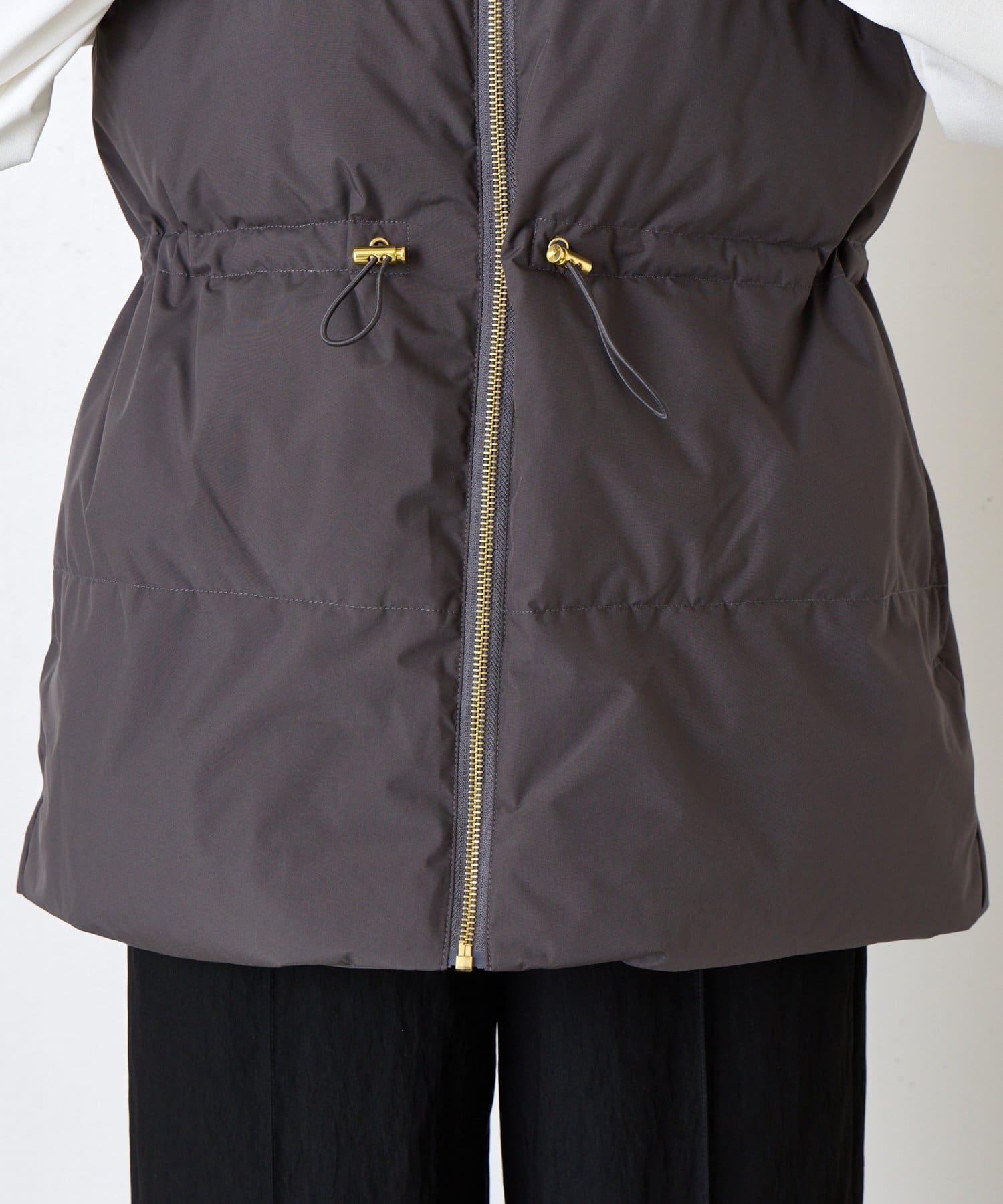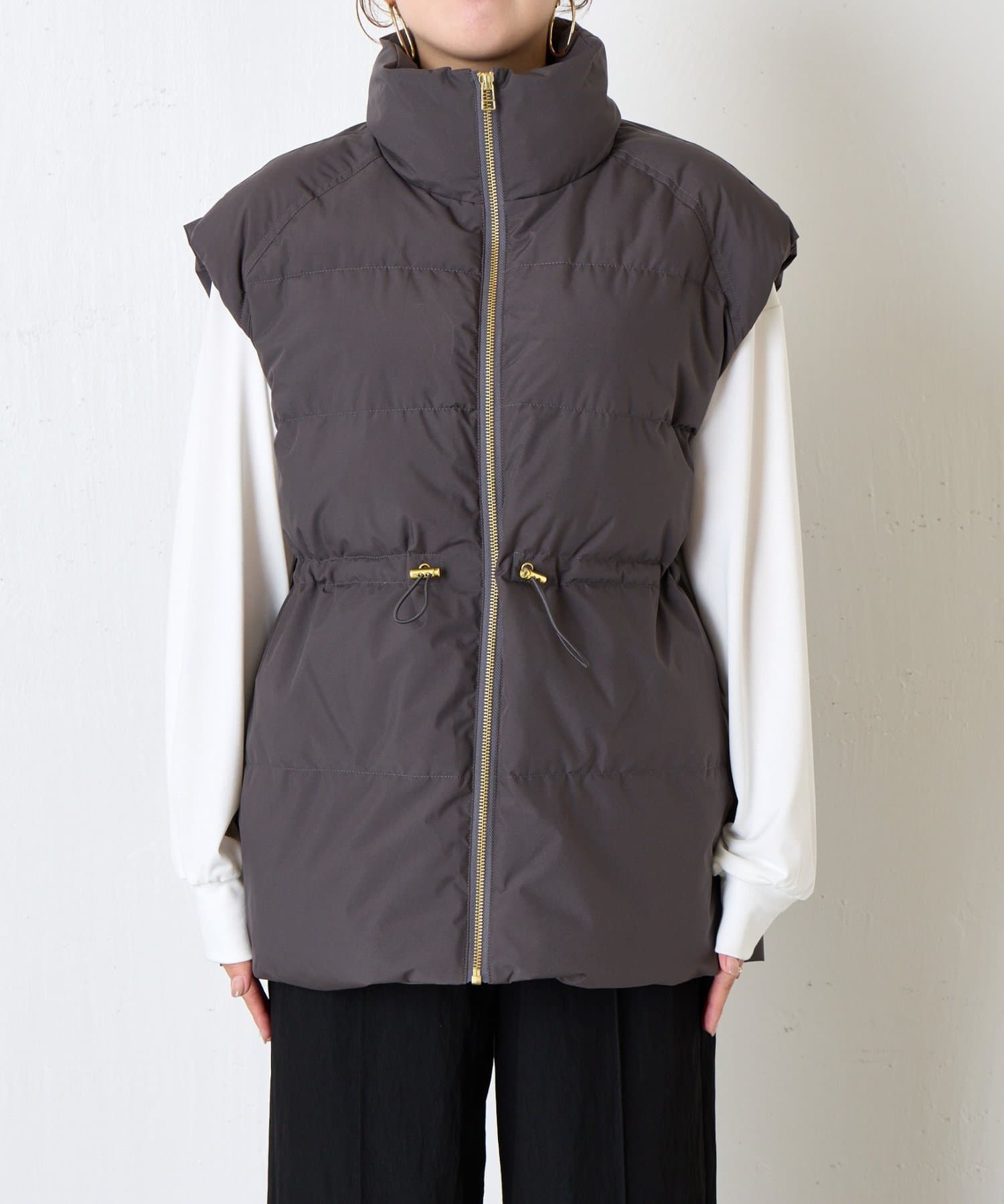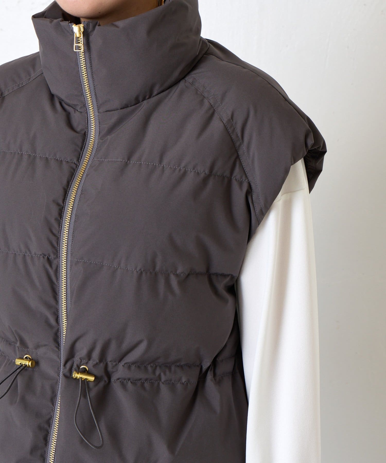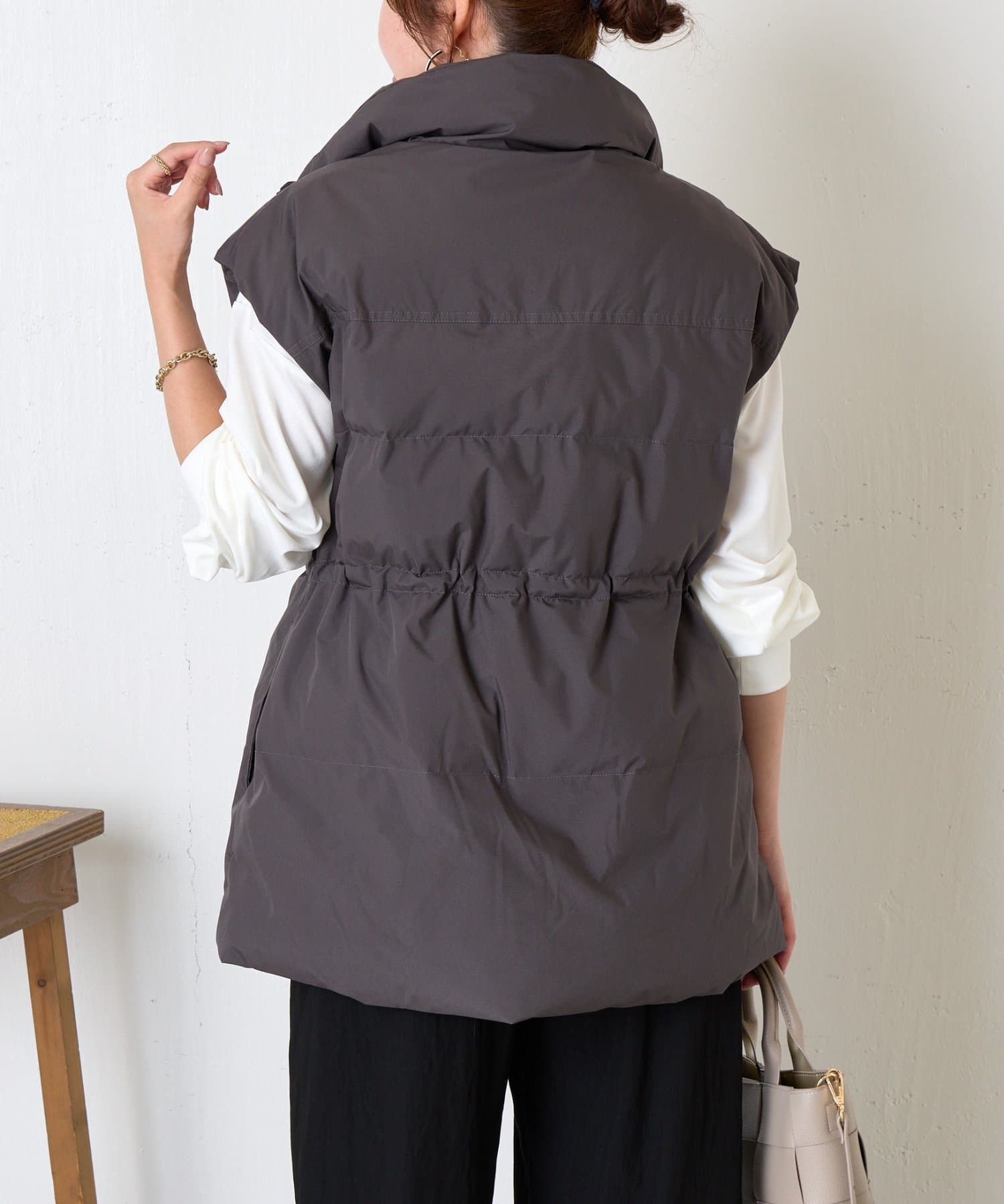 ・ウエストに施されたドロストデザインがポイントのトレンド感あふれる中綿ベスト。