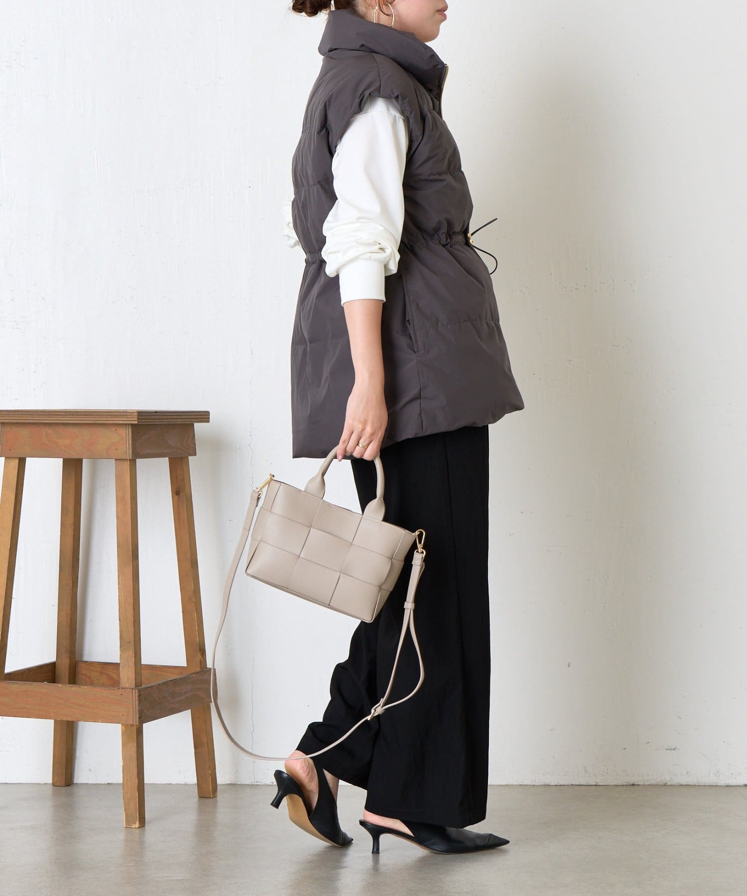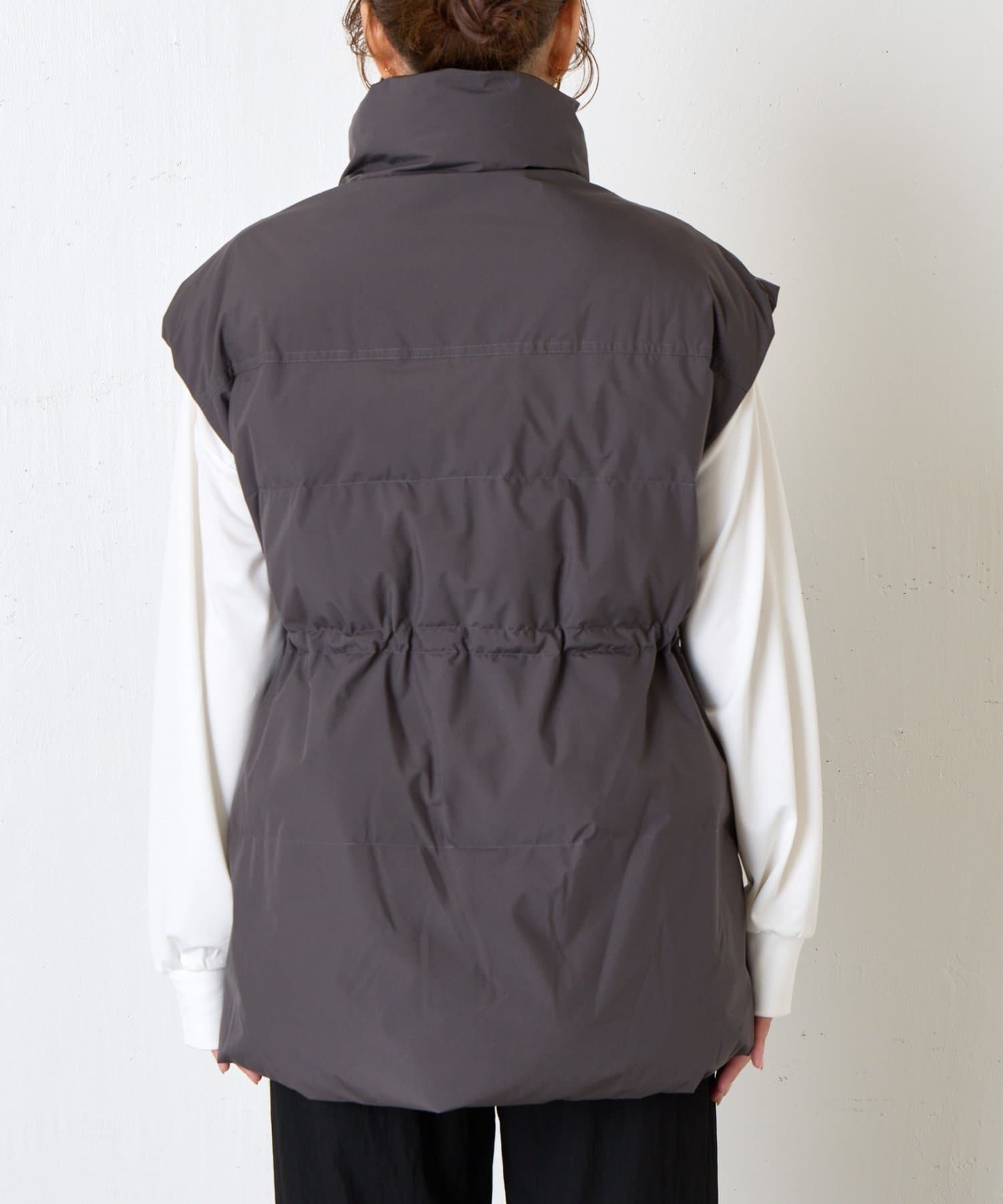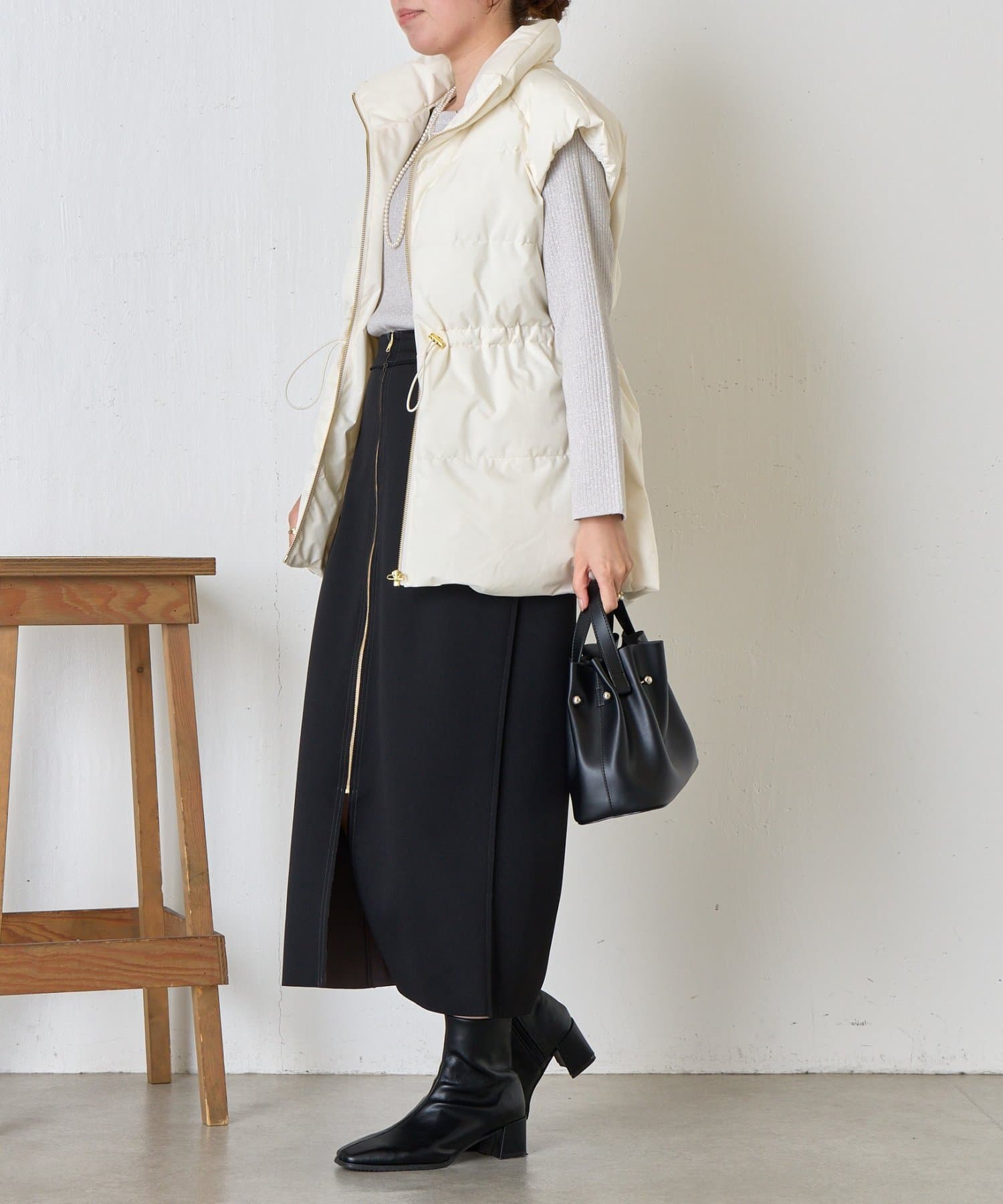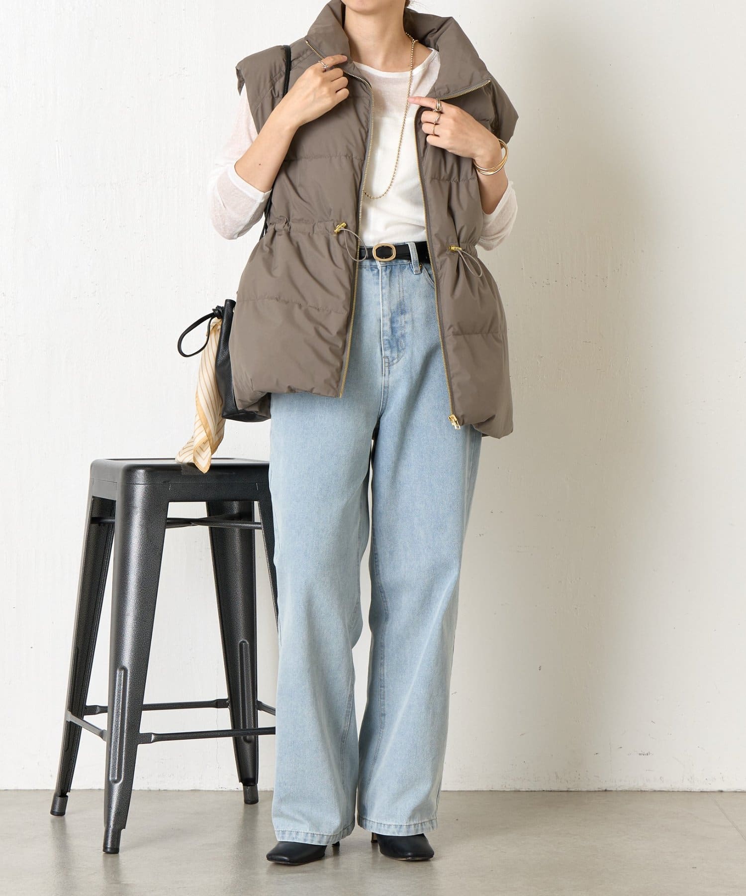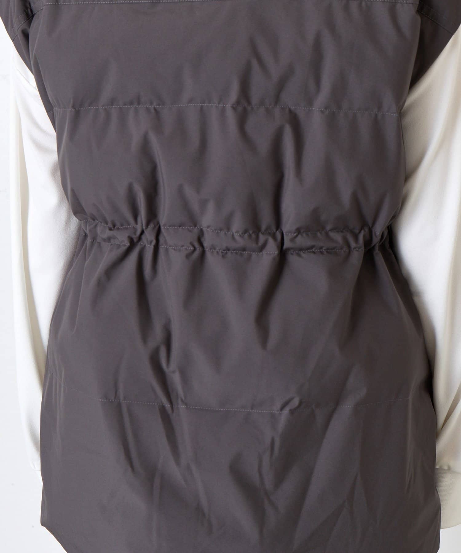 ・ウエストに施されたドロストデザインがポイントのトレンド感あふれる中綿ベスト。
