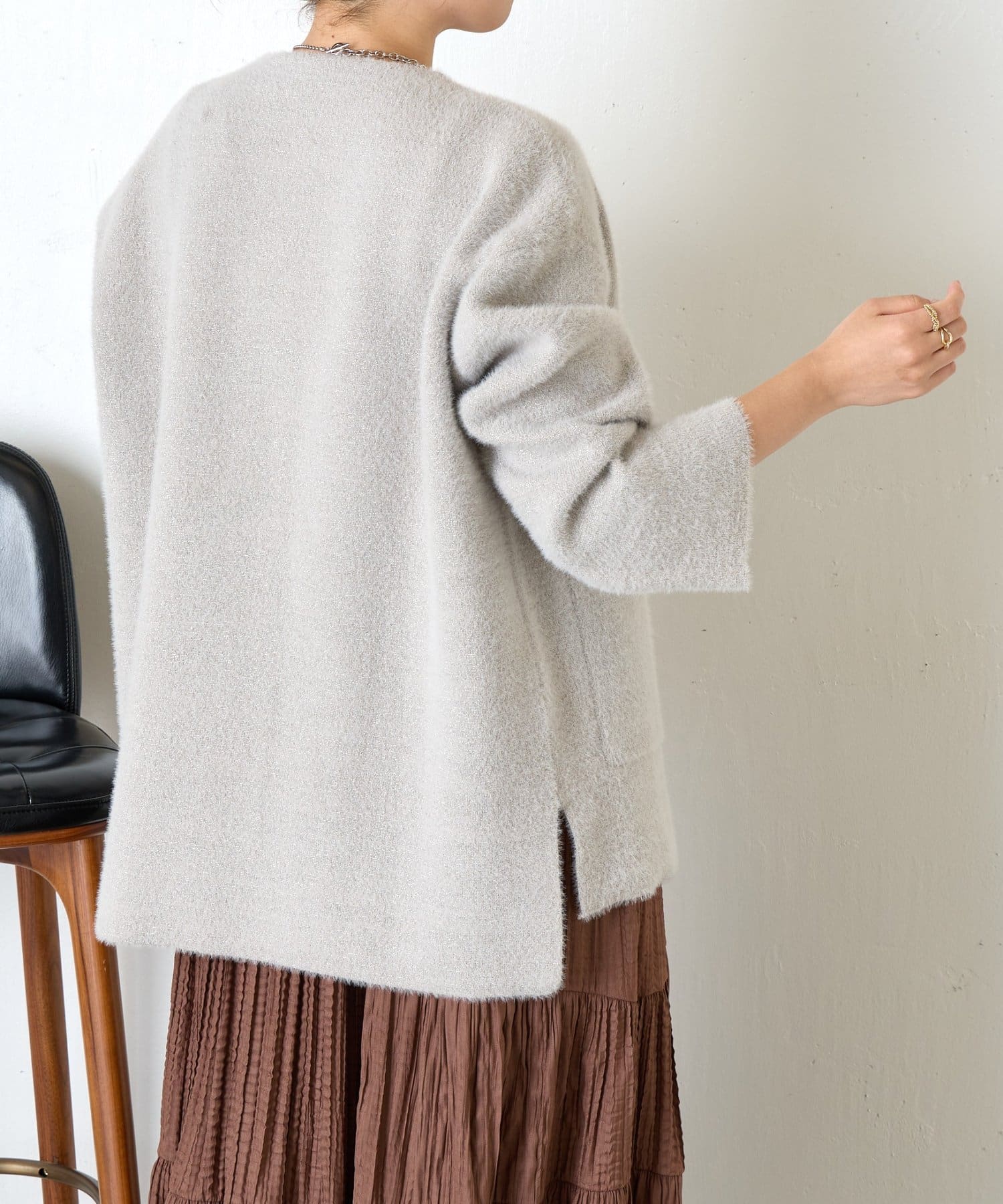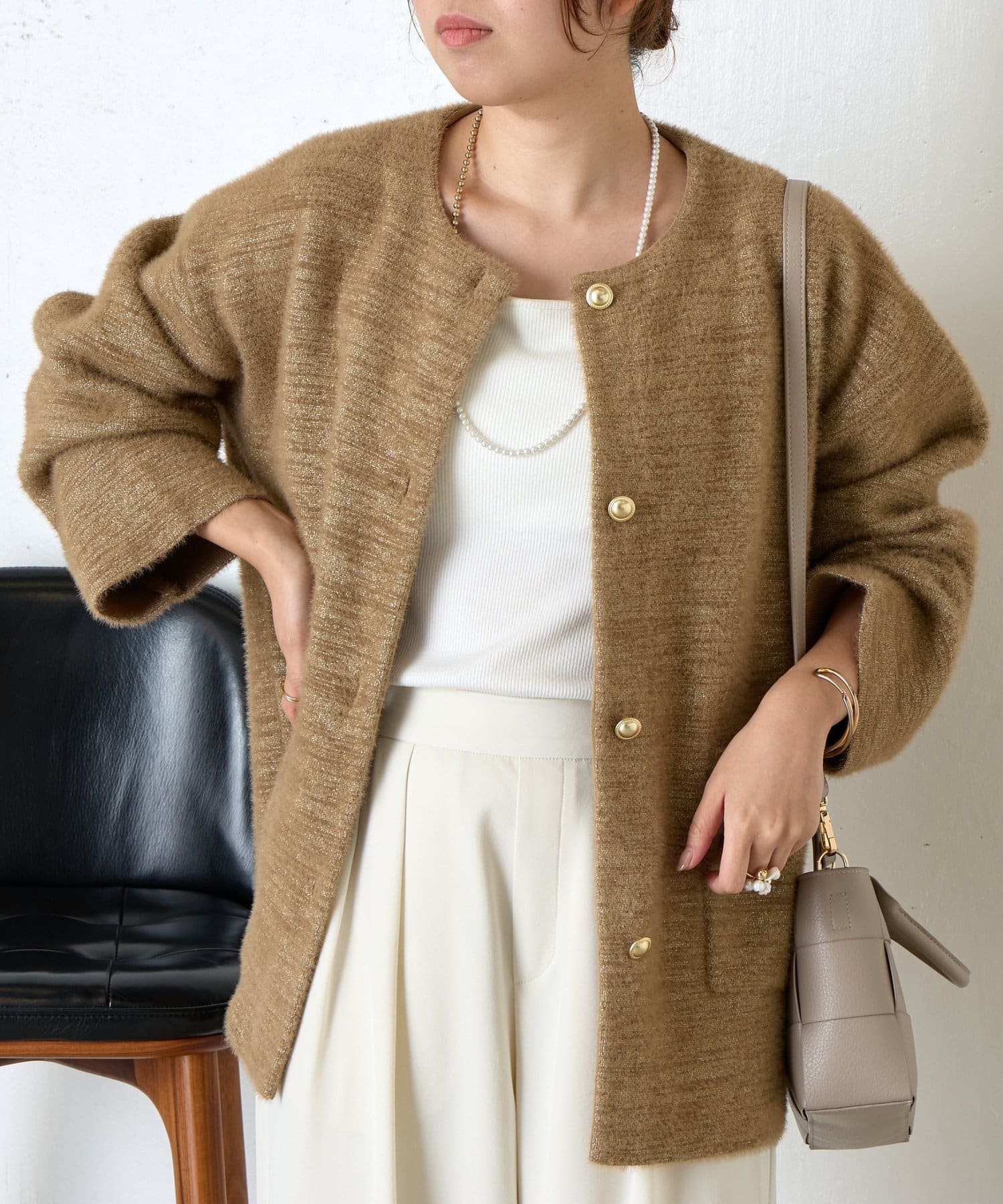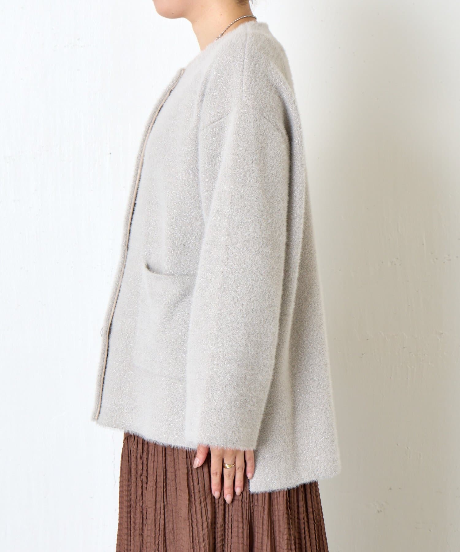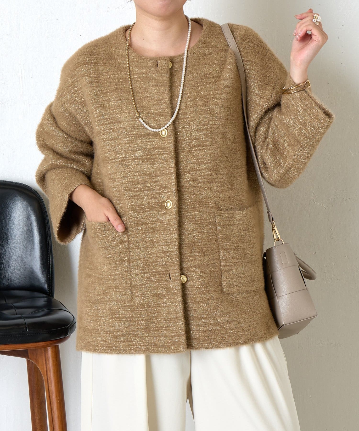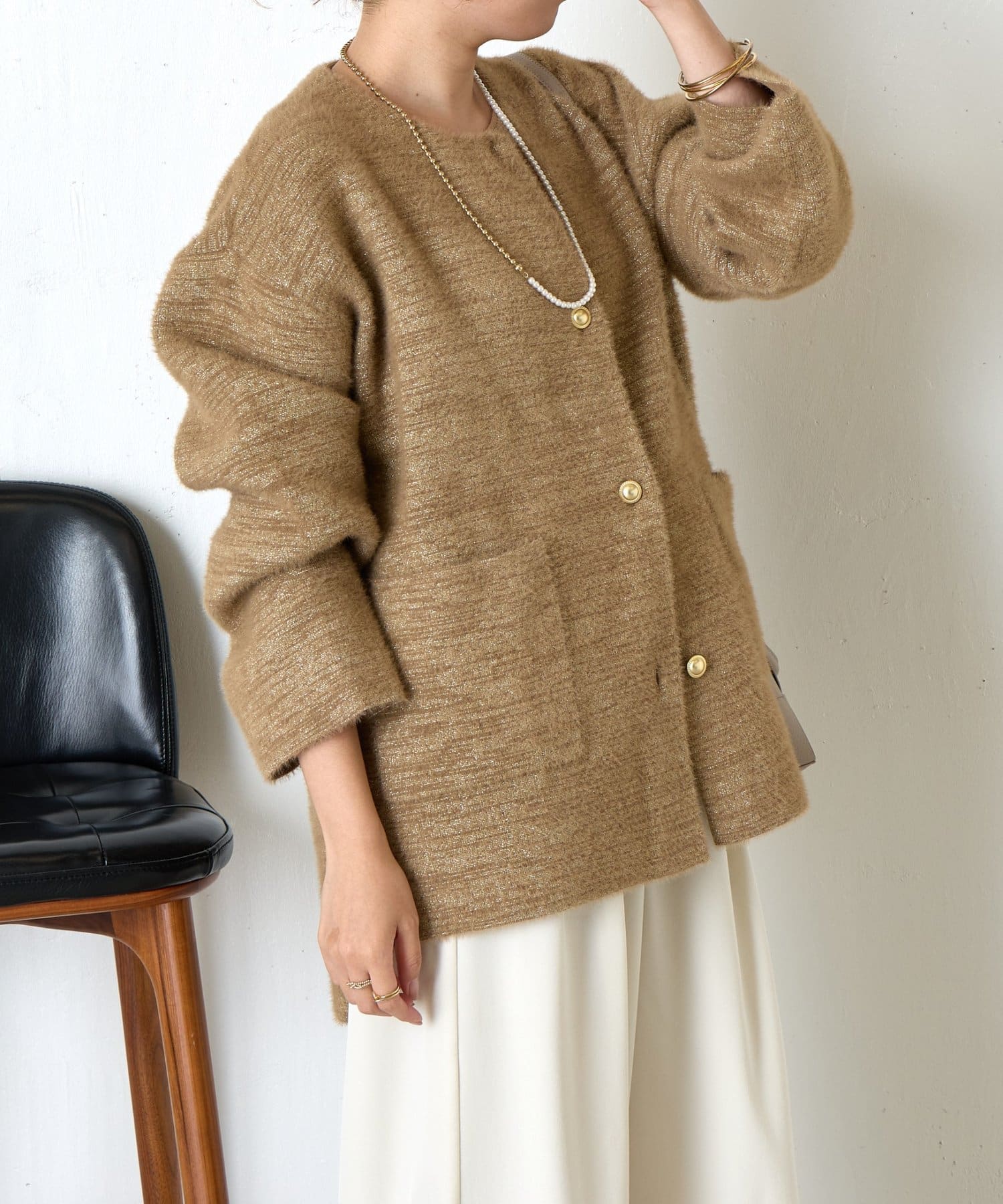 ・コーディネートを華やかにしてくれる、ふわっと柔らかな肌触りのシャギージャケット。