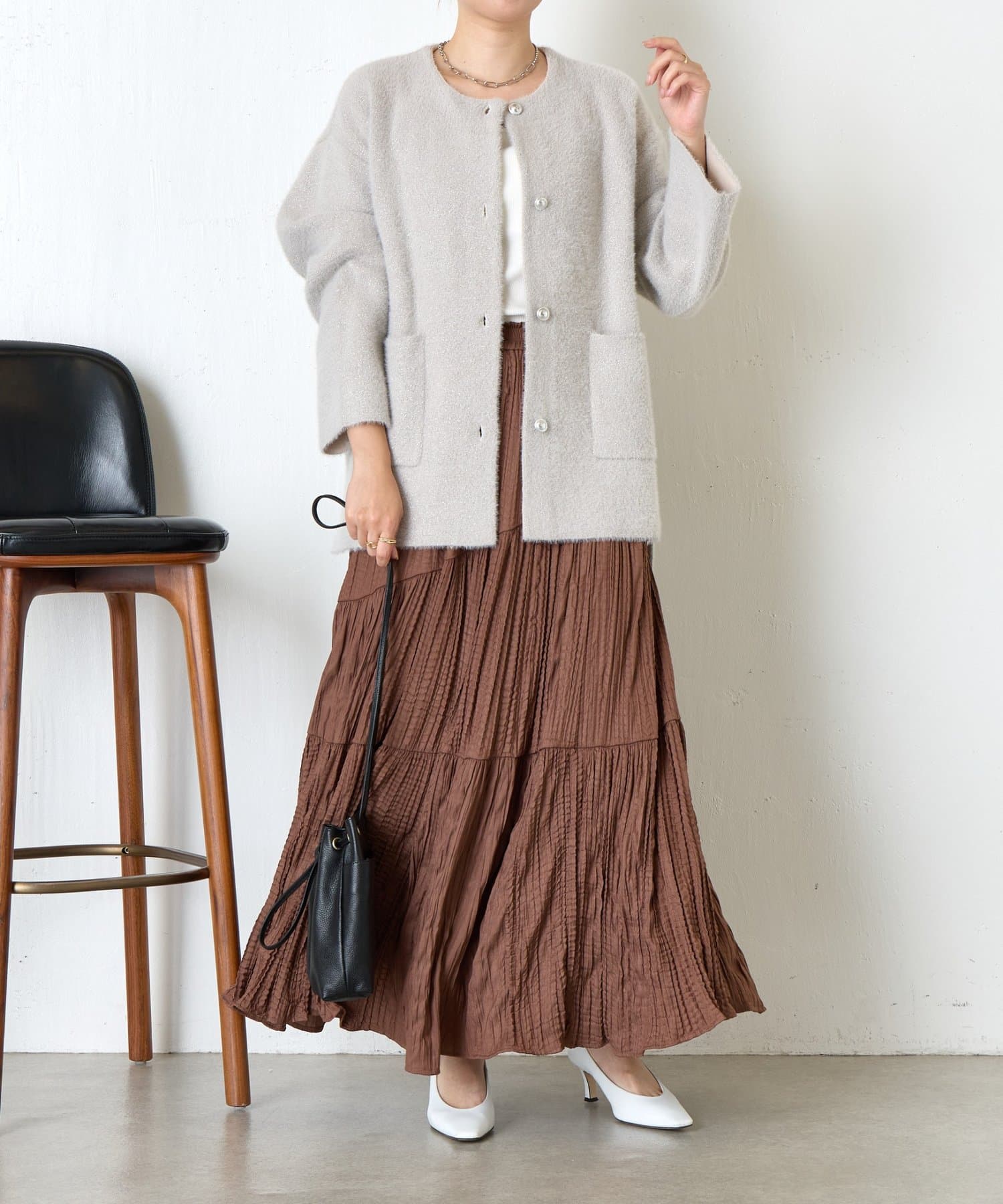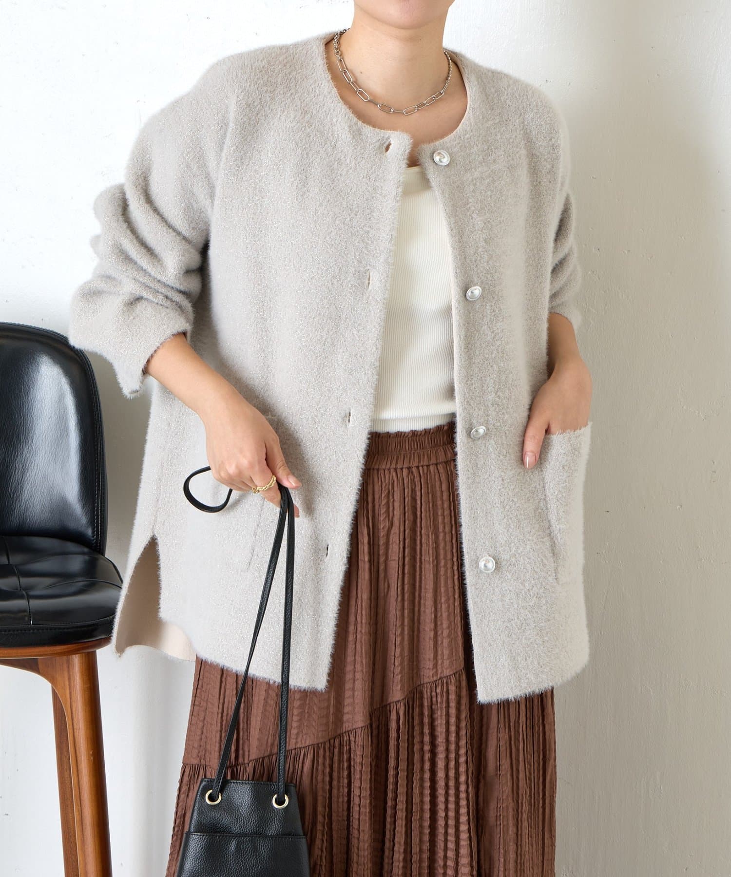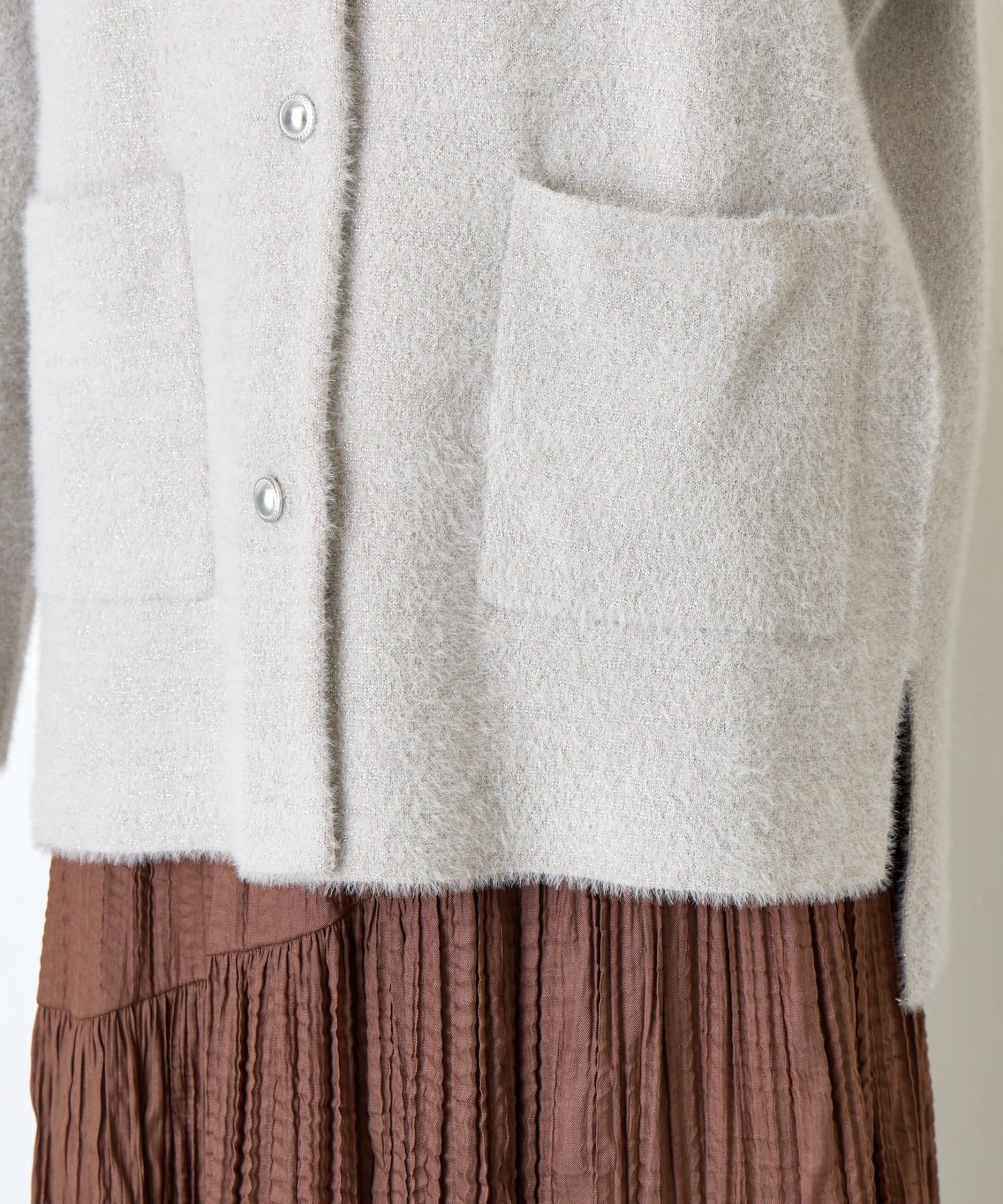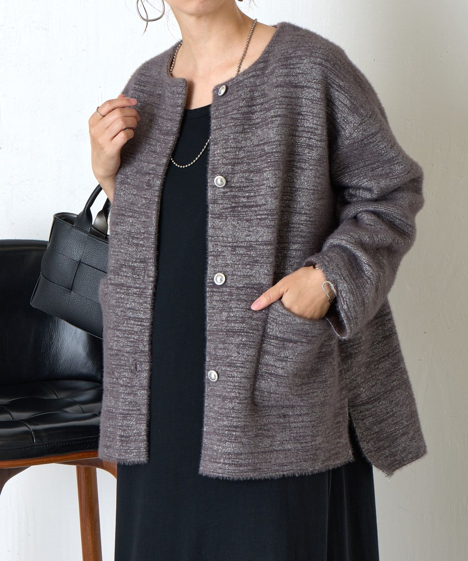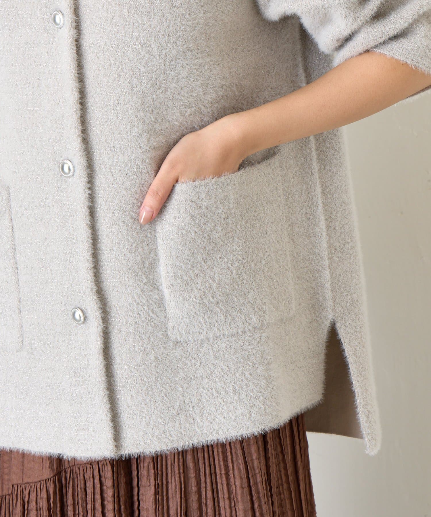 ・コーディネートを華やかにしてくれる、ふわっと柔らかな肌触りのシャギージャケット。