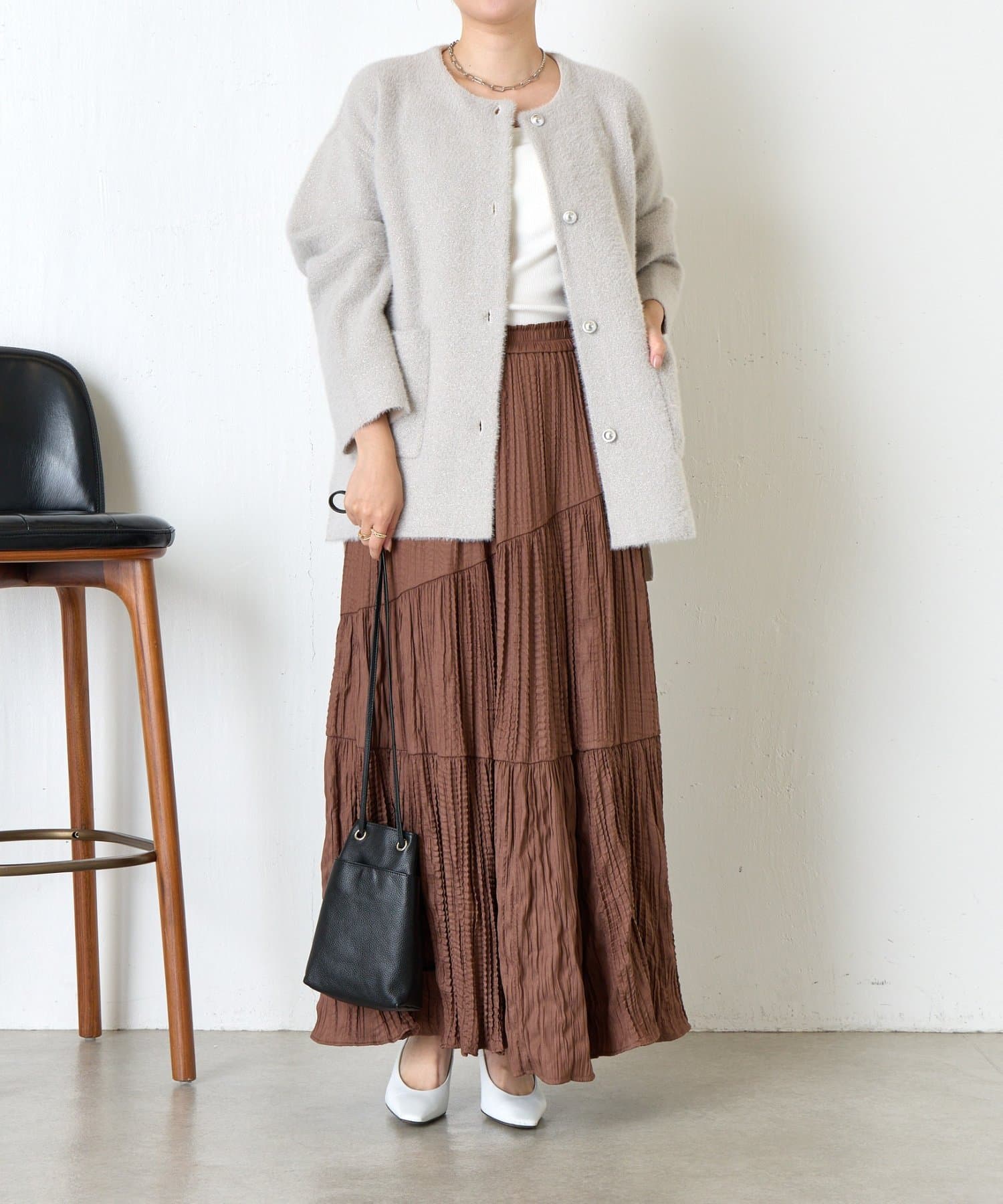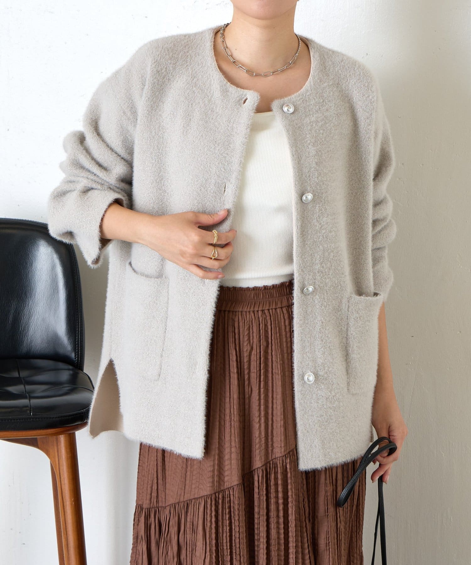 ・カーディガンとしても、アウターとしても活躍。中にニットも着こめるゆったりなサイズ感です◎