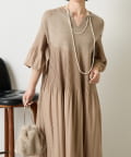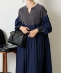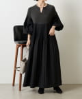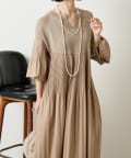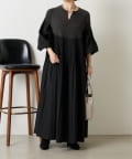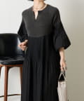 ・ゆったりとした優雅なシルエットが魅力的なデザインロングワンピース。