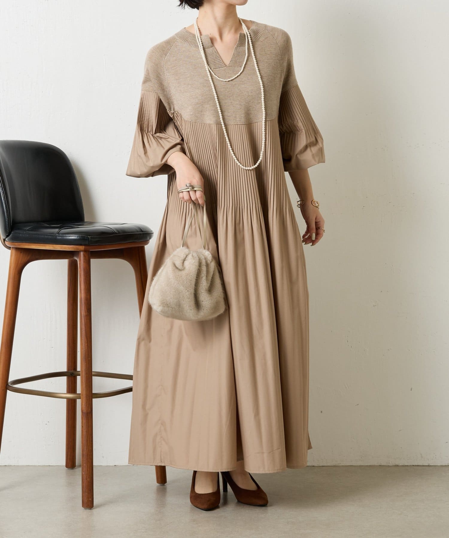・バルーンスリーブやプリーツを施したシルエットが女性らしい雰囲気に。