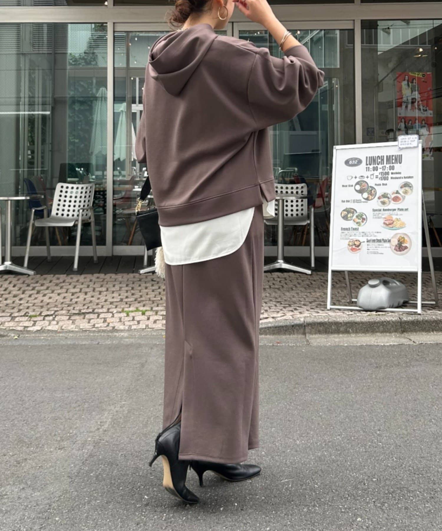 ・シンプルなストレートシルエットのタイトスカートなので幅広いコーデにマッチしますよ。