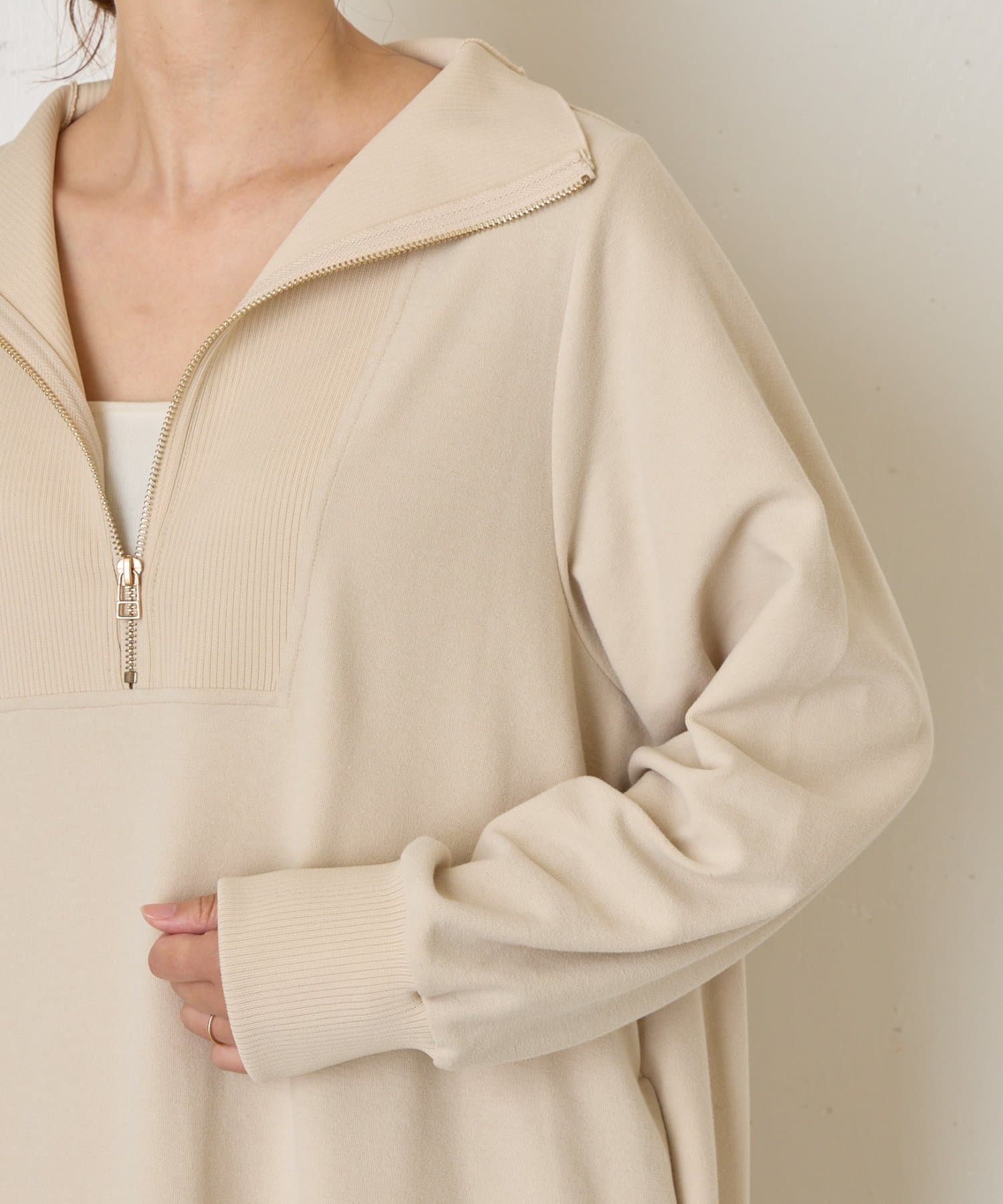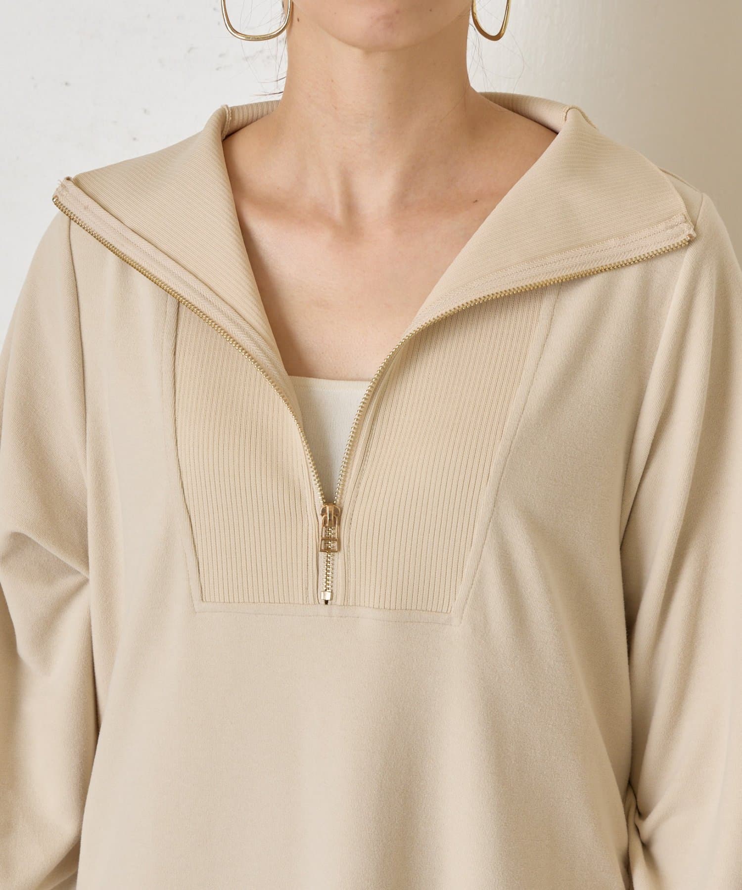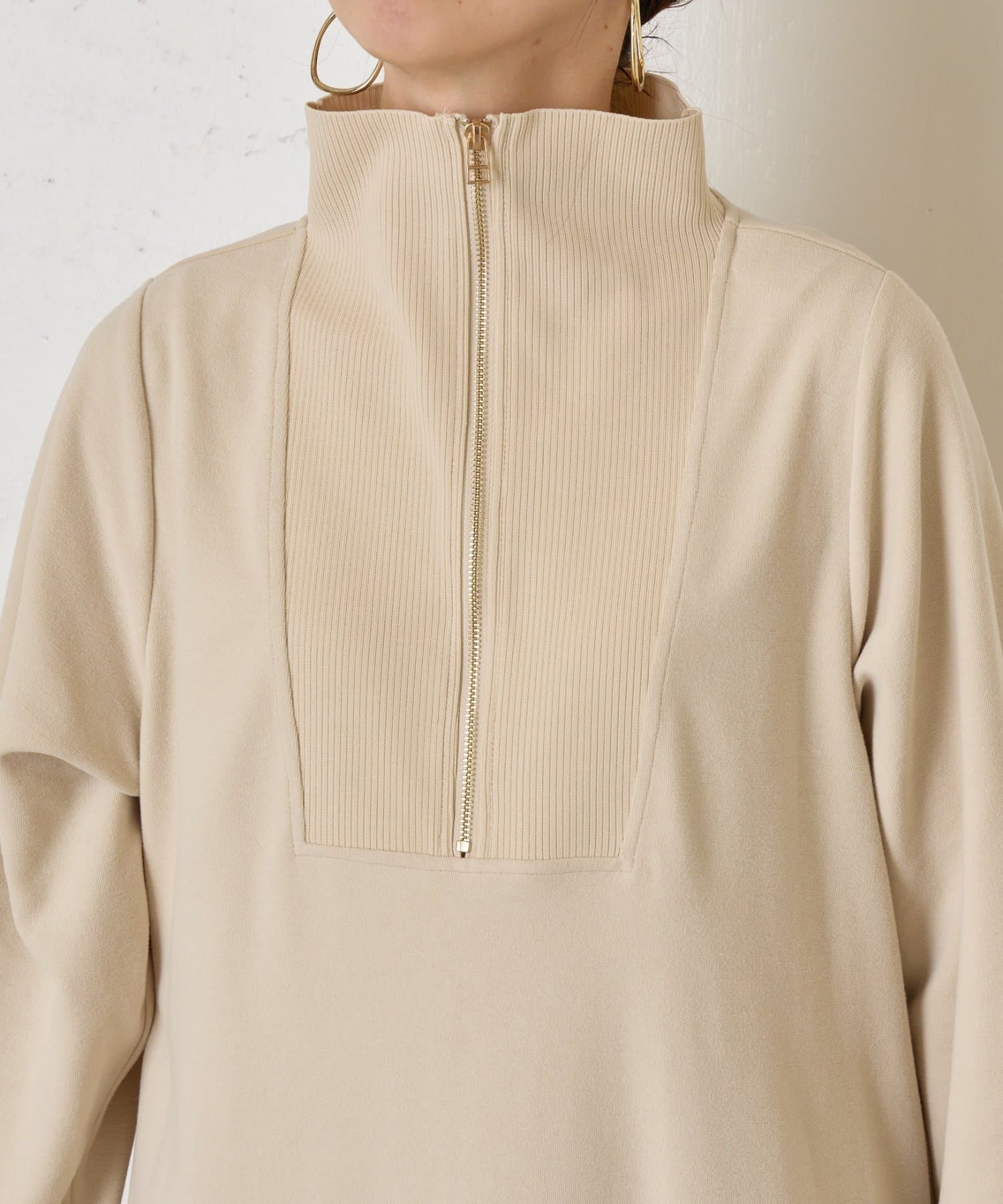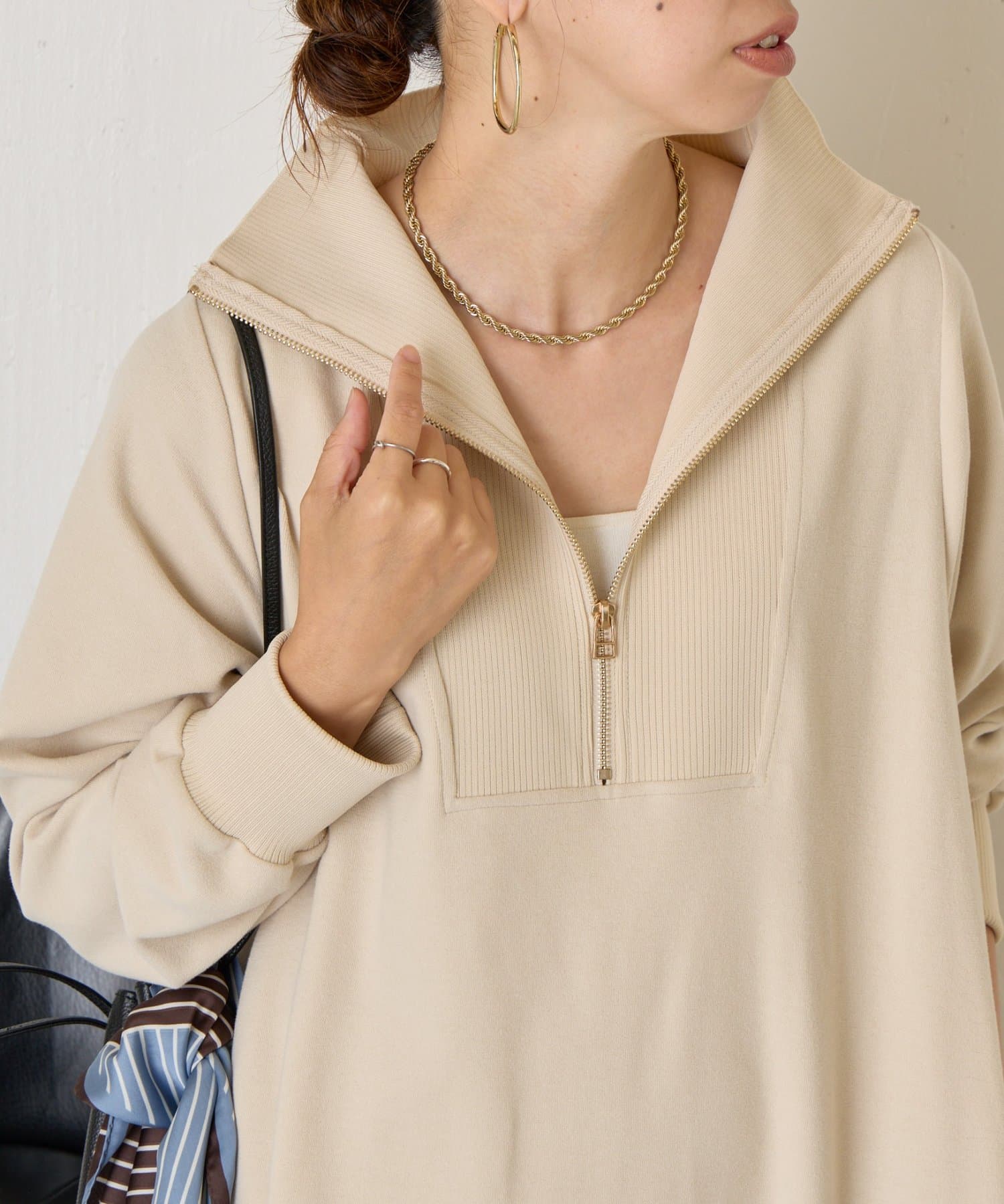 ・一見シンプルながらも、ハーフジップデザインがこなれ感を演出。