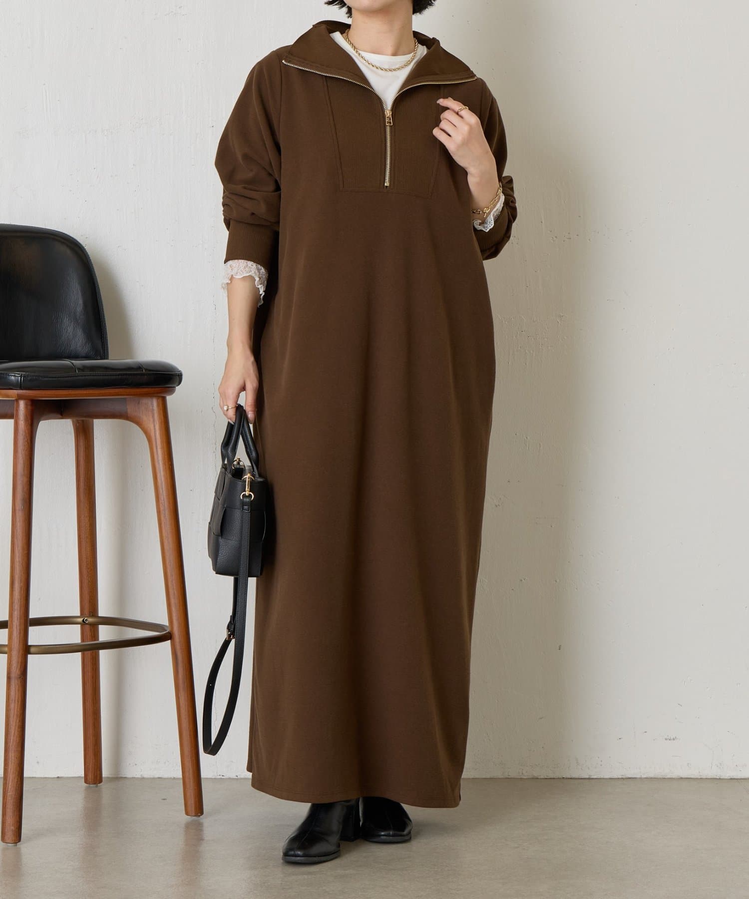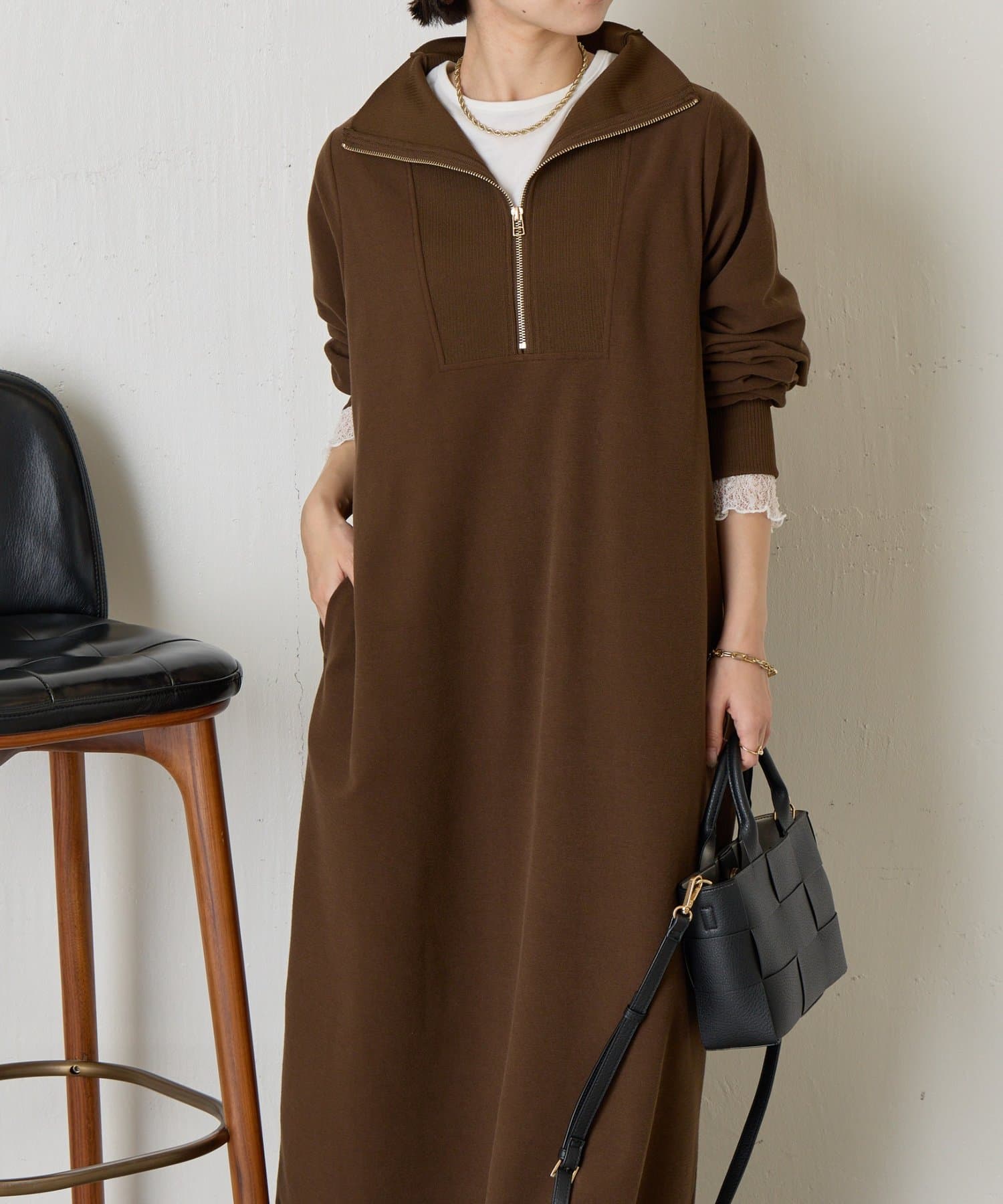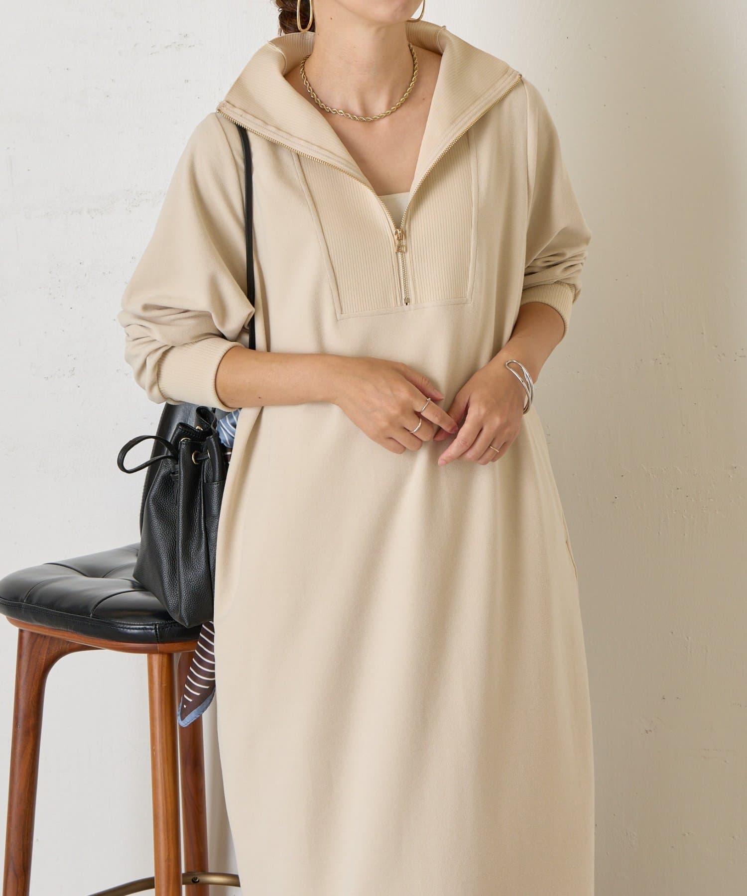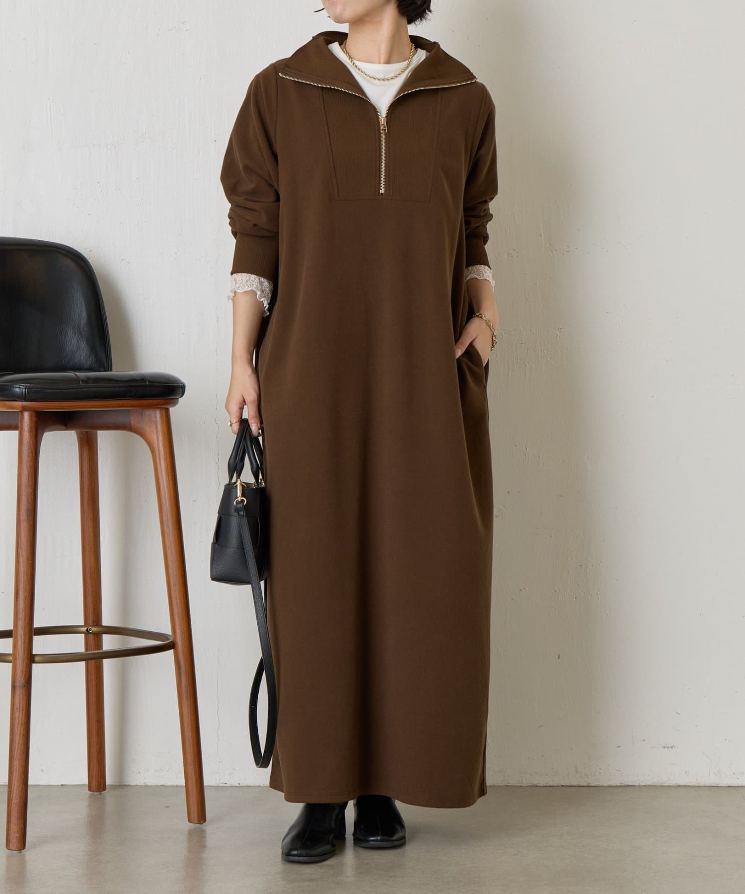 ・一見シンプルながらも、ハーフジップデザインがこなれ感を演出。