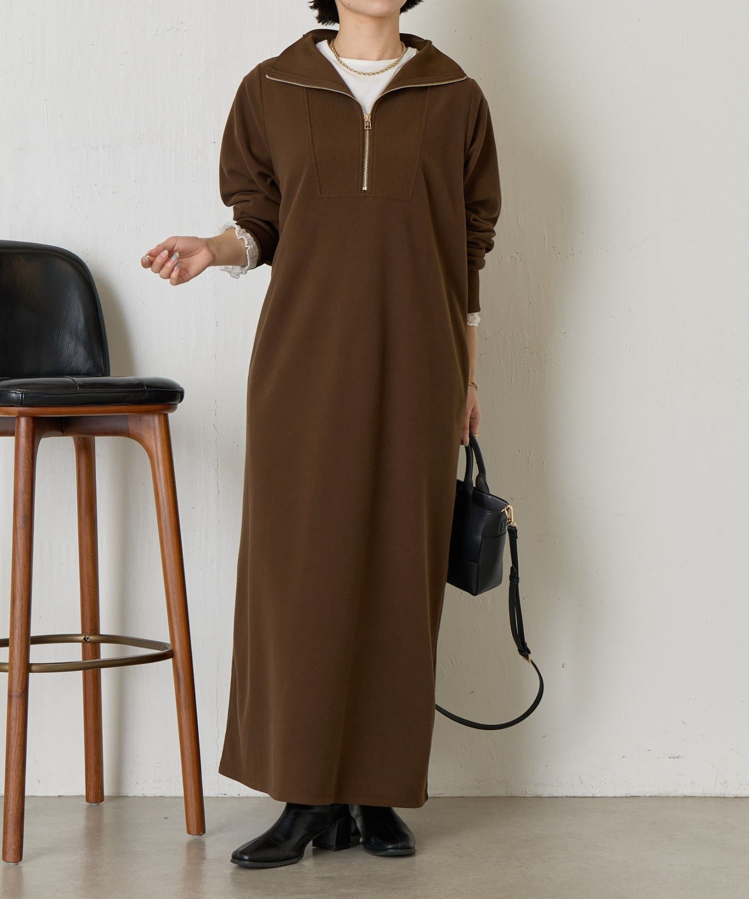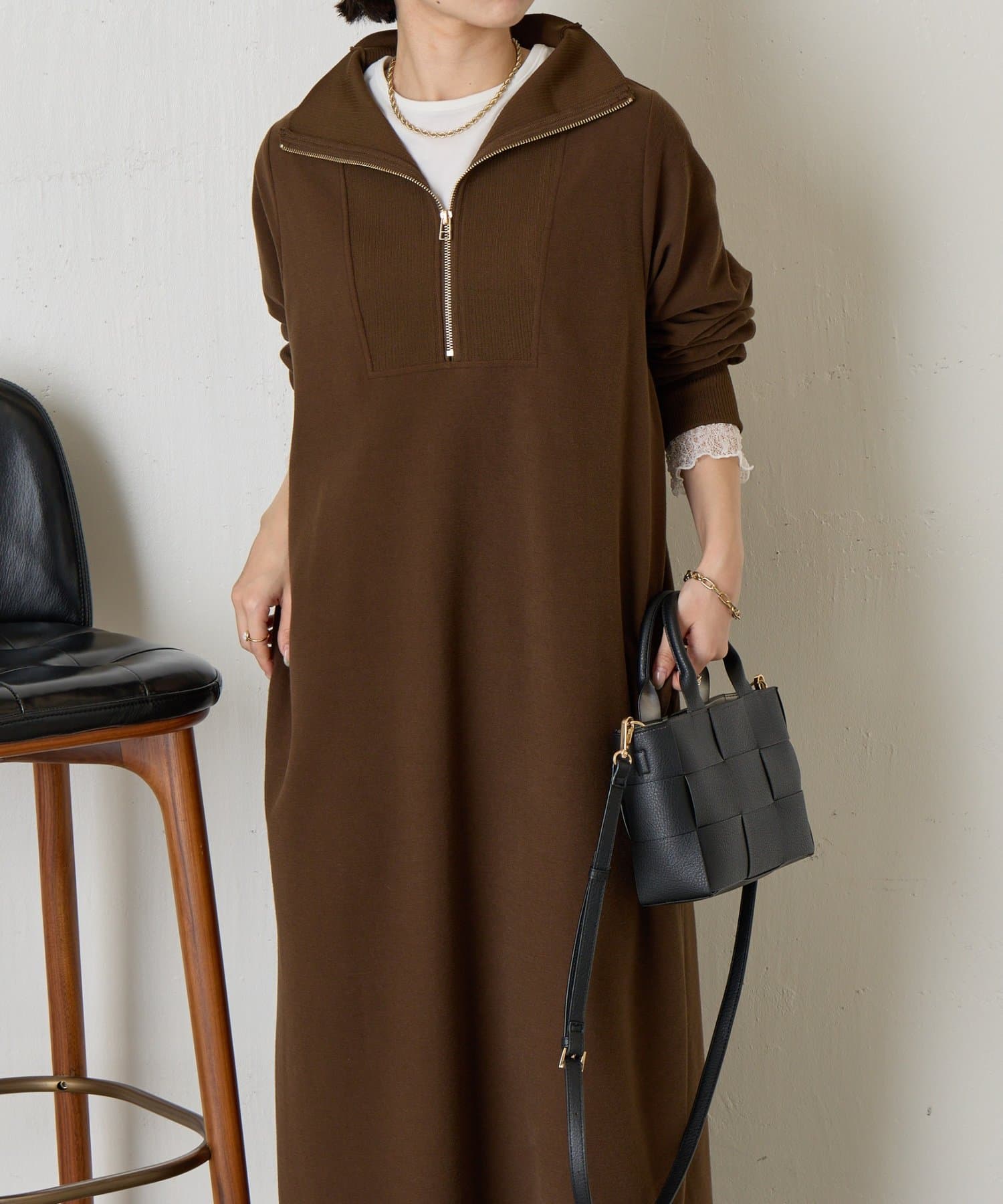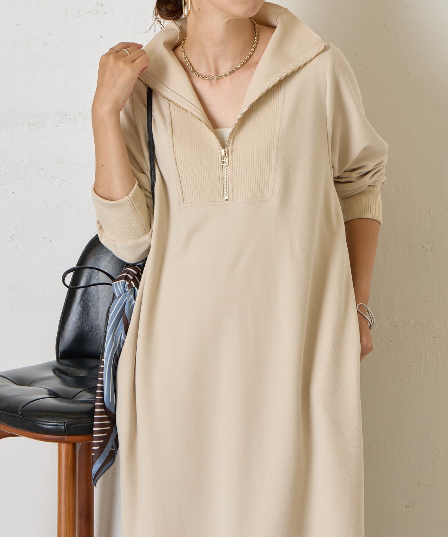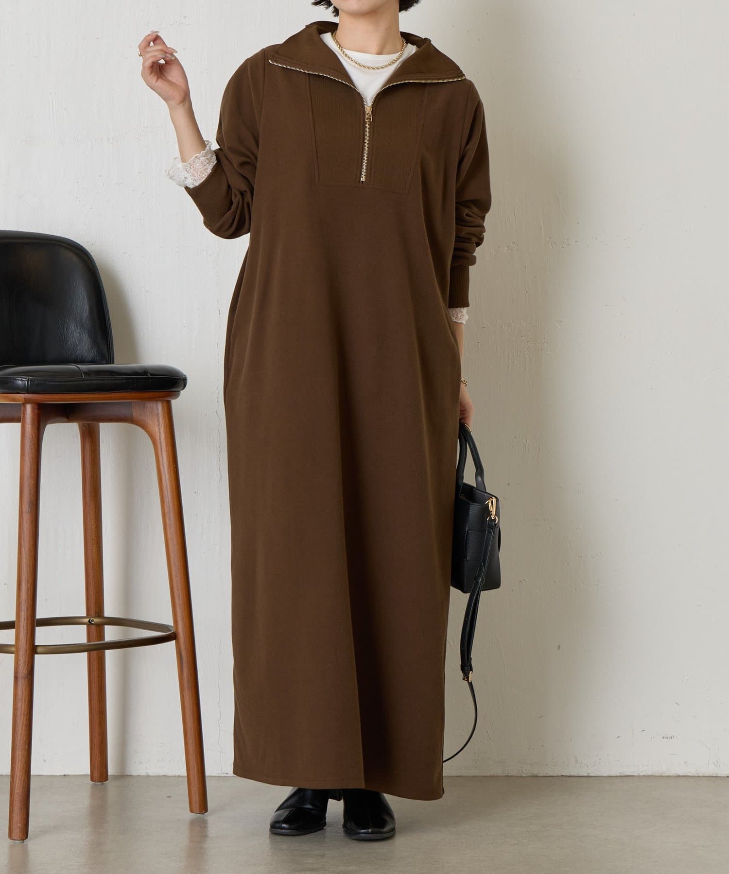 ・一見シンプルながらも、ハーフジップデザインがこなれ感を演出。