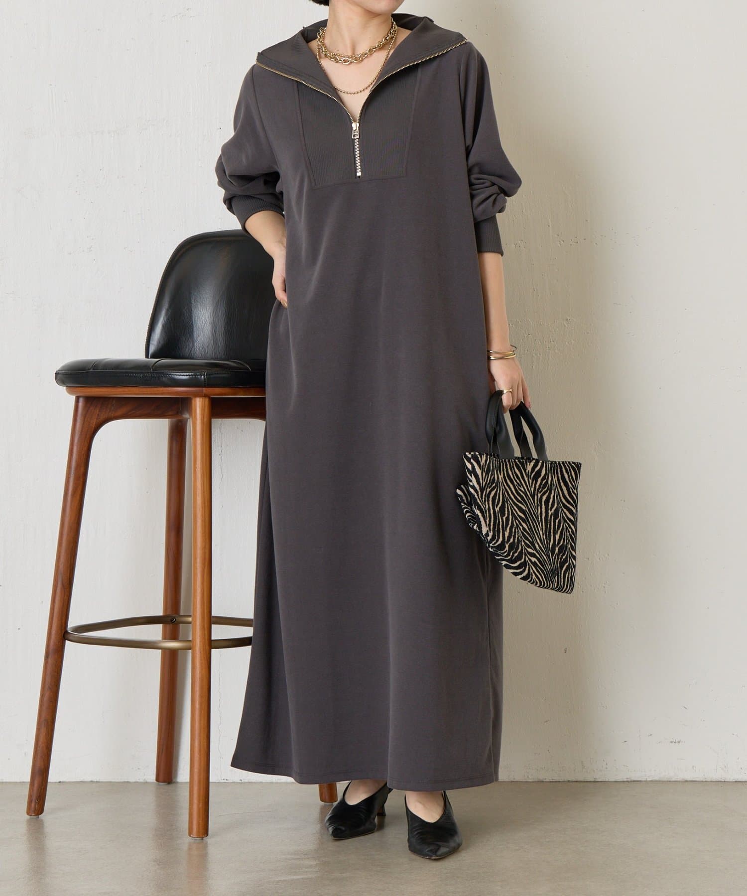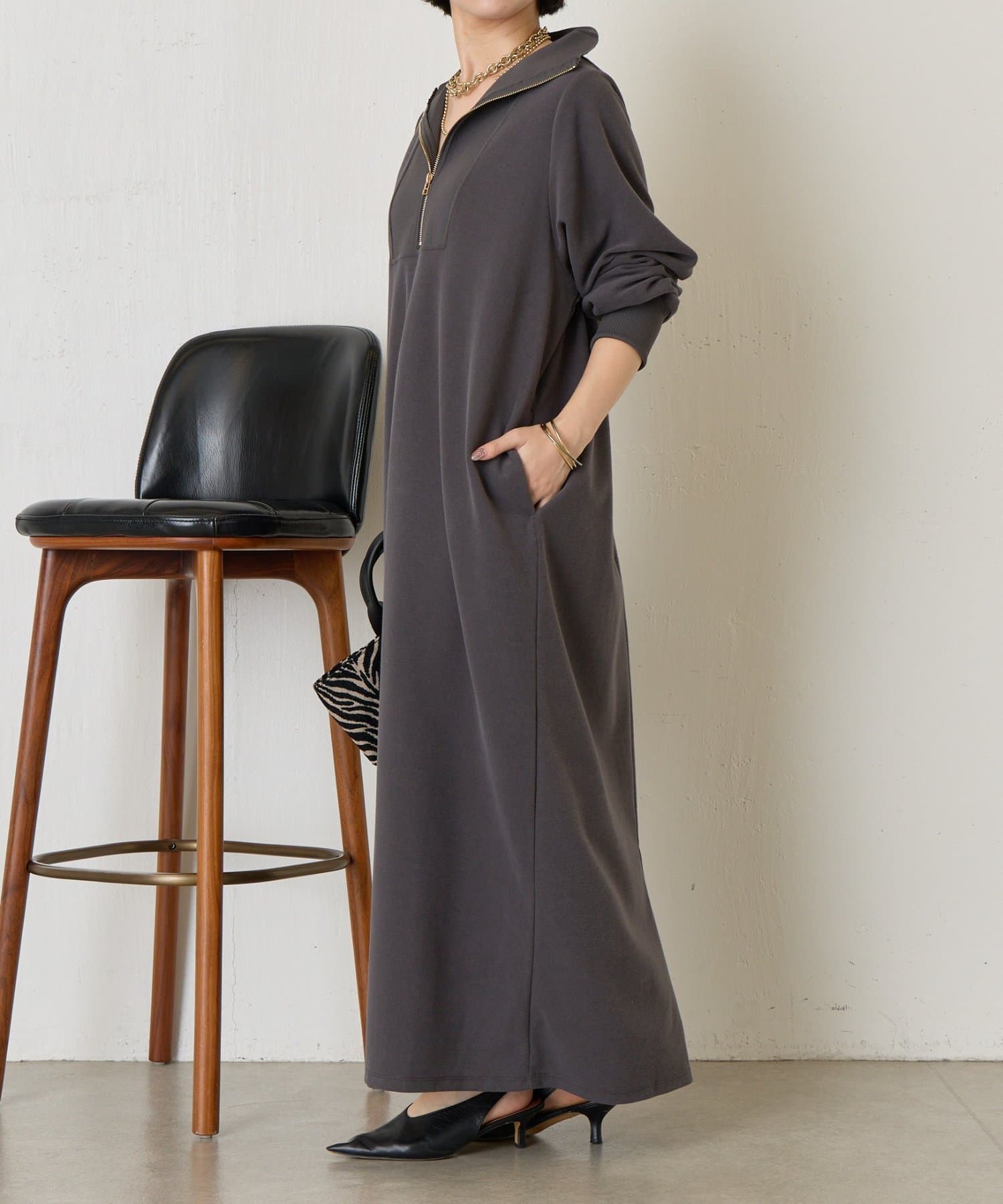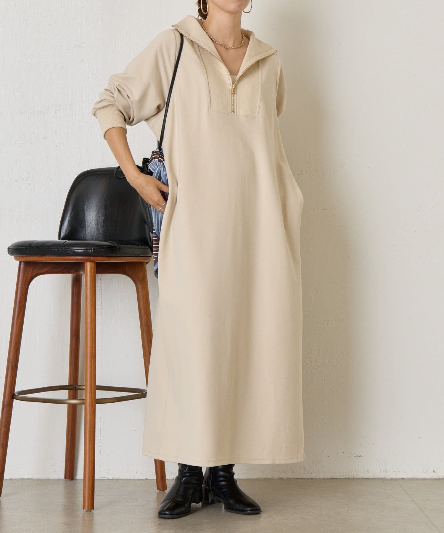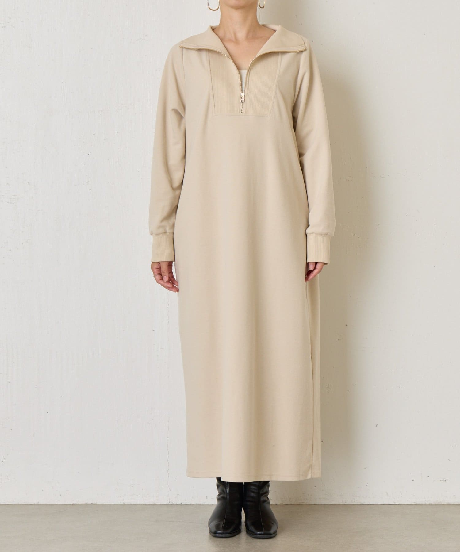 ・一見シンプルながらも、ハーフジップデザインがこなれ感を演出。