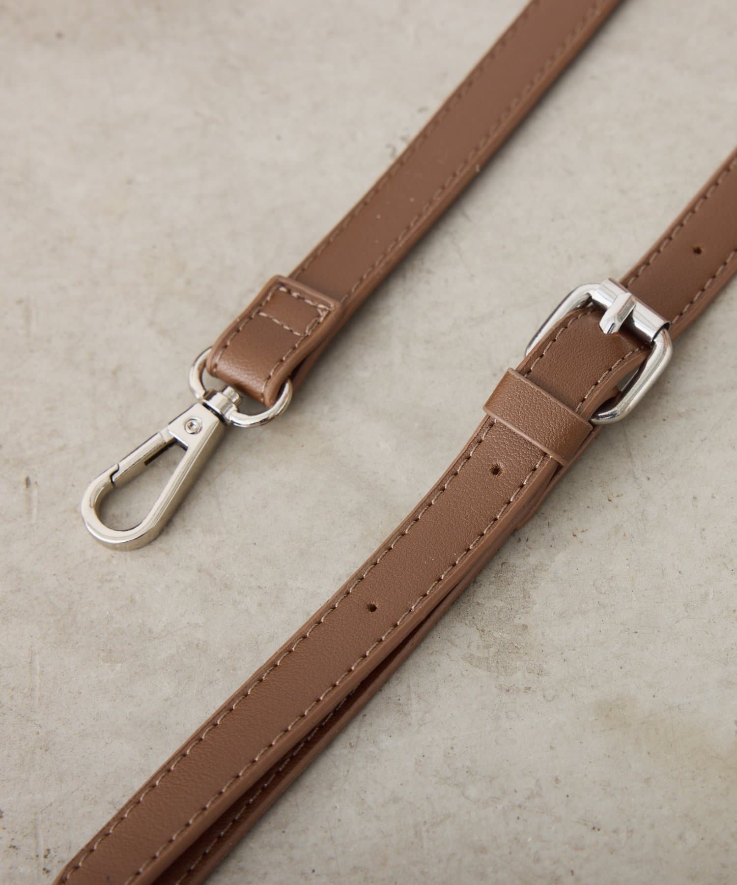 ・程よい光沢のあるフめェイクレザー素材が、カジュアルからキレイめまで幅広いコーディネートにマッチ。