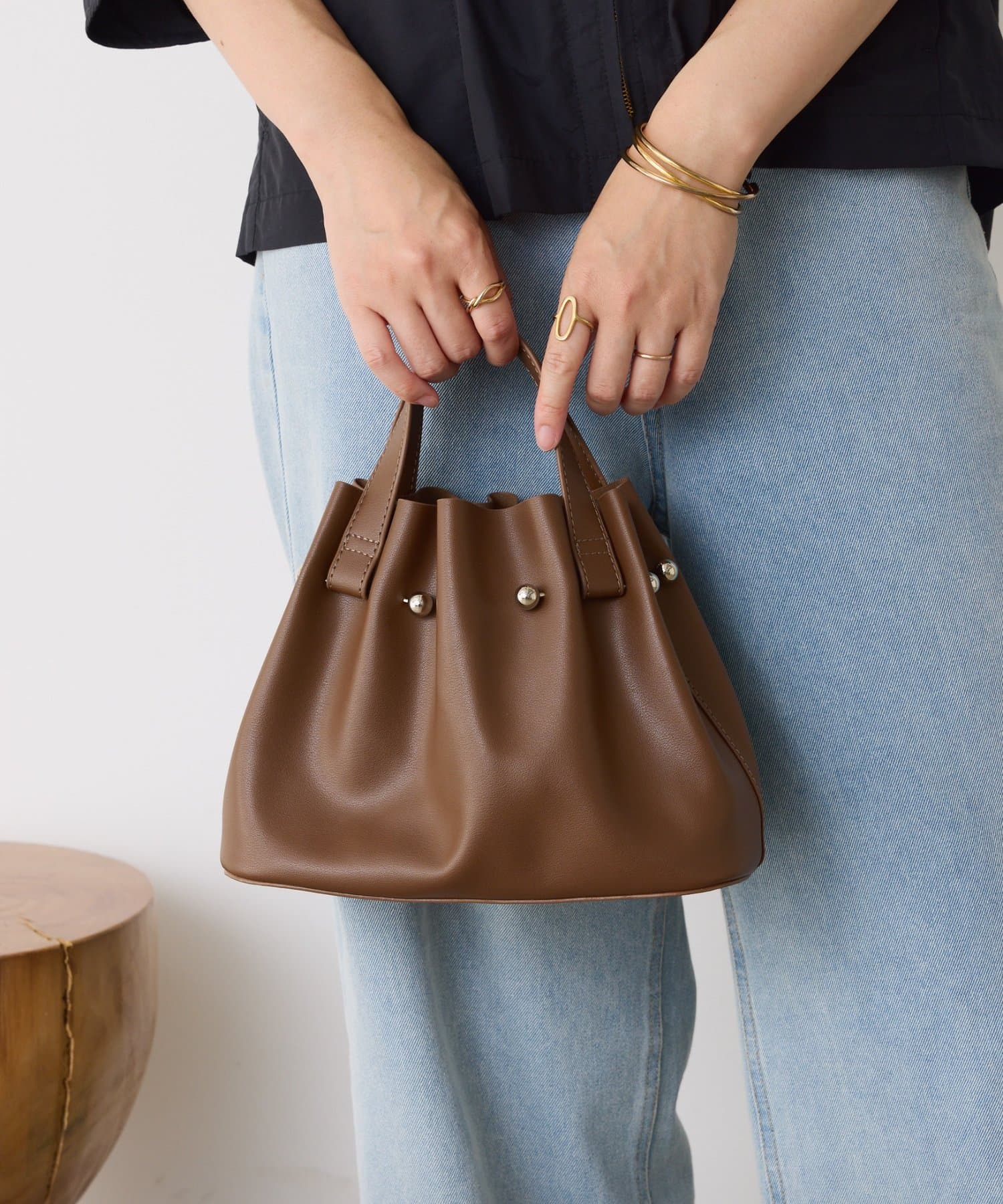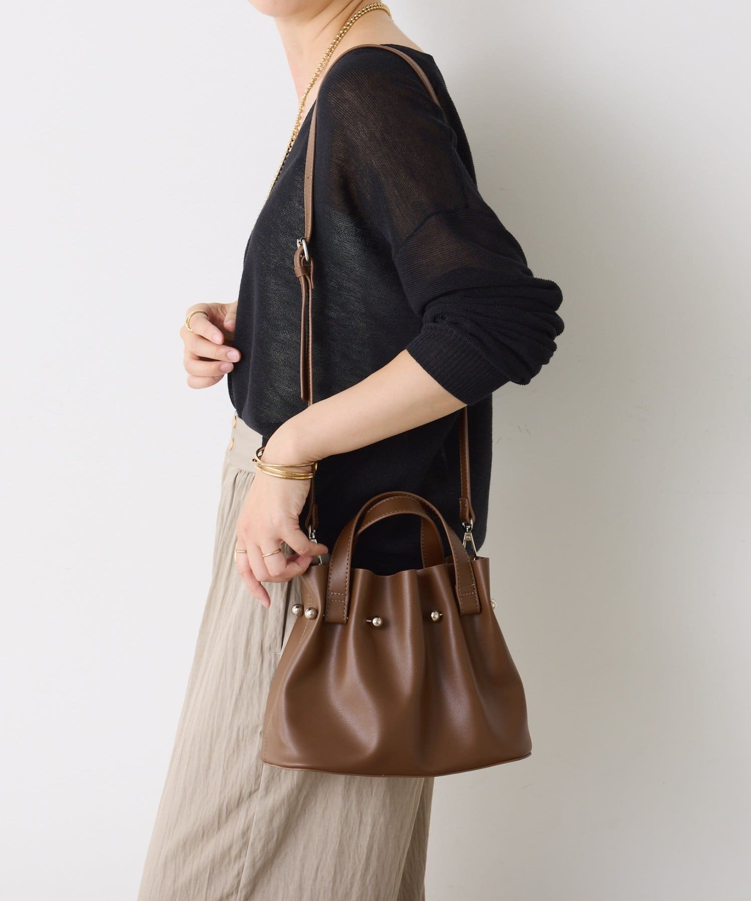 ・シンプルながらもメタルボールがさりげないアクセントになり、上品なモード感を兼ね備えます。