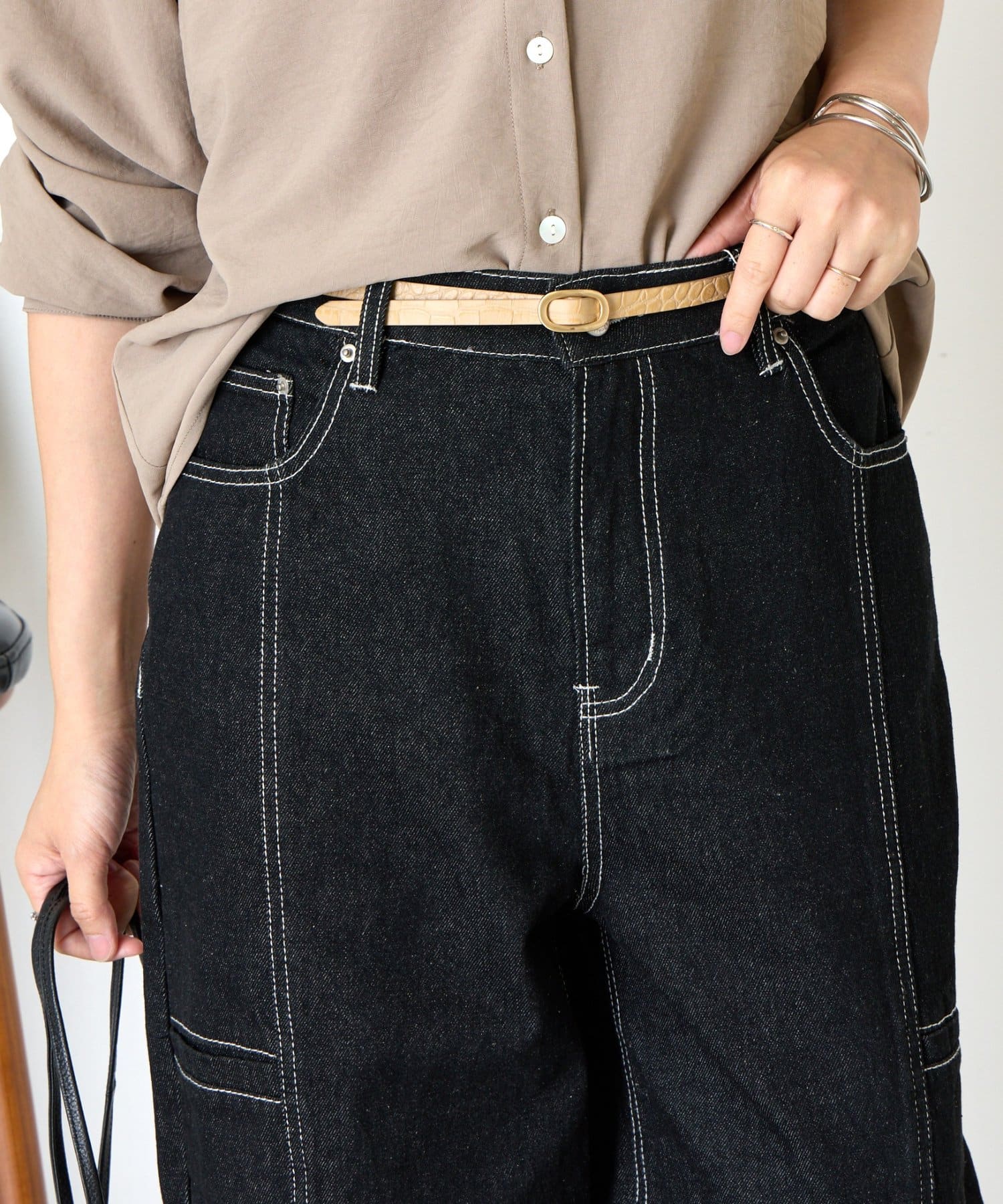 ・ベルト穴がないためウエスト調節が幅広く、華奢な方にもおすすめです。