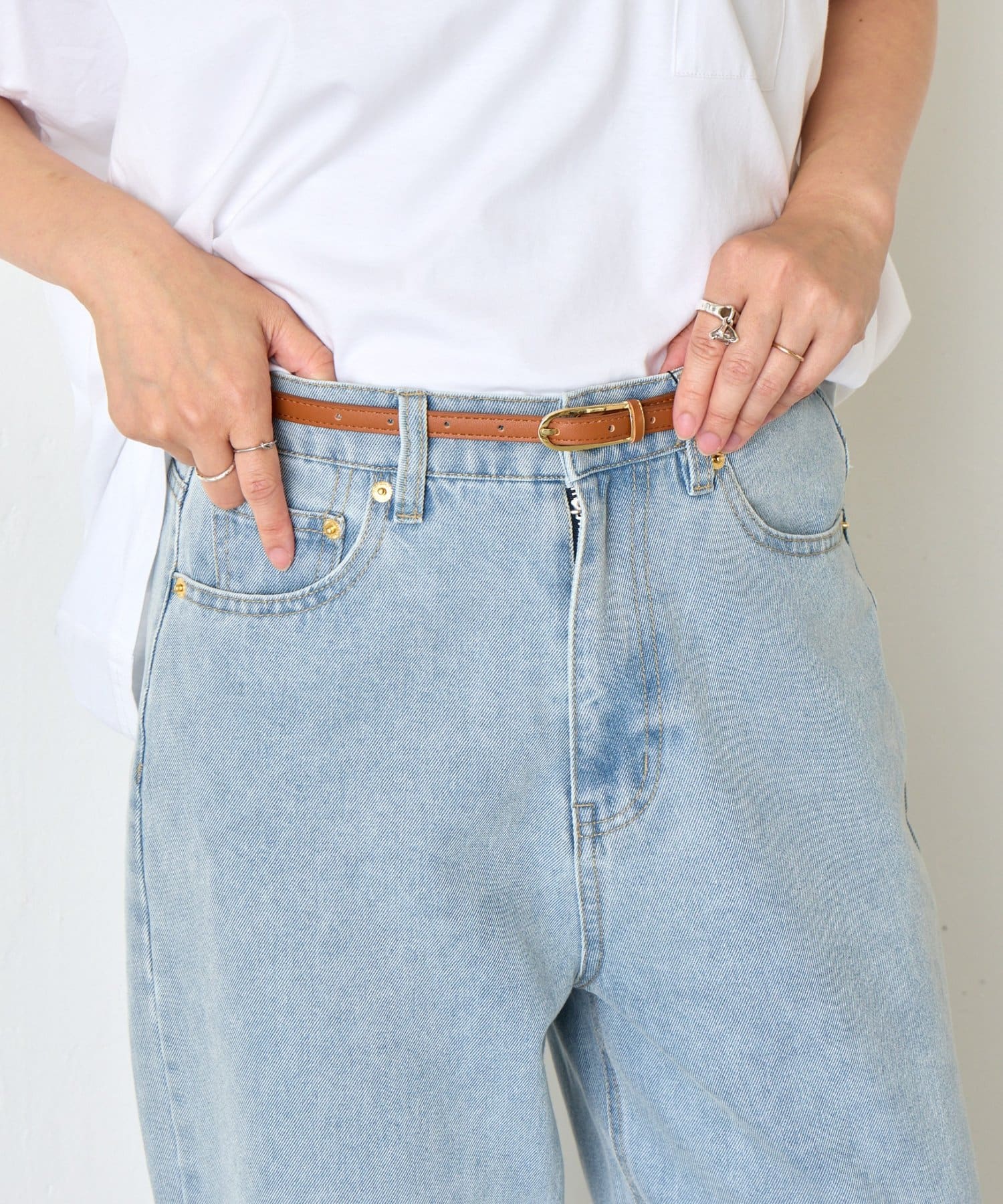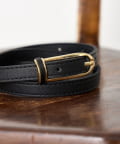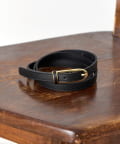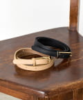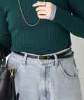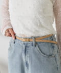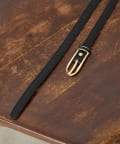 ・ゴールドのバックルが上品なアクセントになった華奢な印象を与える細ベルト。