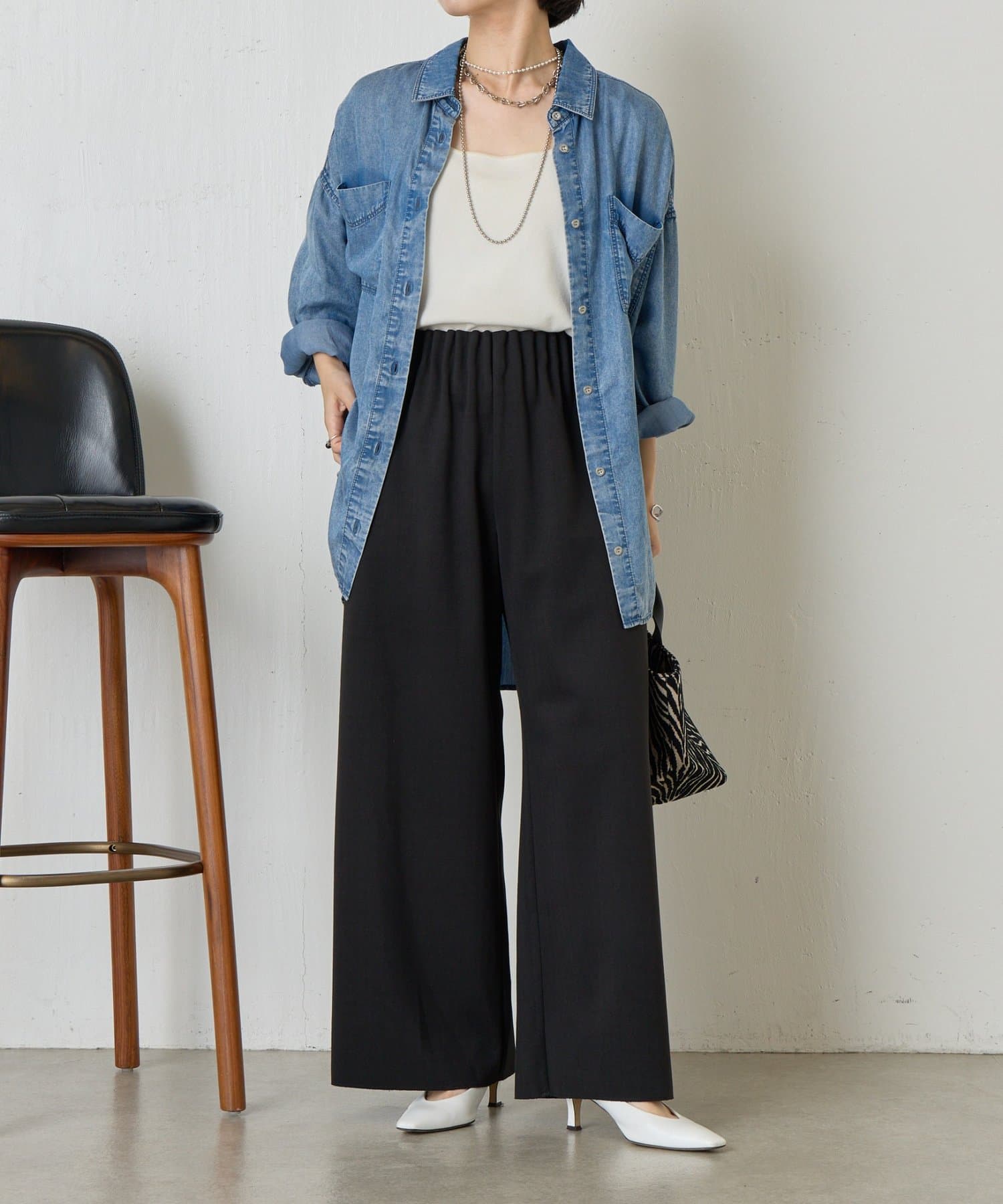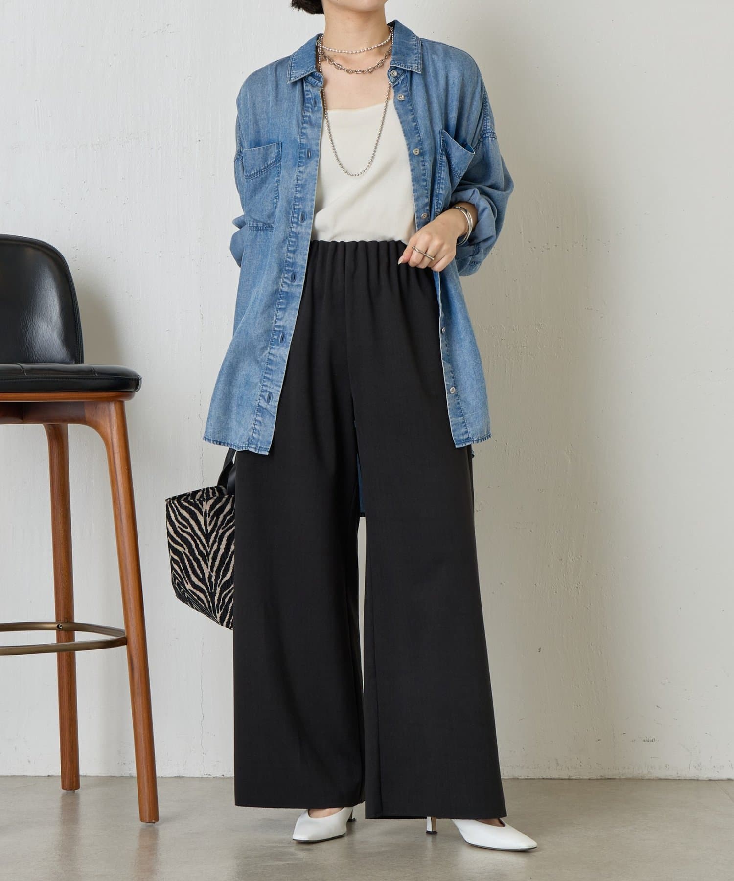 ・広がりすぎない程よいワイド感と腰高に見えるウエストデザインが美脚シルエットに◎