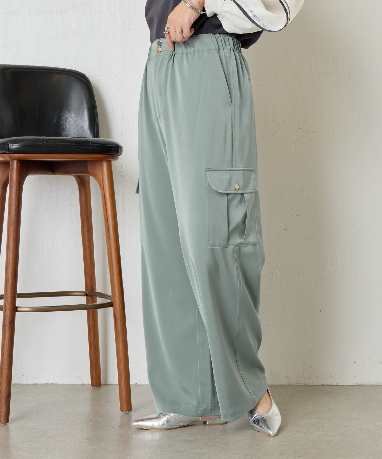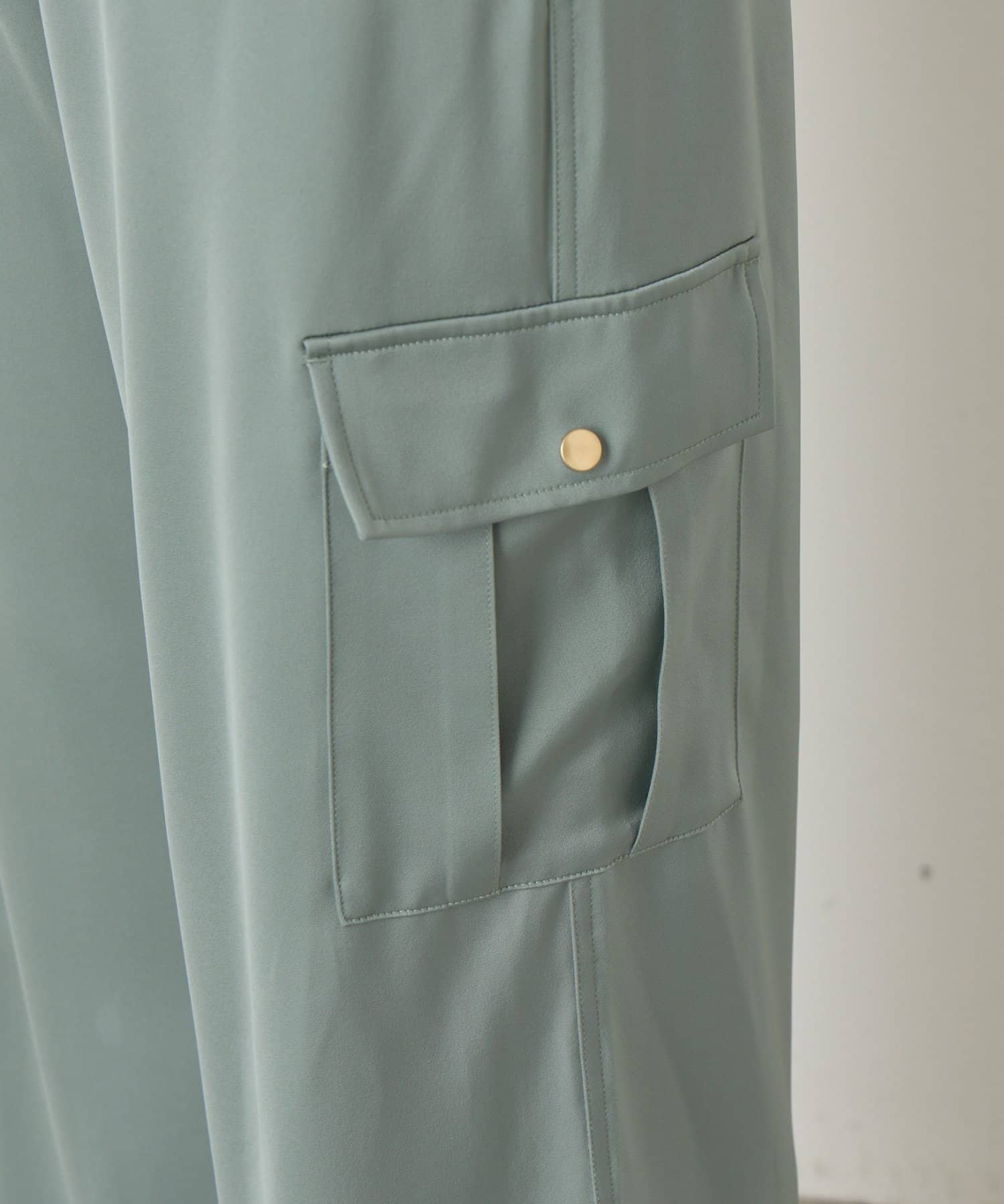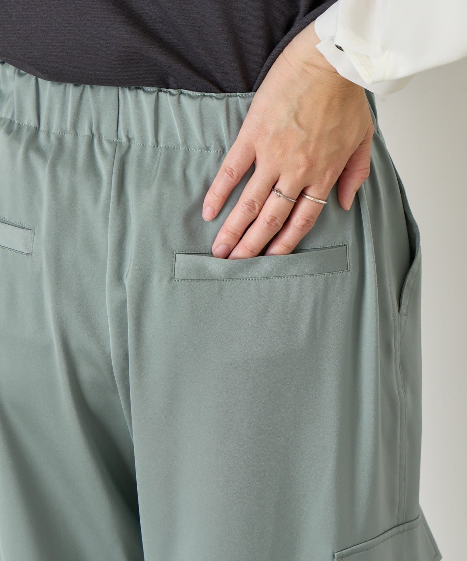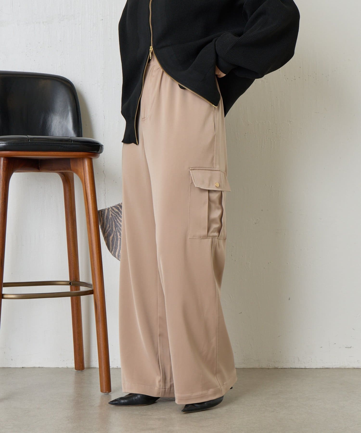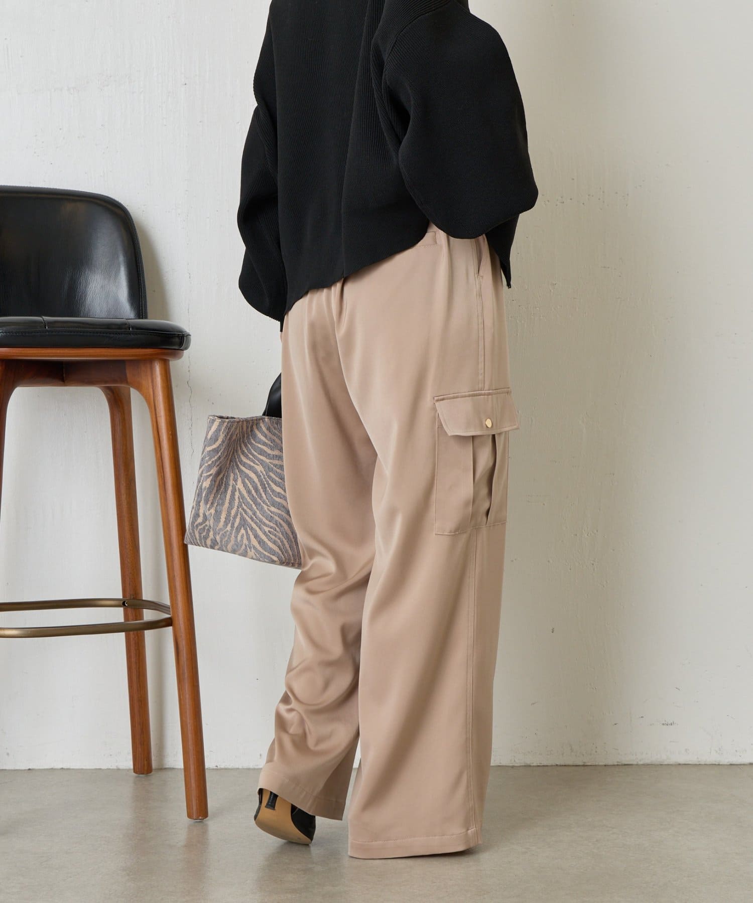・光沢感のあるサテン生地で仕立てた美シルエットのカーゴパンツ。