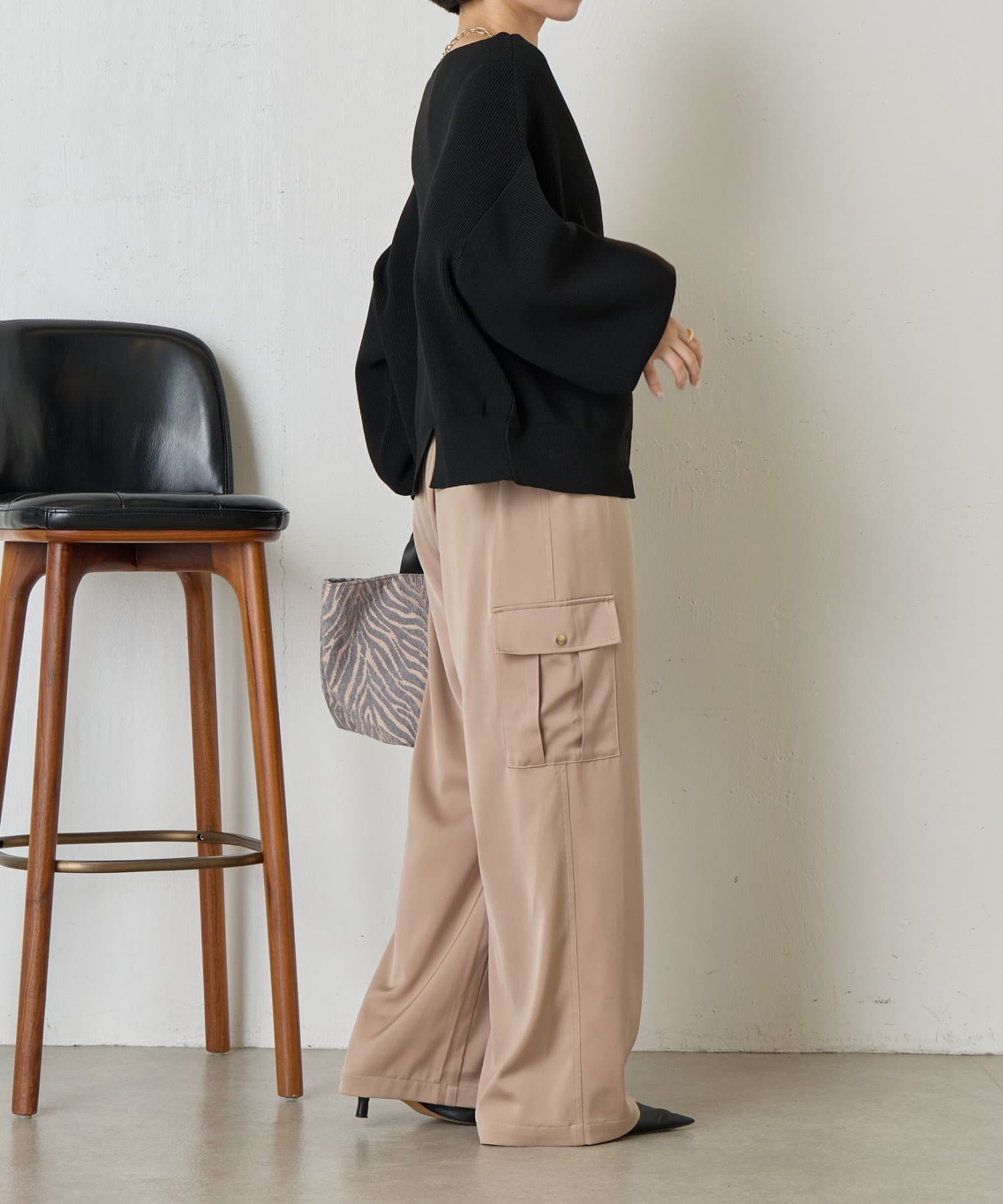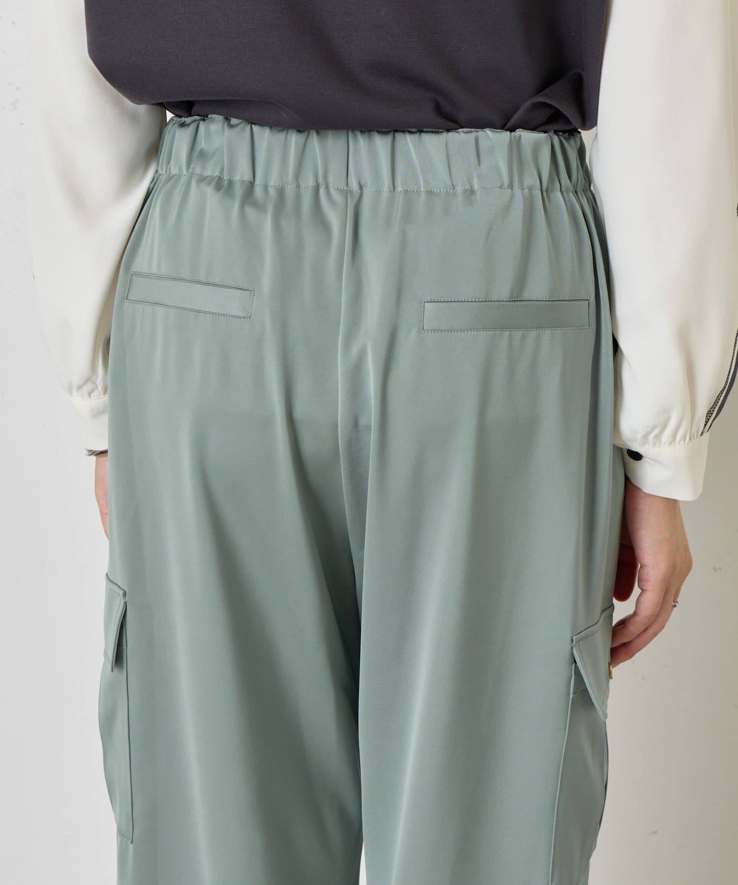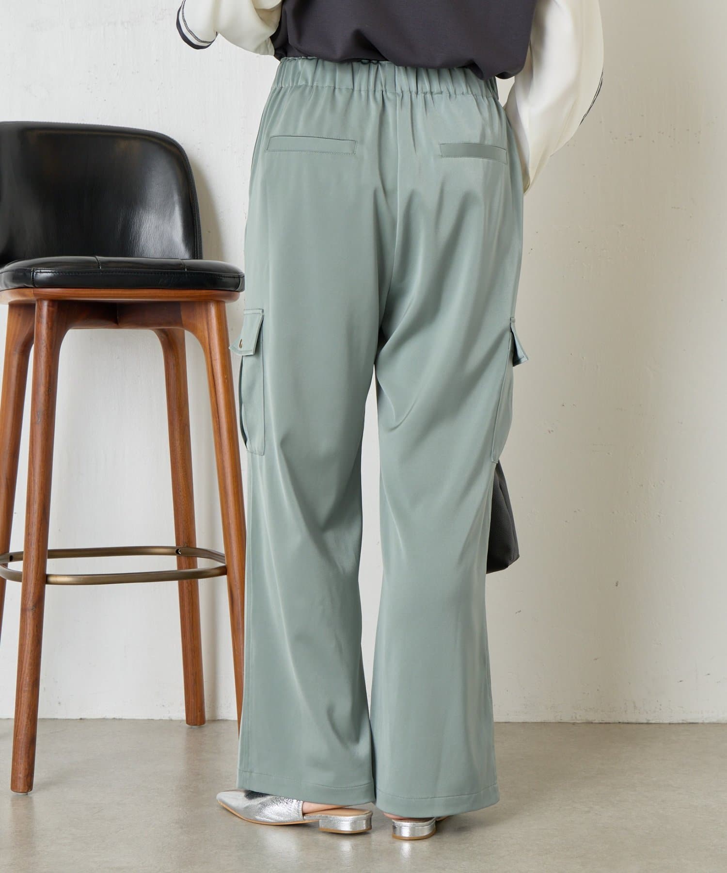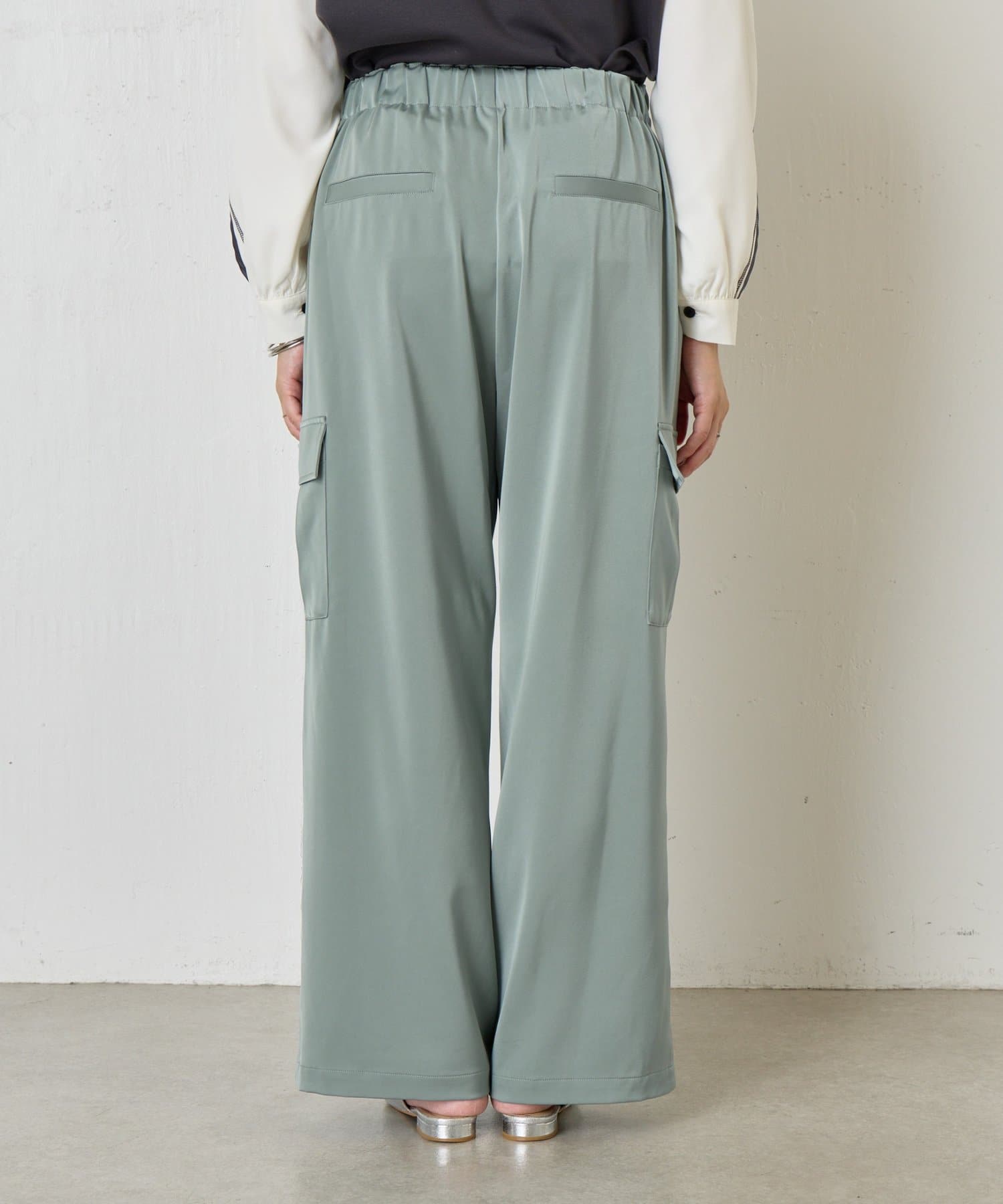 ・光沢感のあるサテン生地で仕立てた美シルエットのカーゴパンツ。