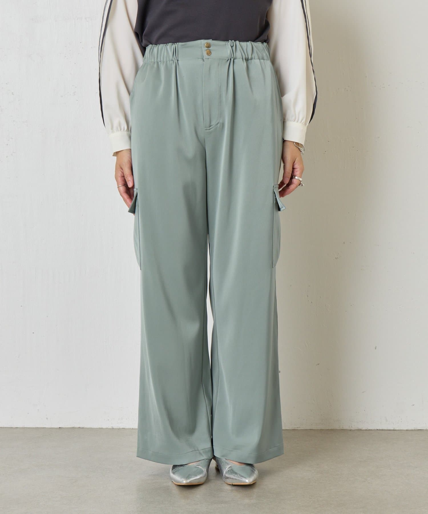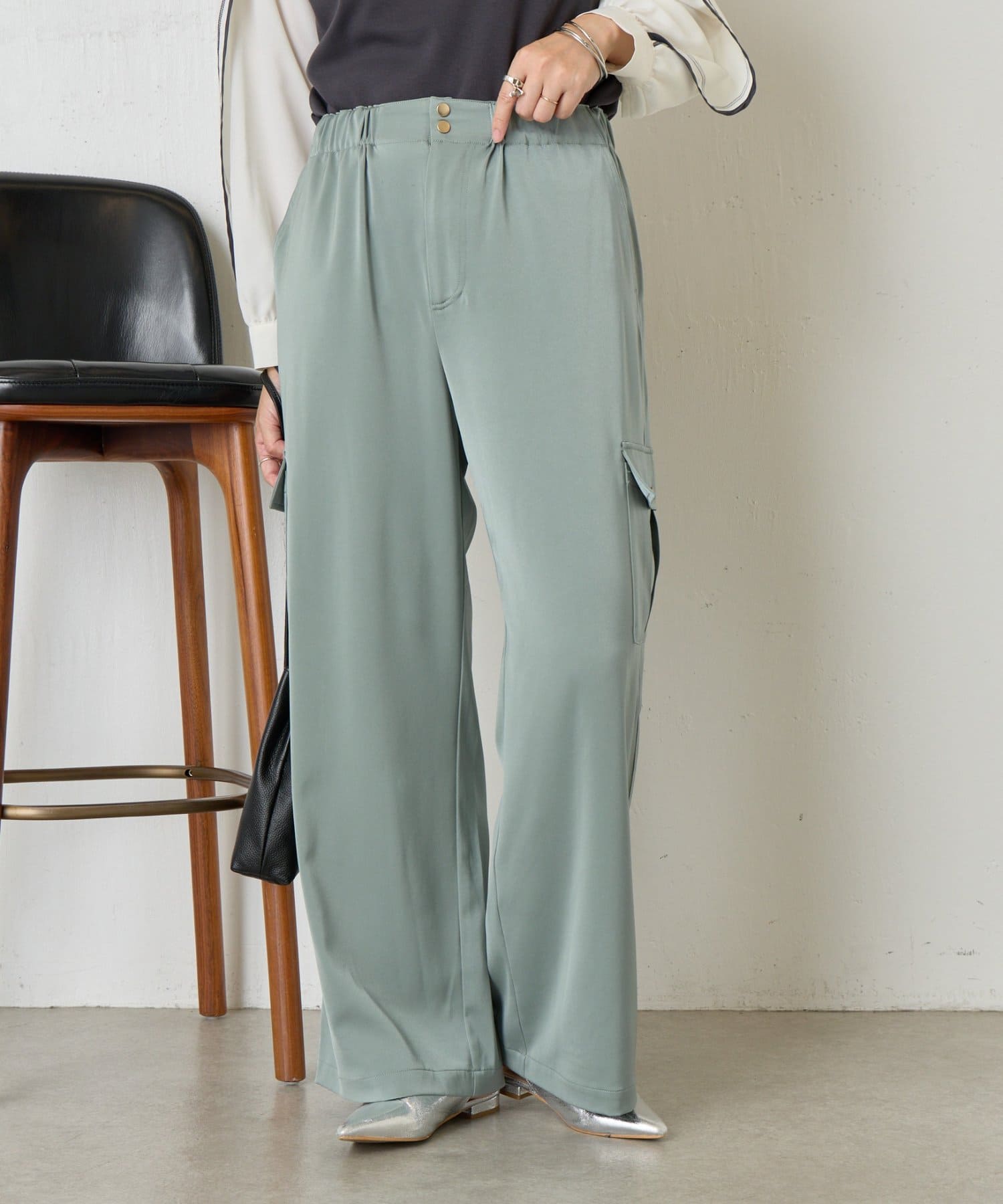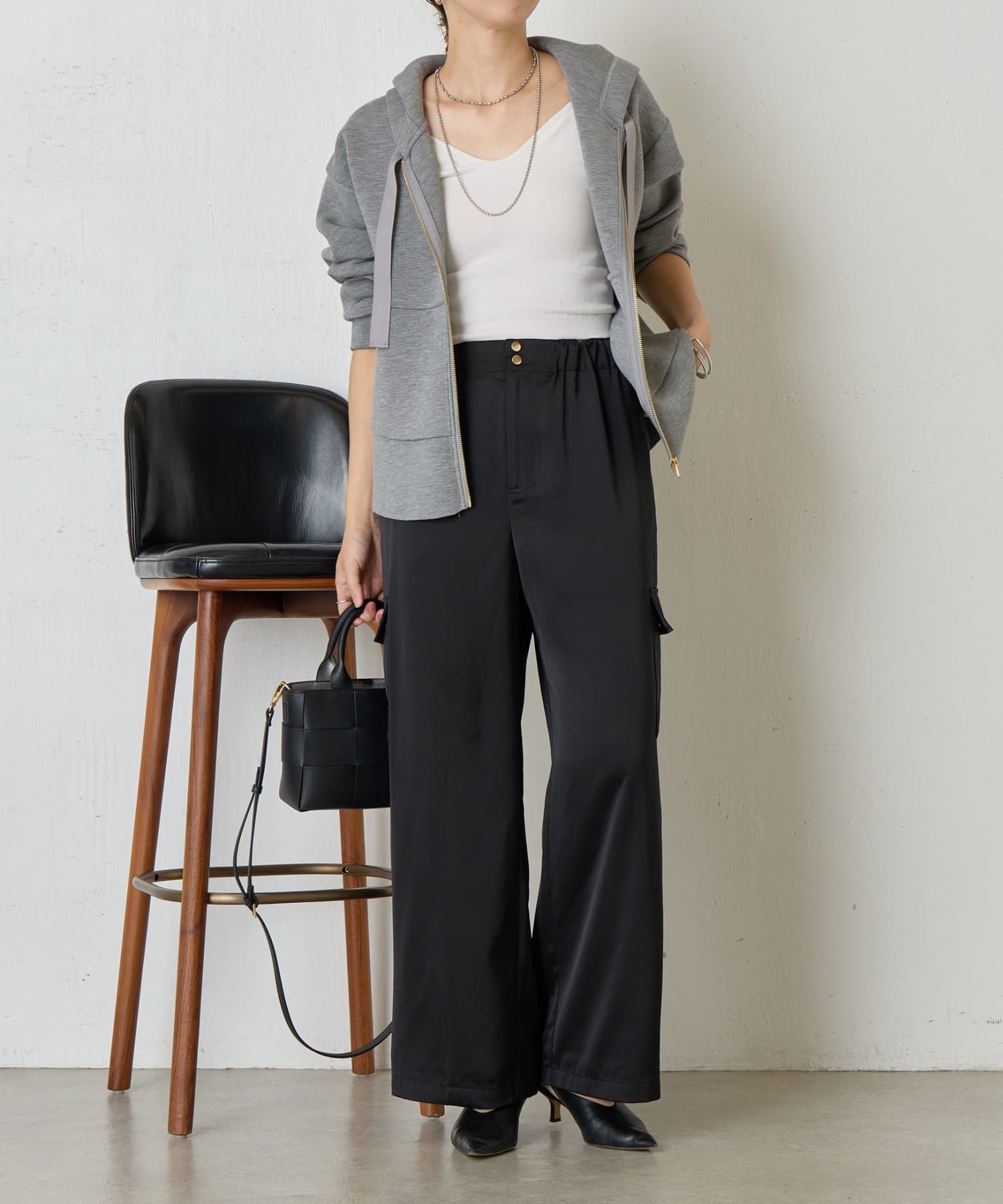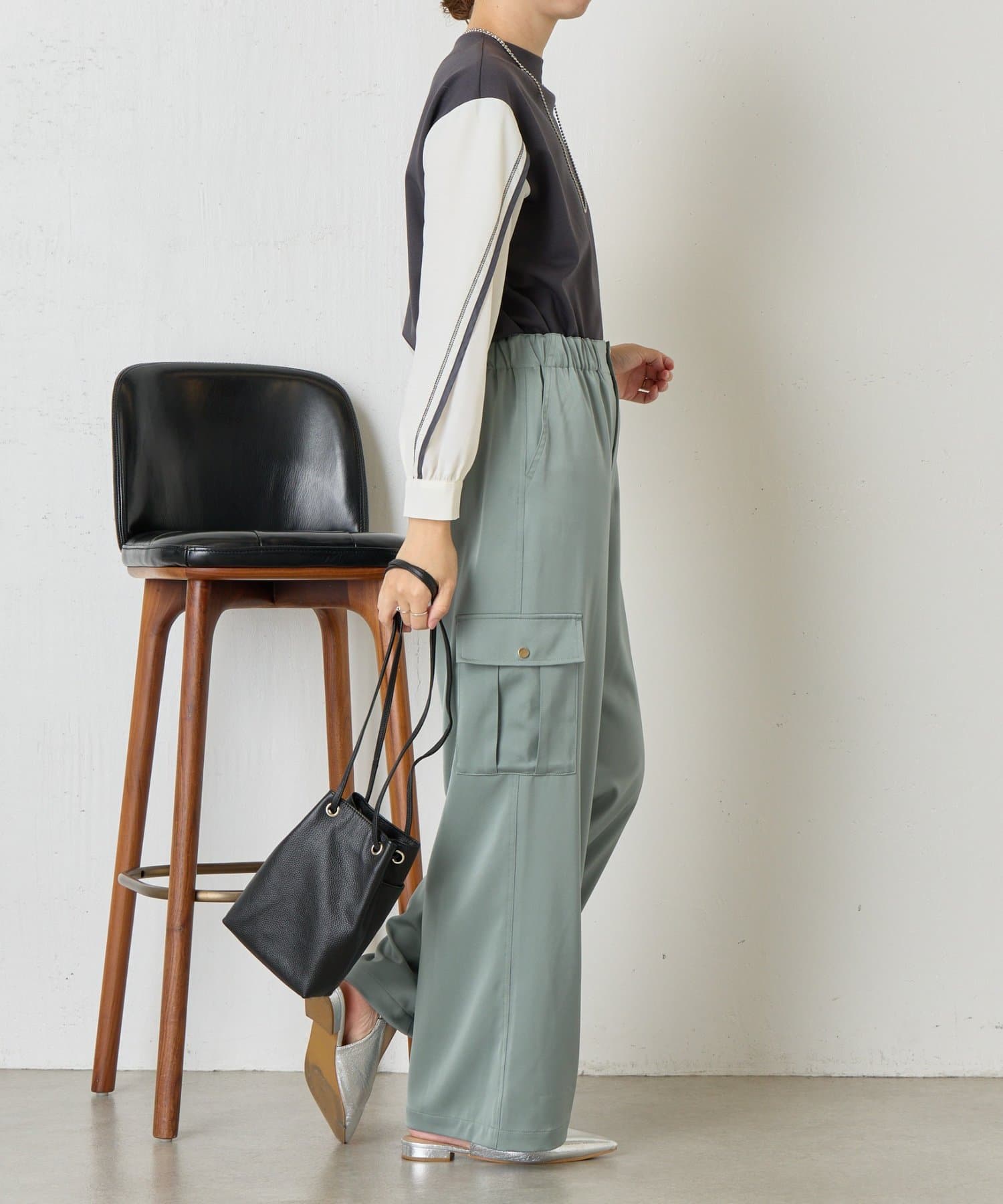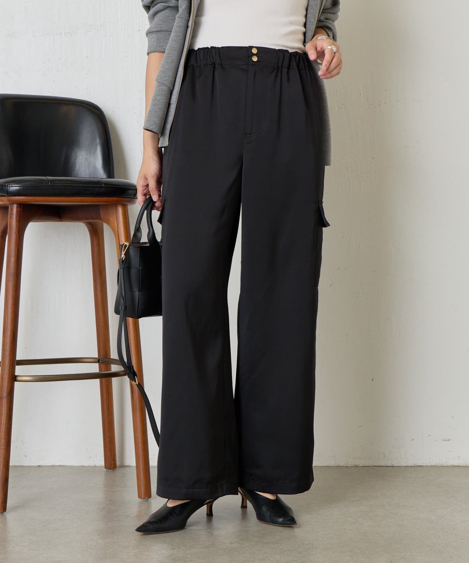 ・光沢感のあるサテン生地で仕立てた美シルエットのカーゴパンツ。
