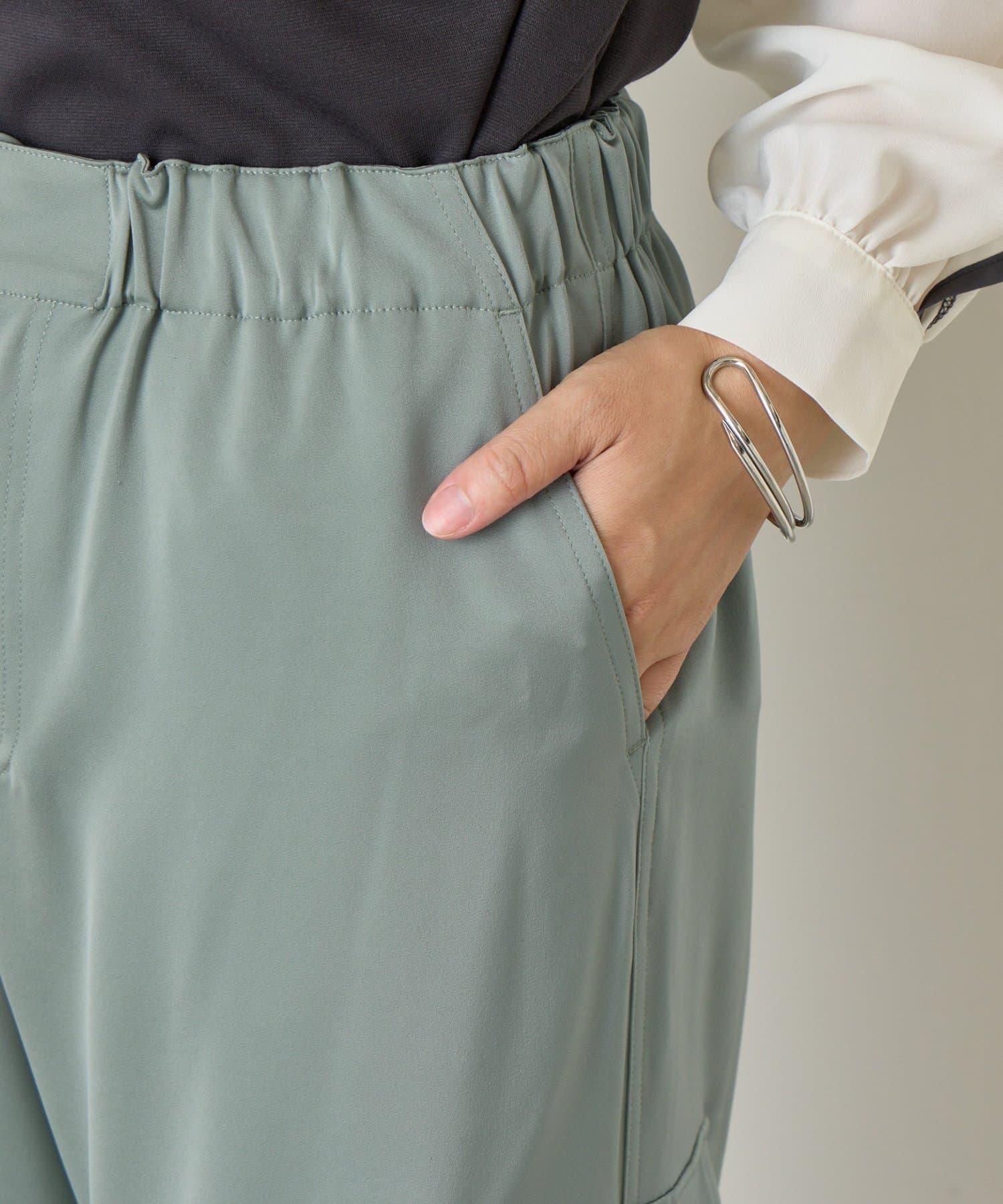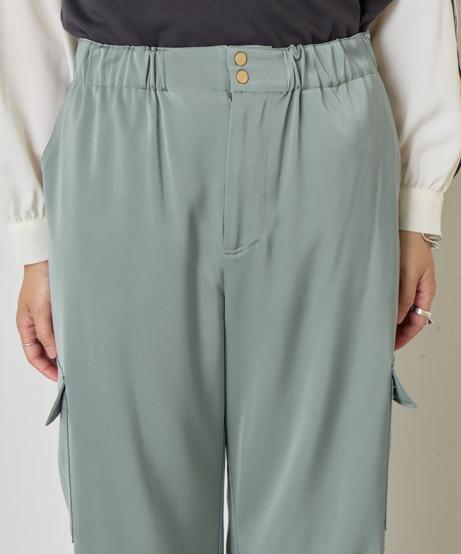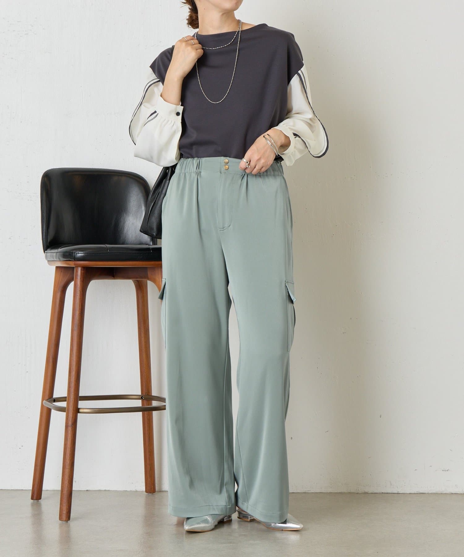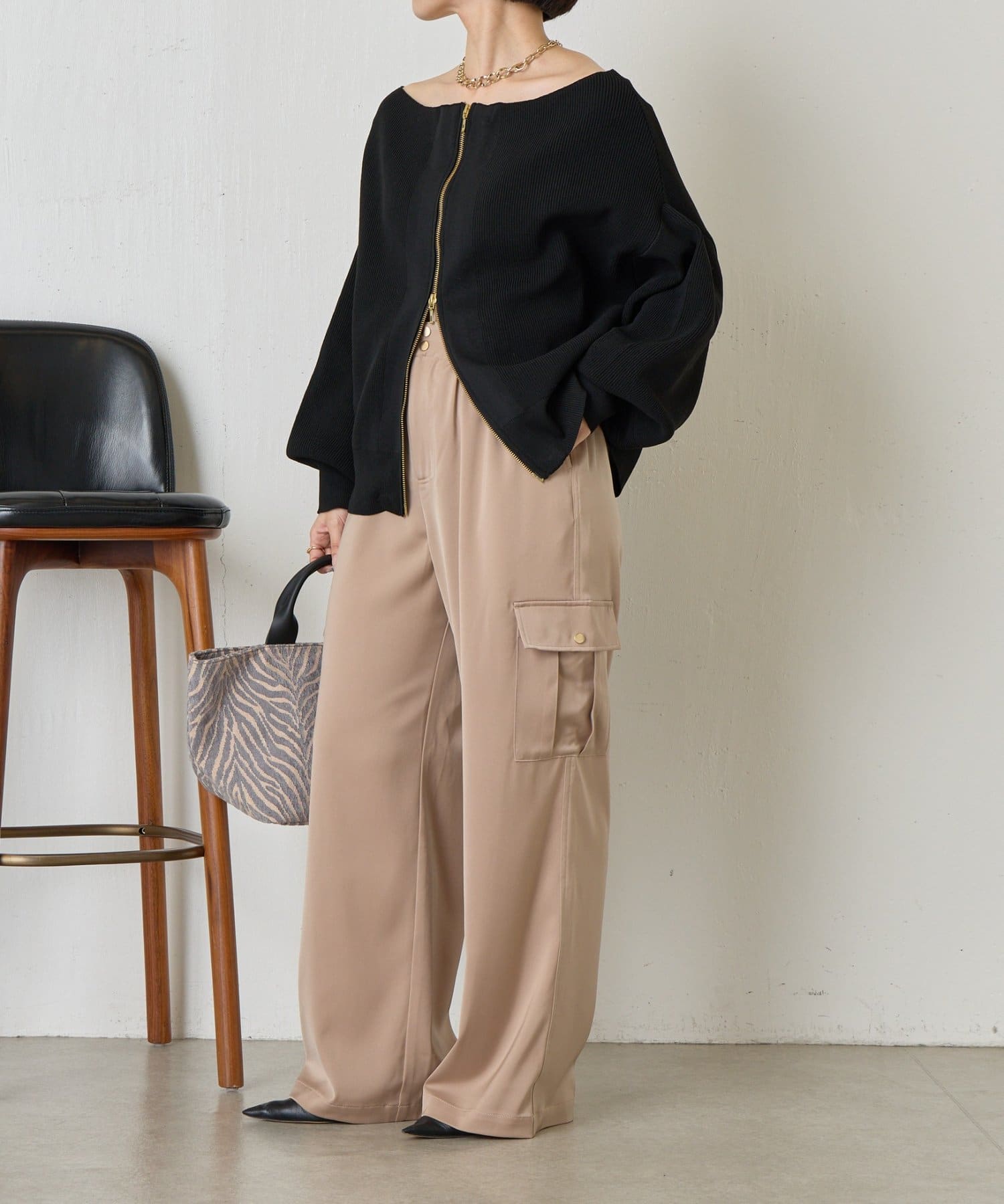 ・光沢感のあるサテン生地で仕立てた美シルエットのカーゴパンツ。