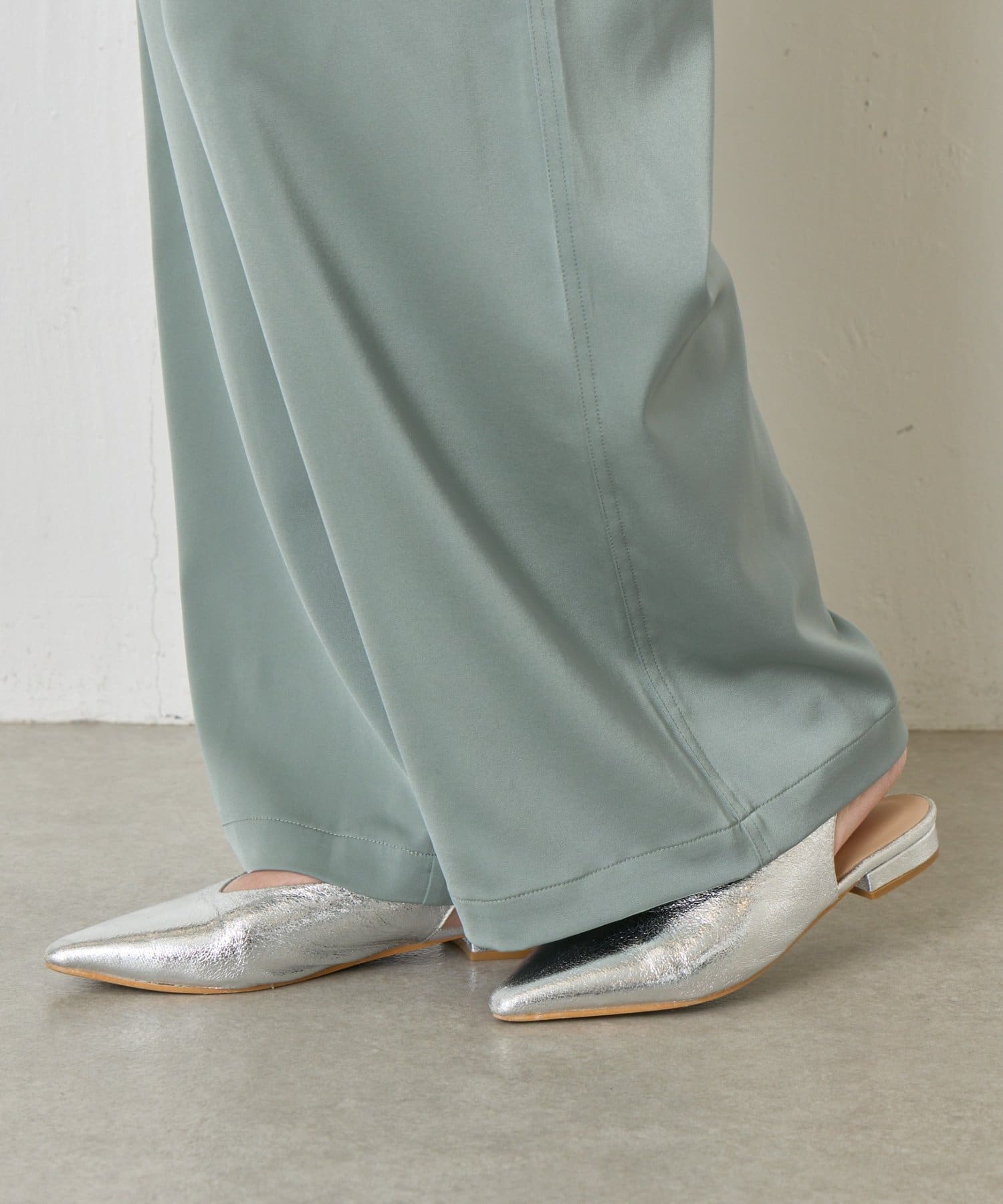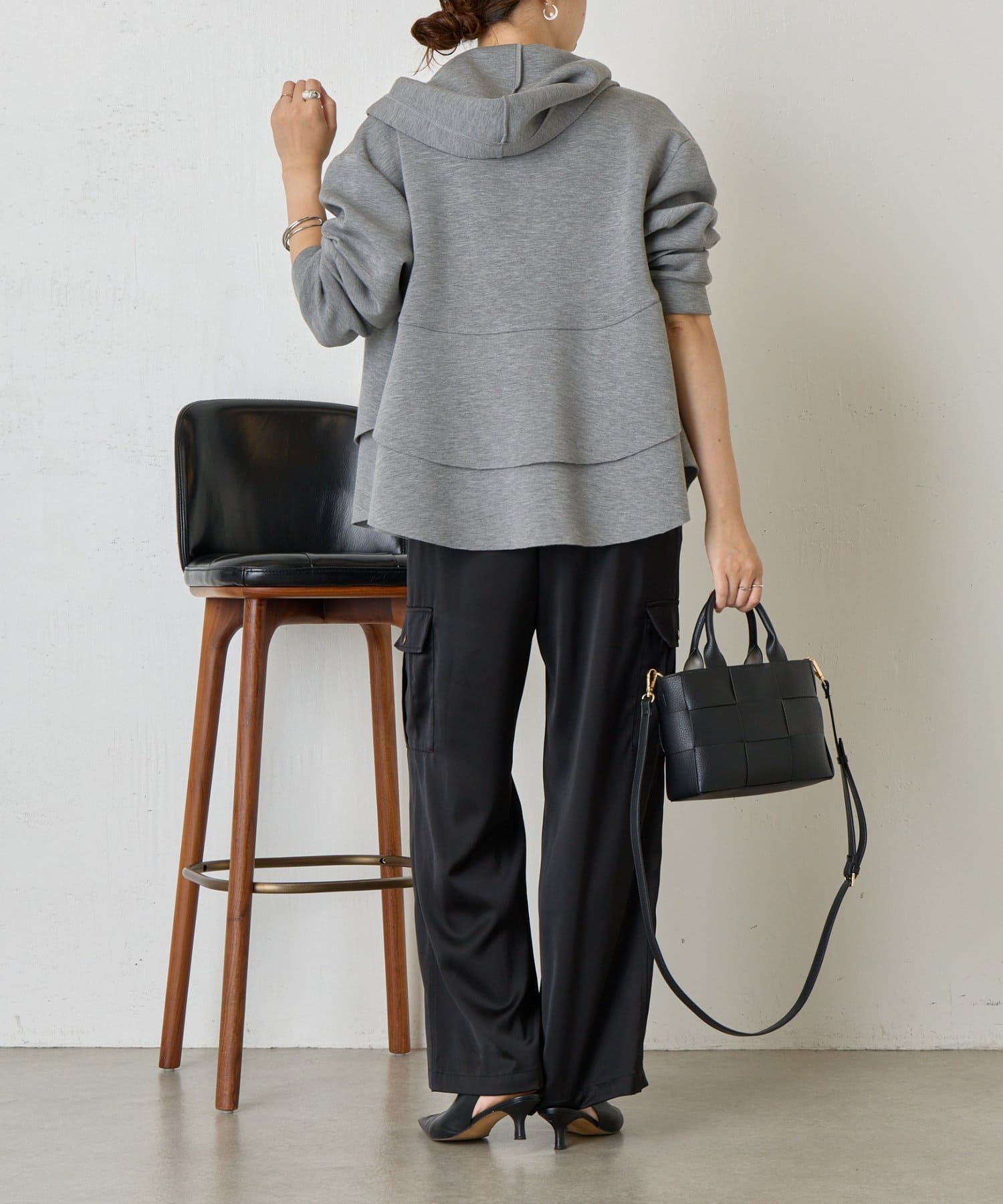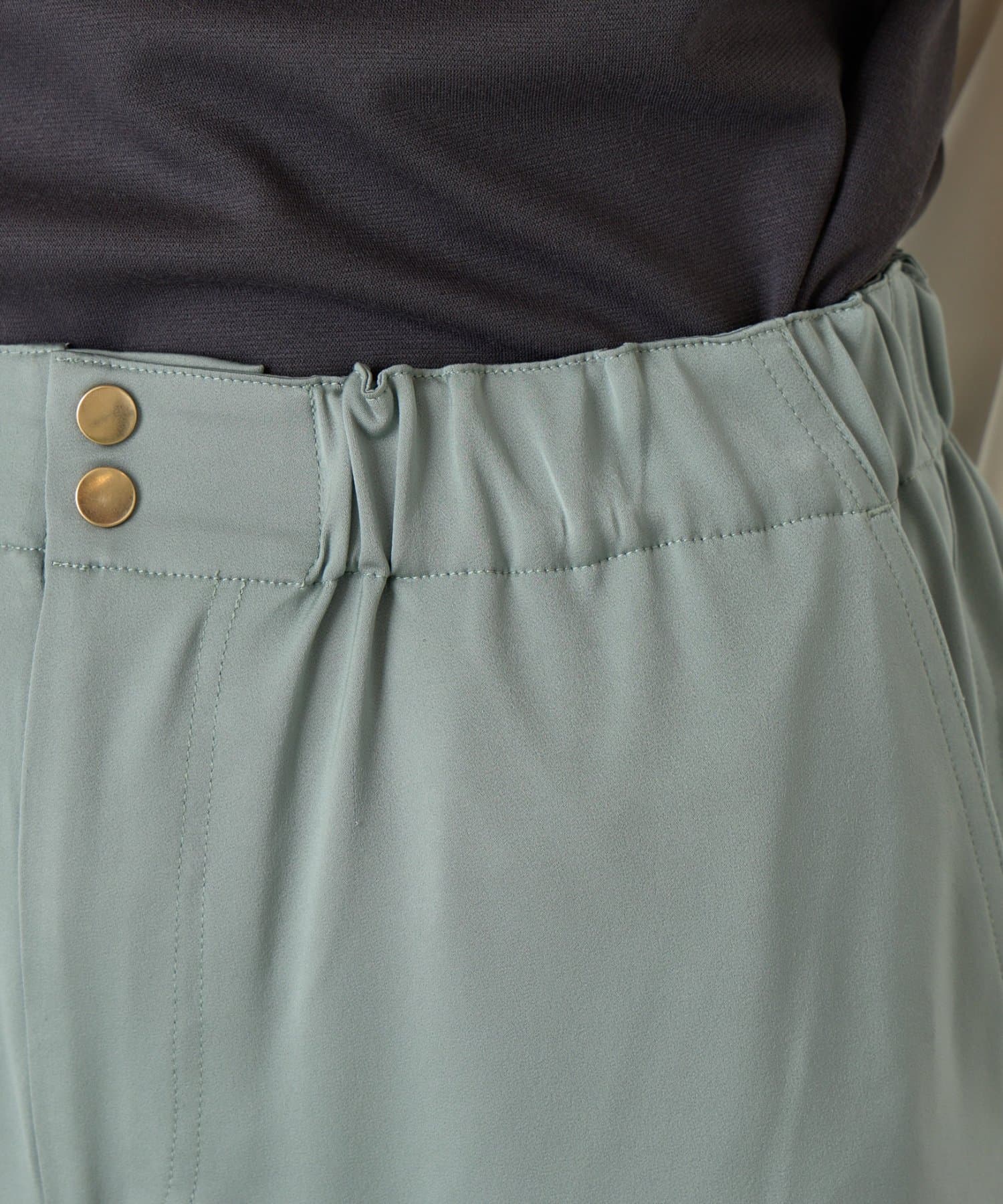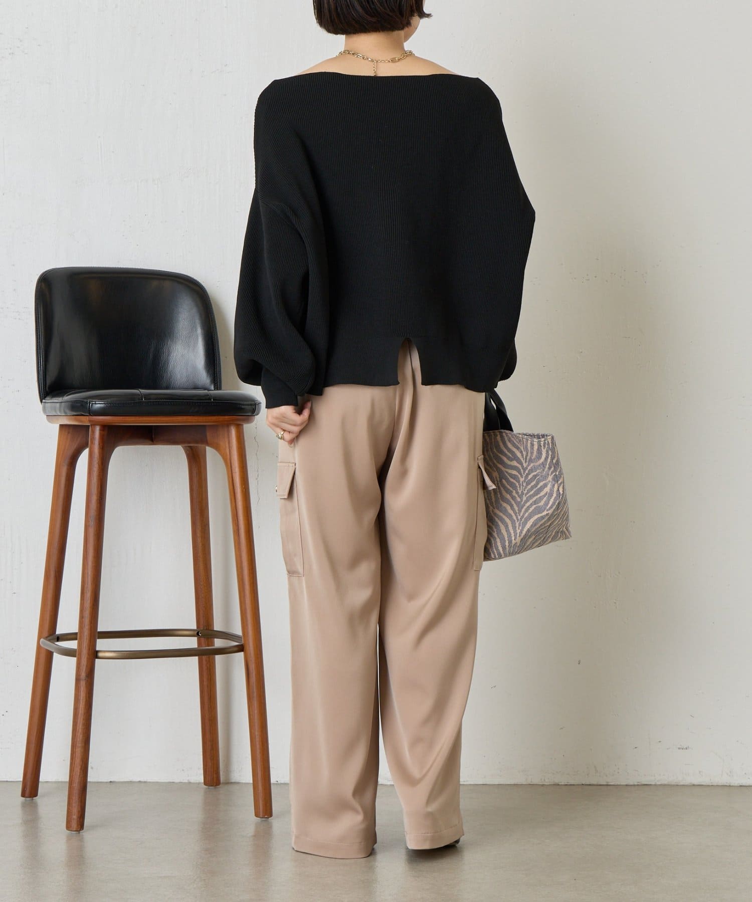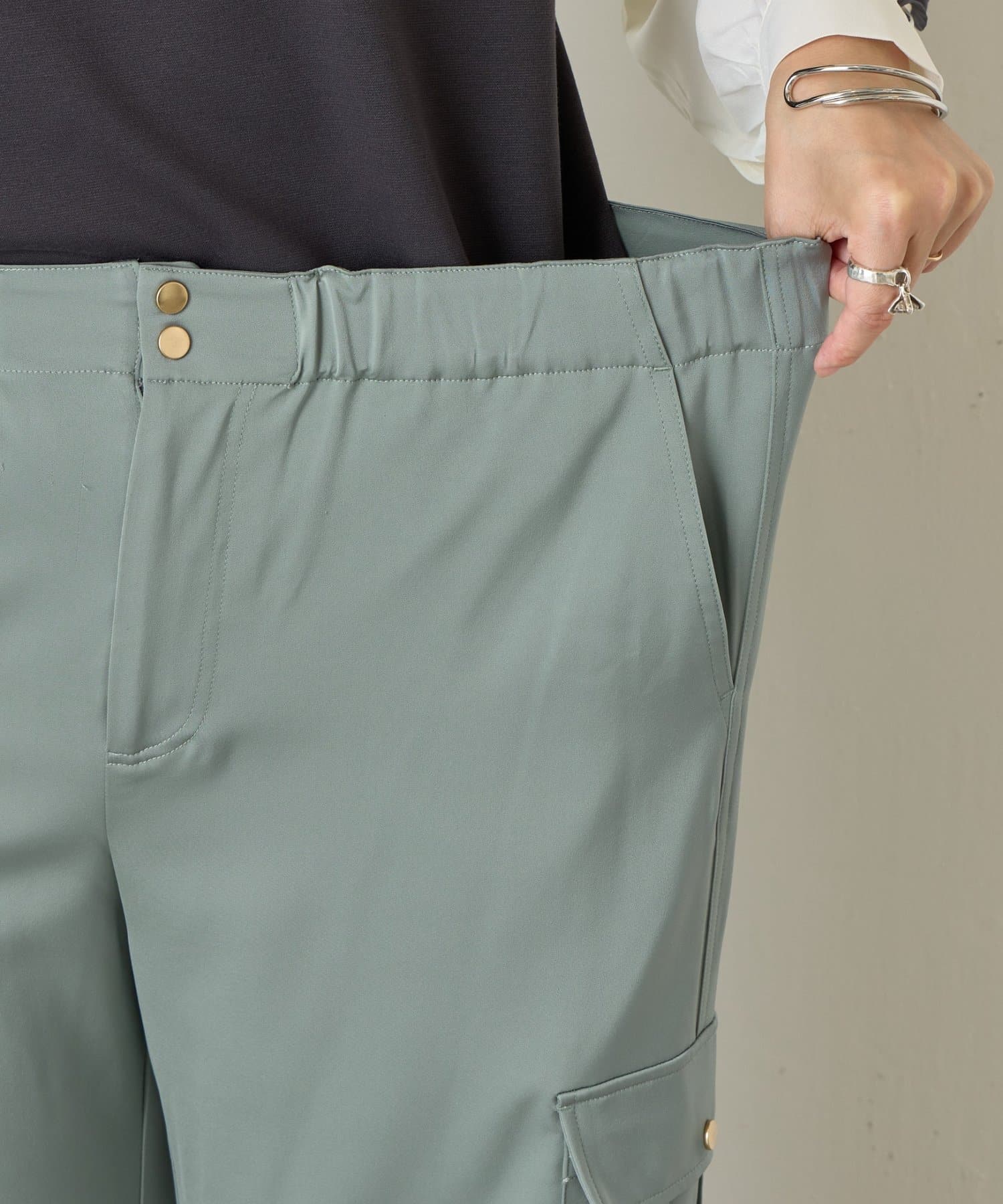 ・光沢感のあるサテン生地で仕立てた美シルエットのカーゴパンツ。