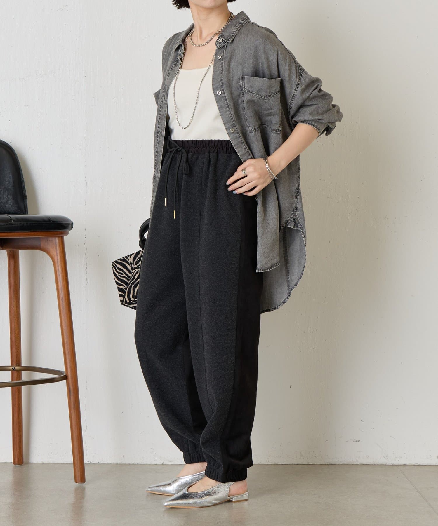 ・ウエストと裾部分はゴム仕様でリラクシーながら、足元をすっきりと見せてくれます。