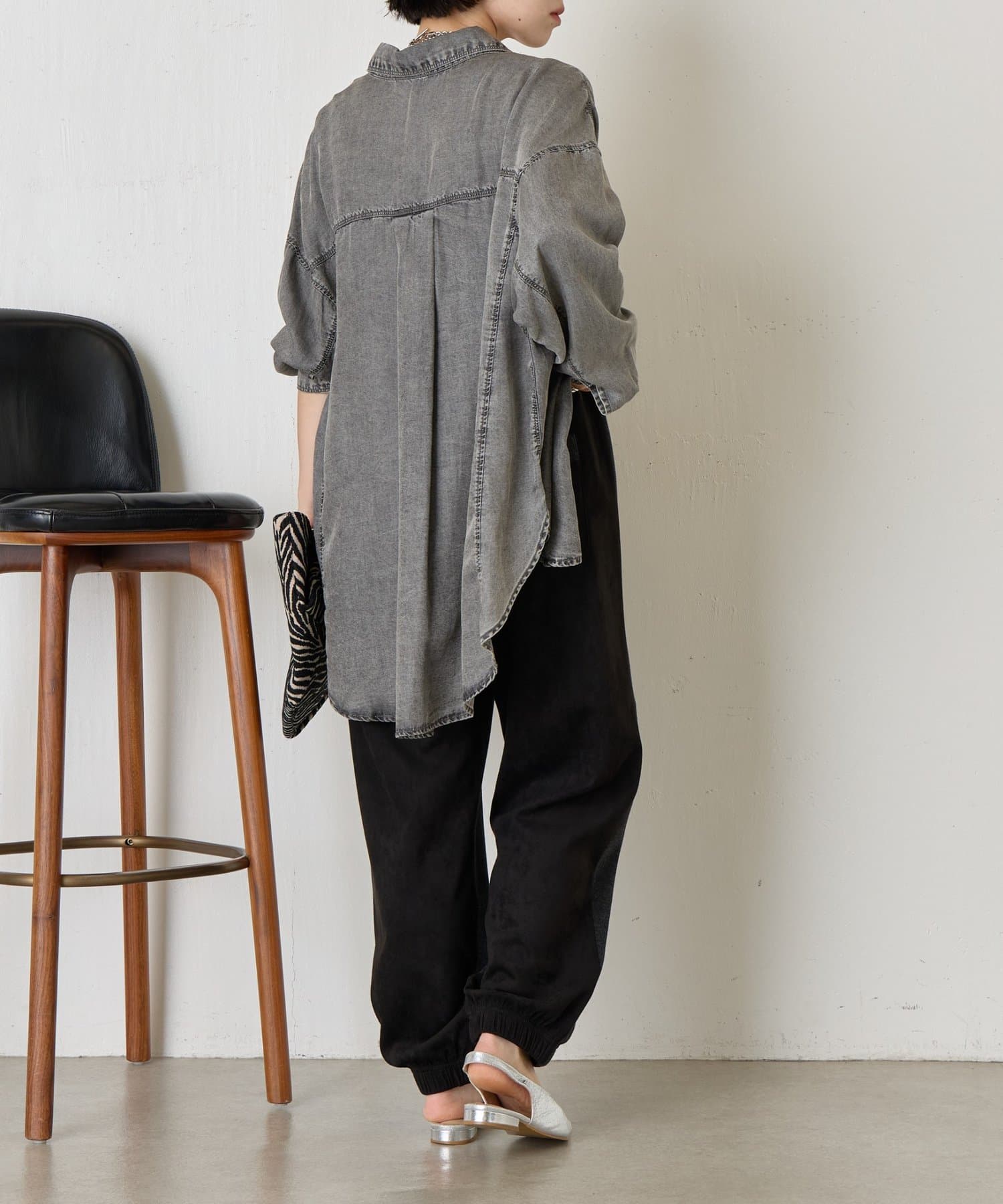 上品さとリラックス感を兼ね備えた、表と裏で異なる表情を楽しめる切替パンツ。