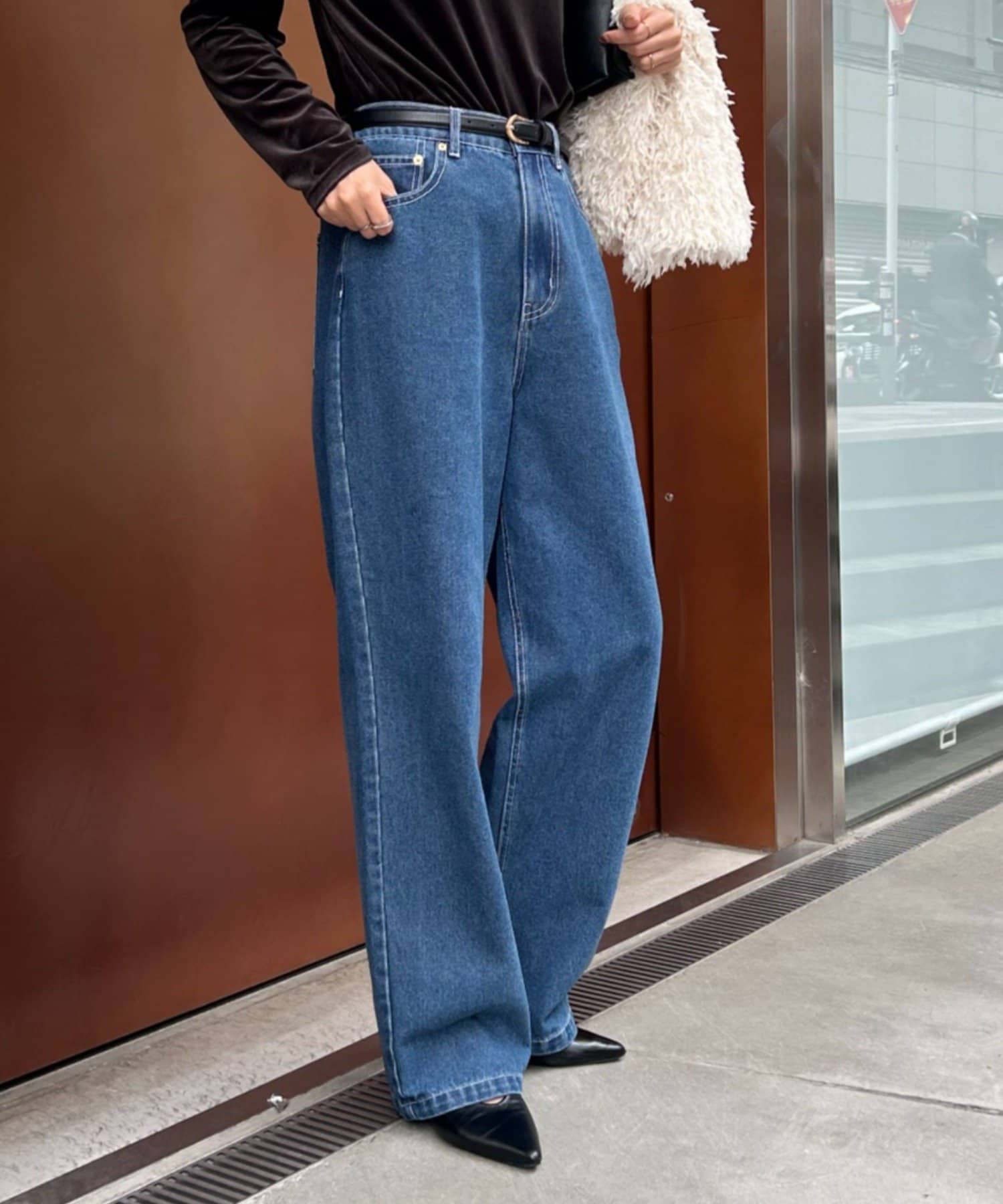 ・5サイズ展開でどんな方にもはまるベーシックで使いやすいストレートデニム。