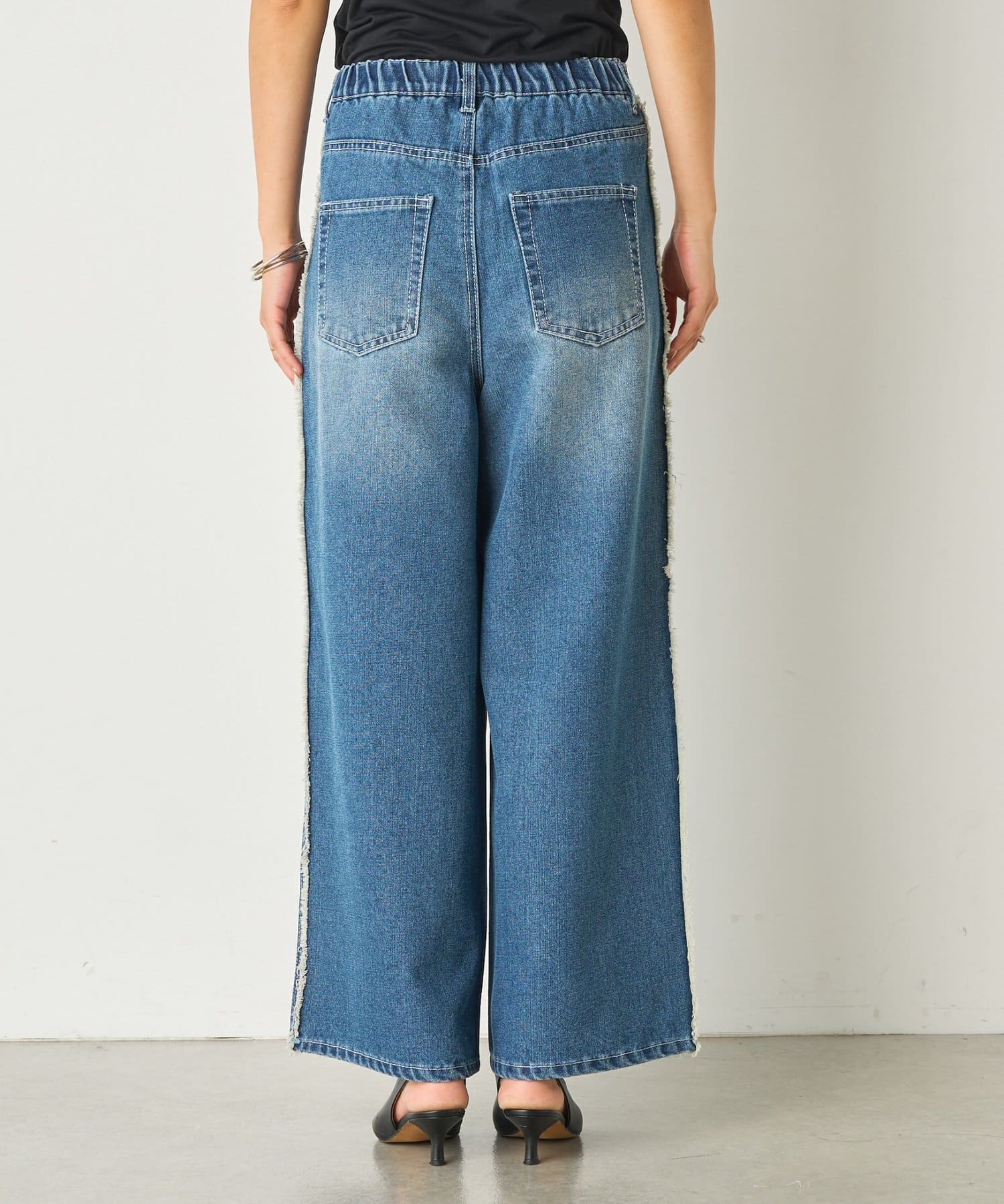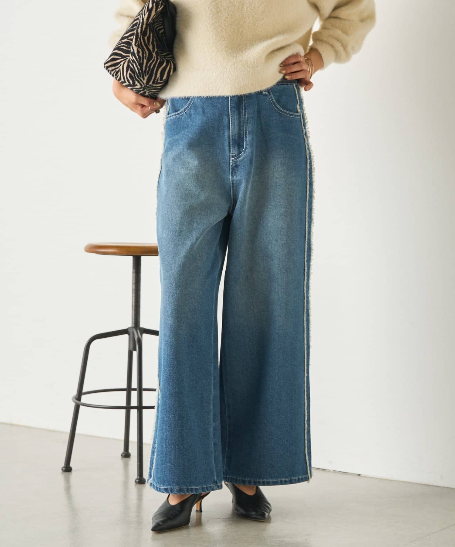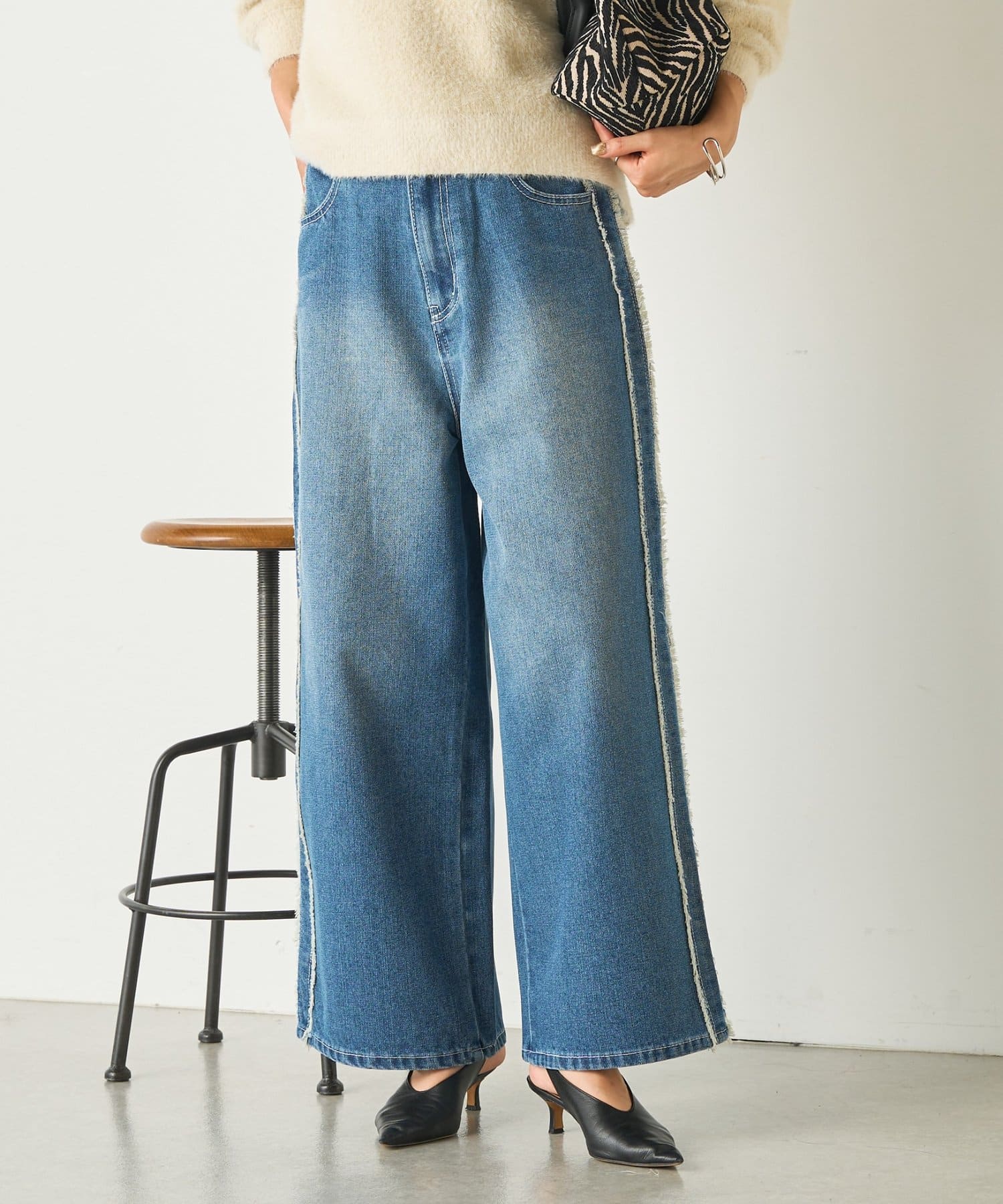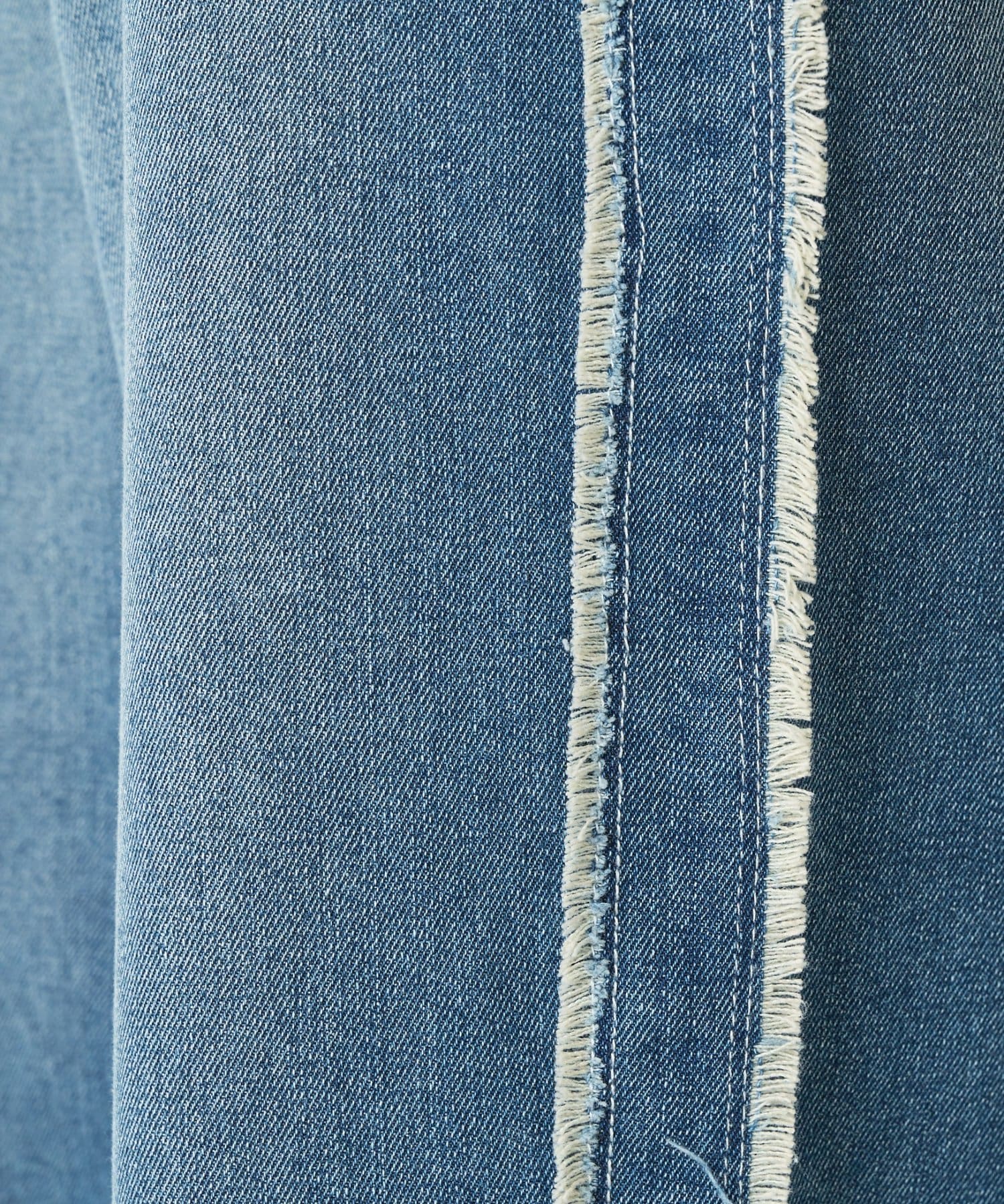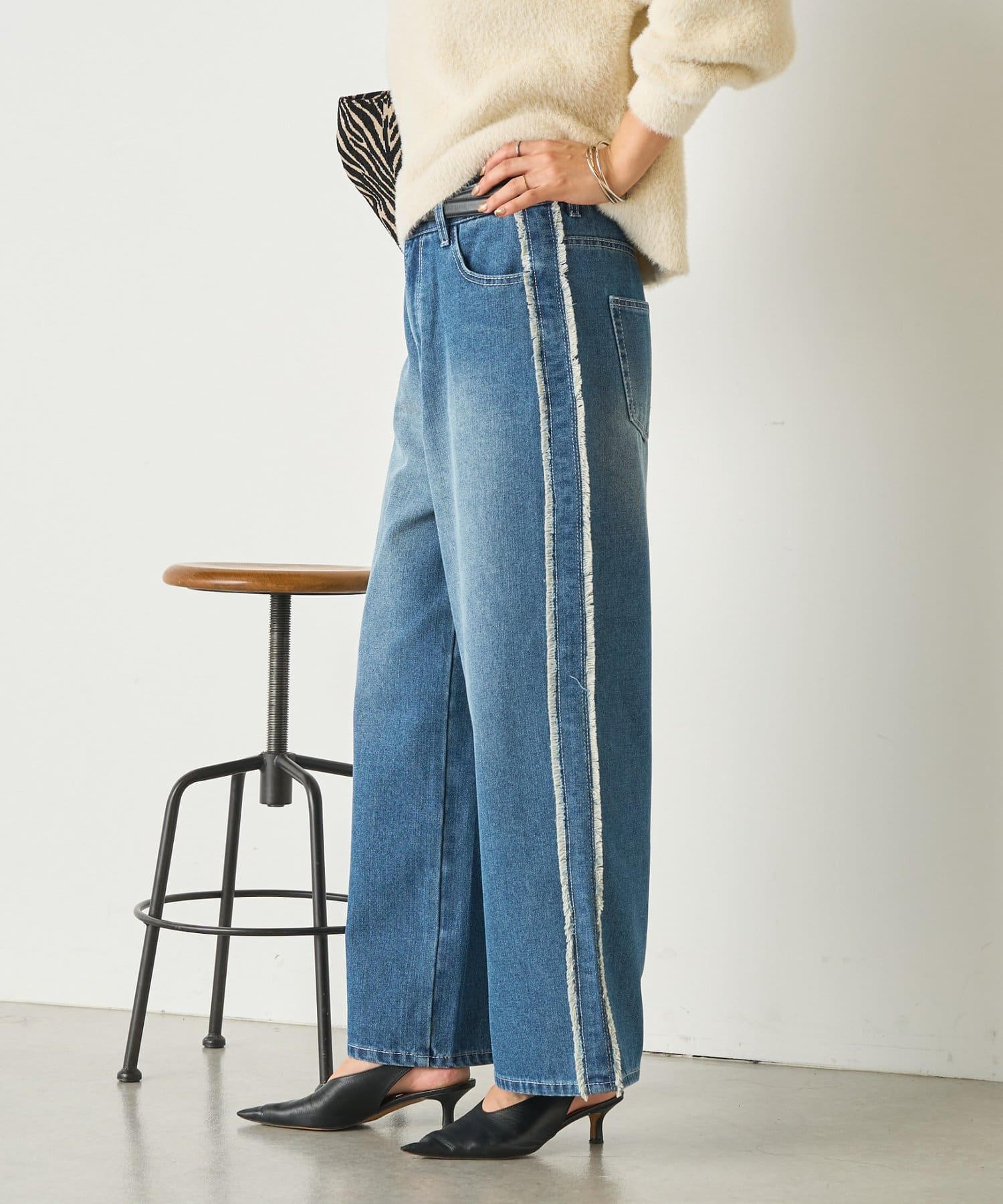 ・サイドにカジュアルなフリンジラインを施した美脚シルエットデニム。