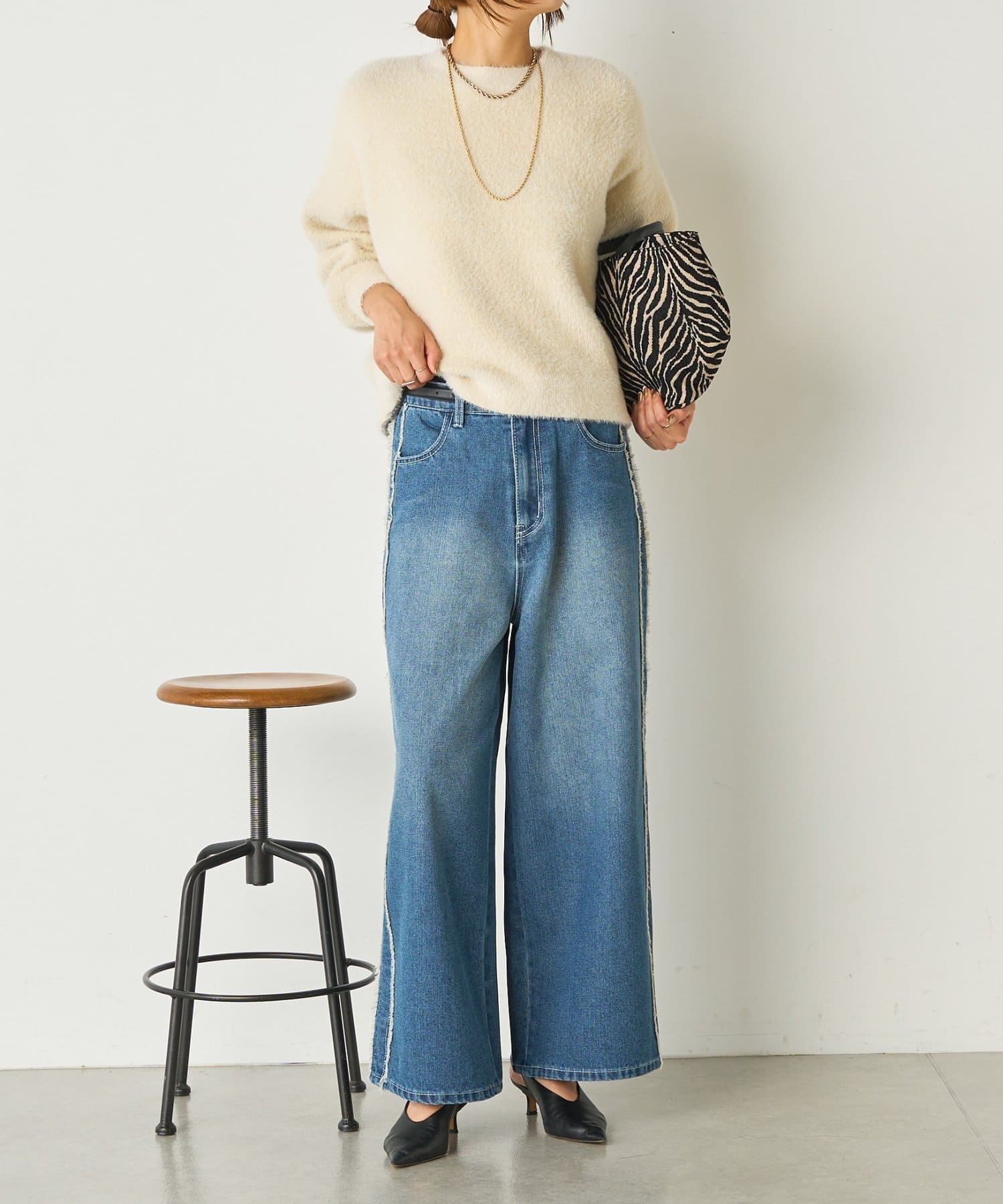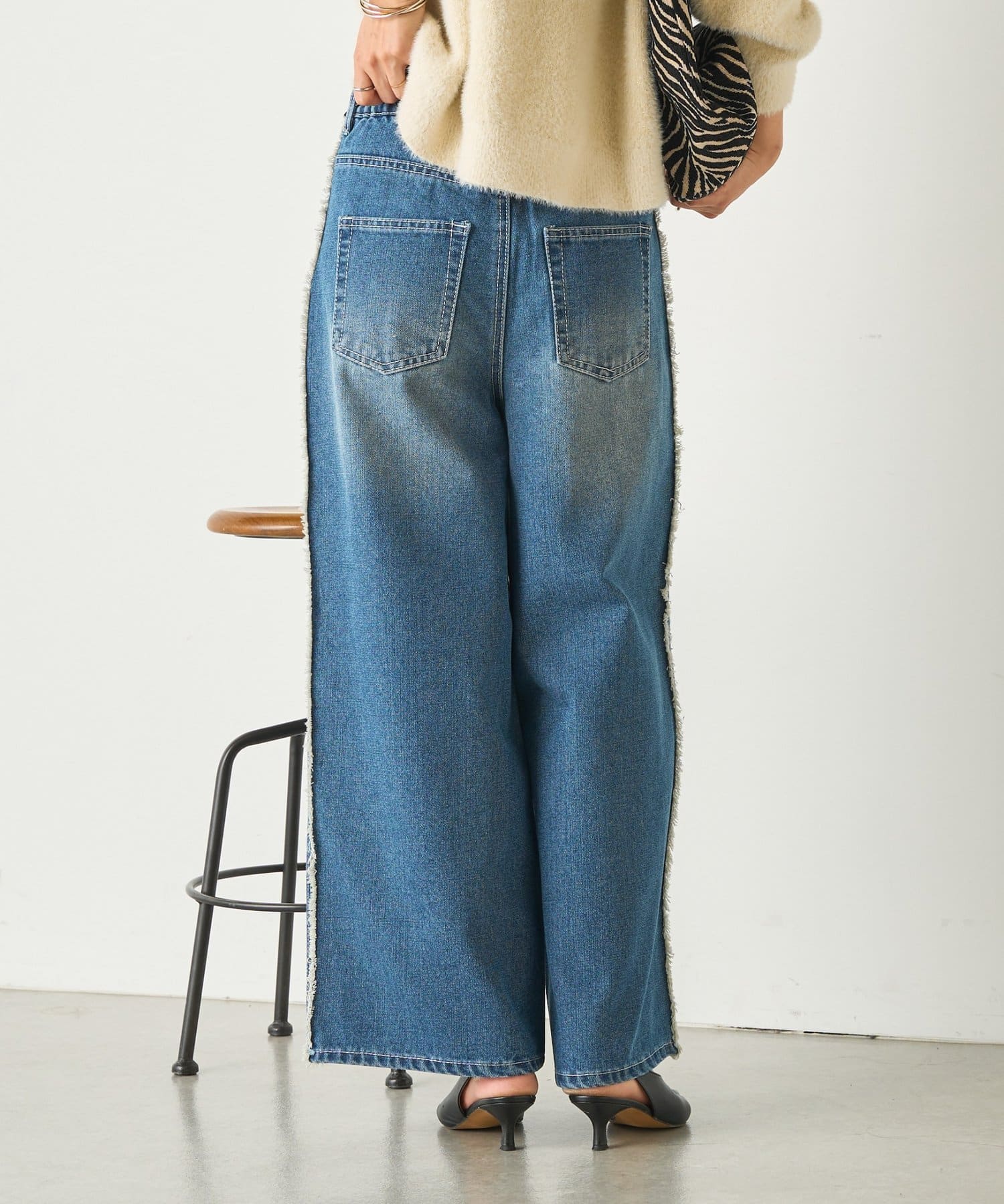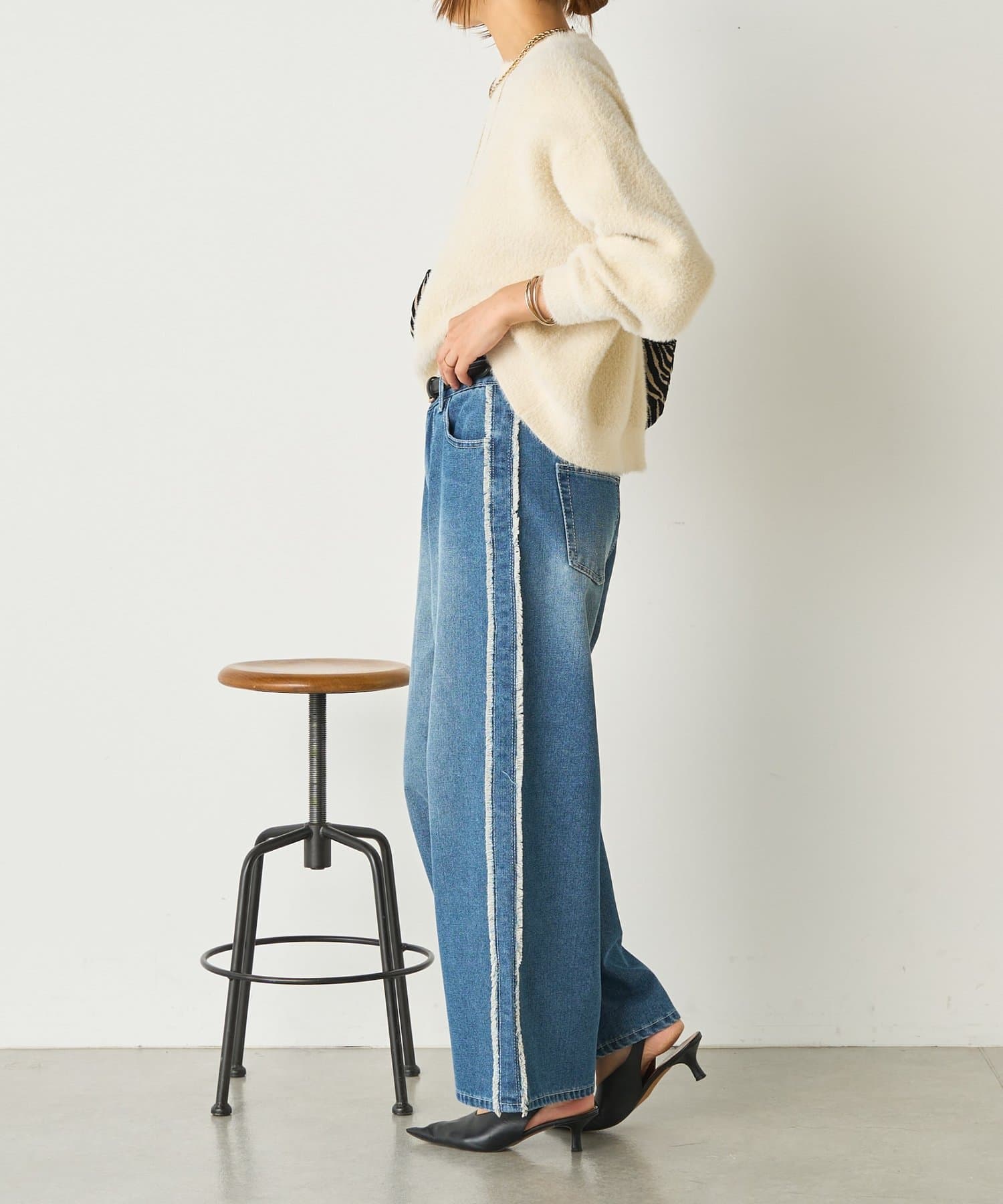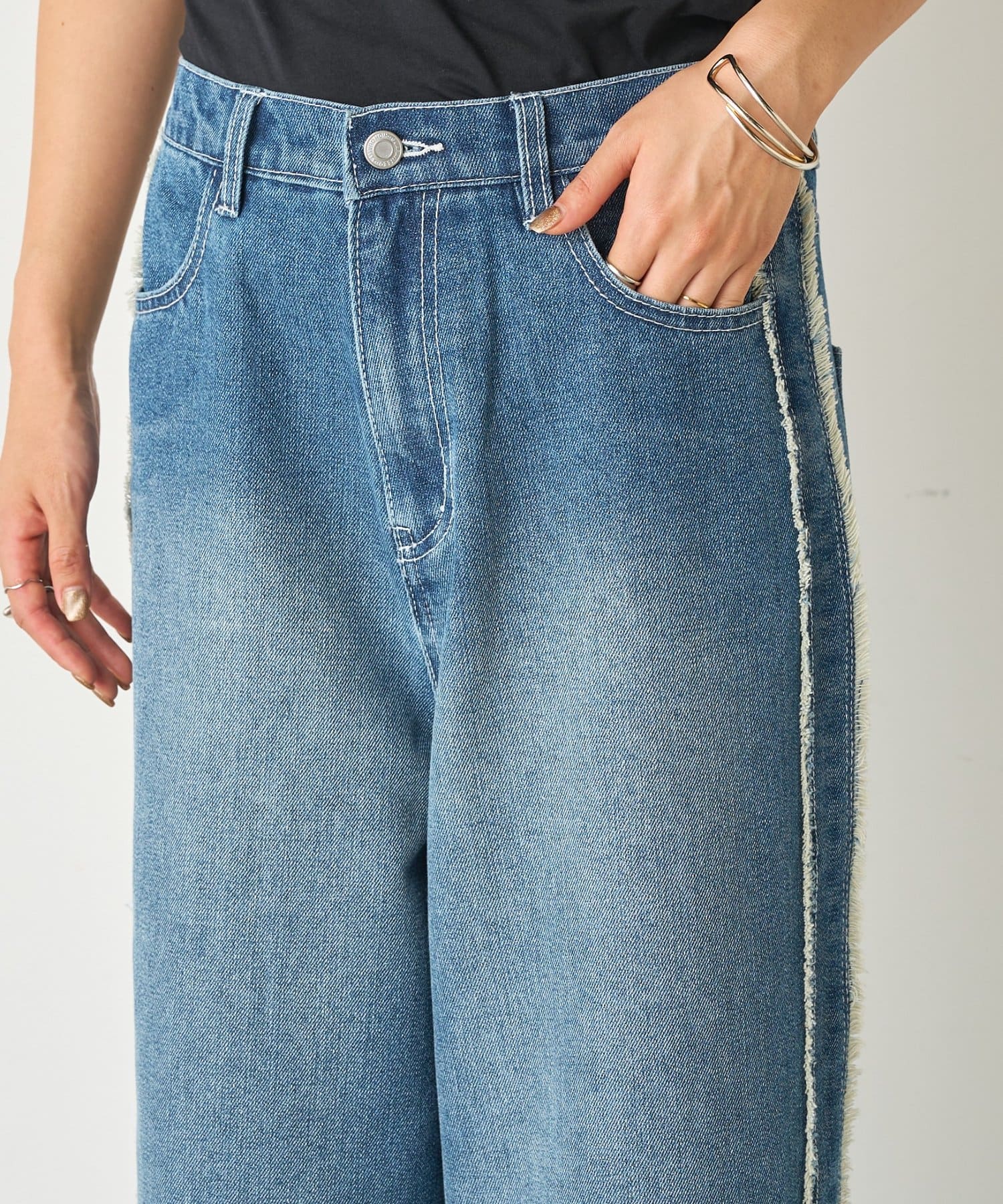 ・サイドにカジュアルなフリンジラインを施した美脚シルエットデニム。