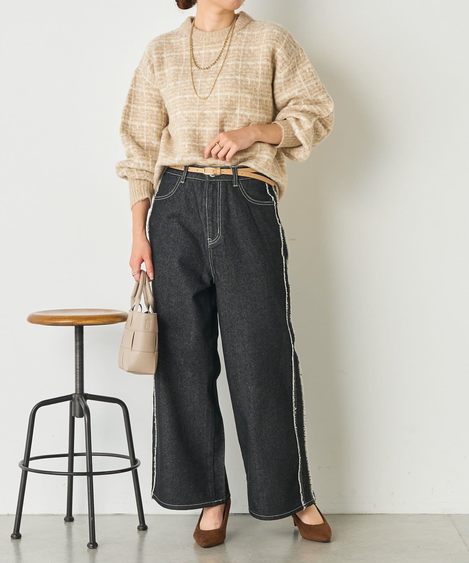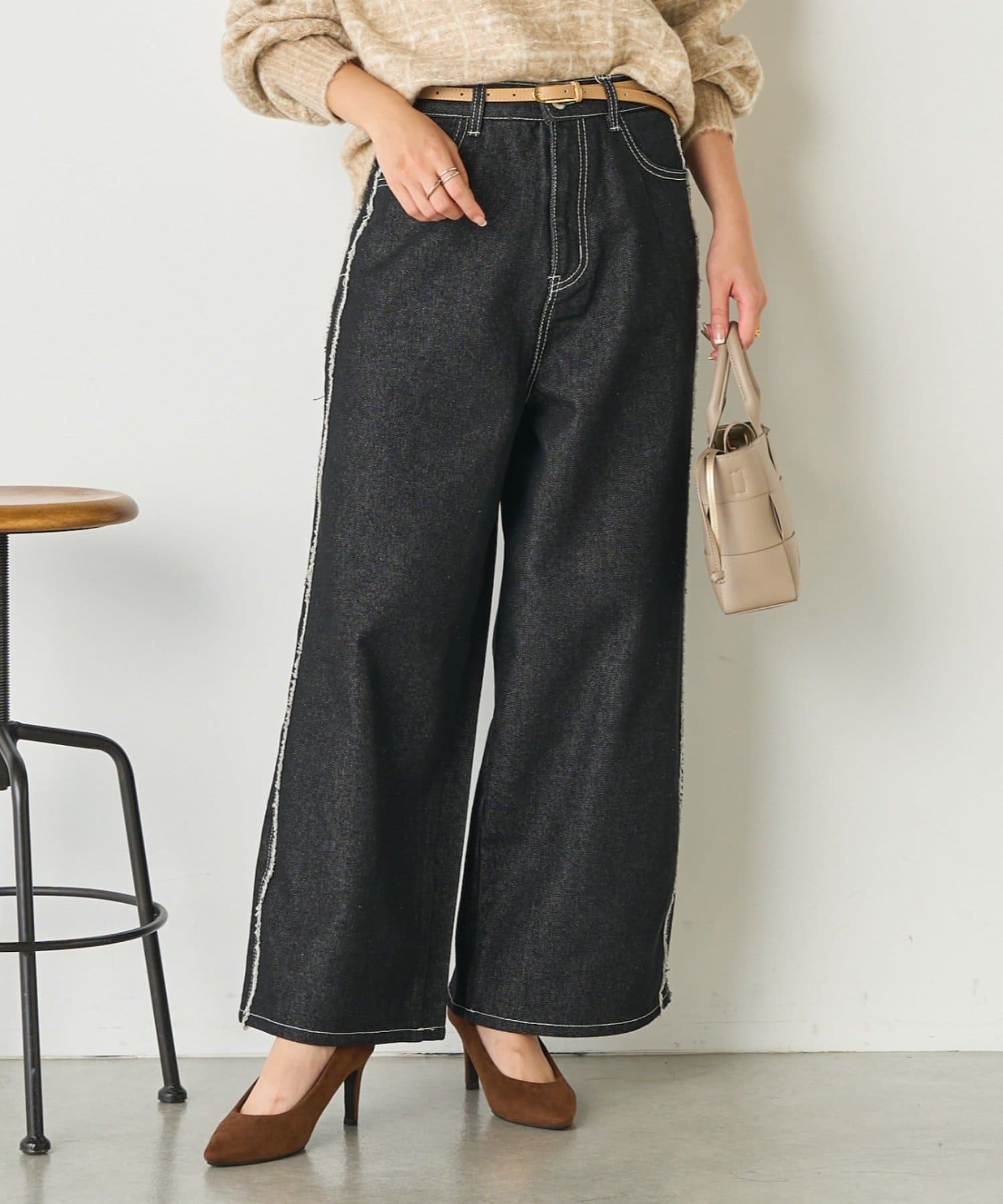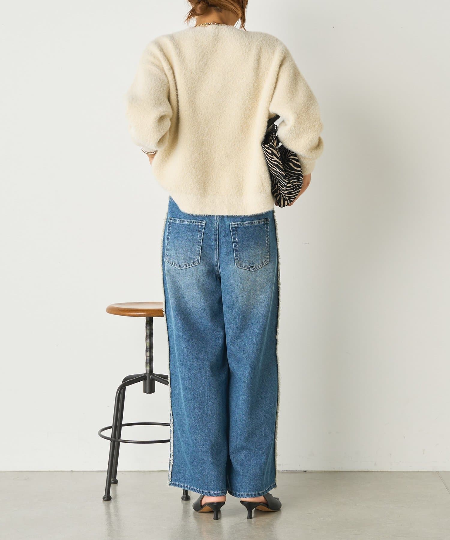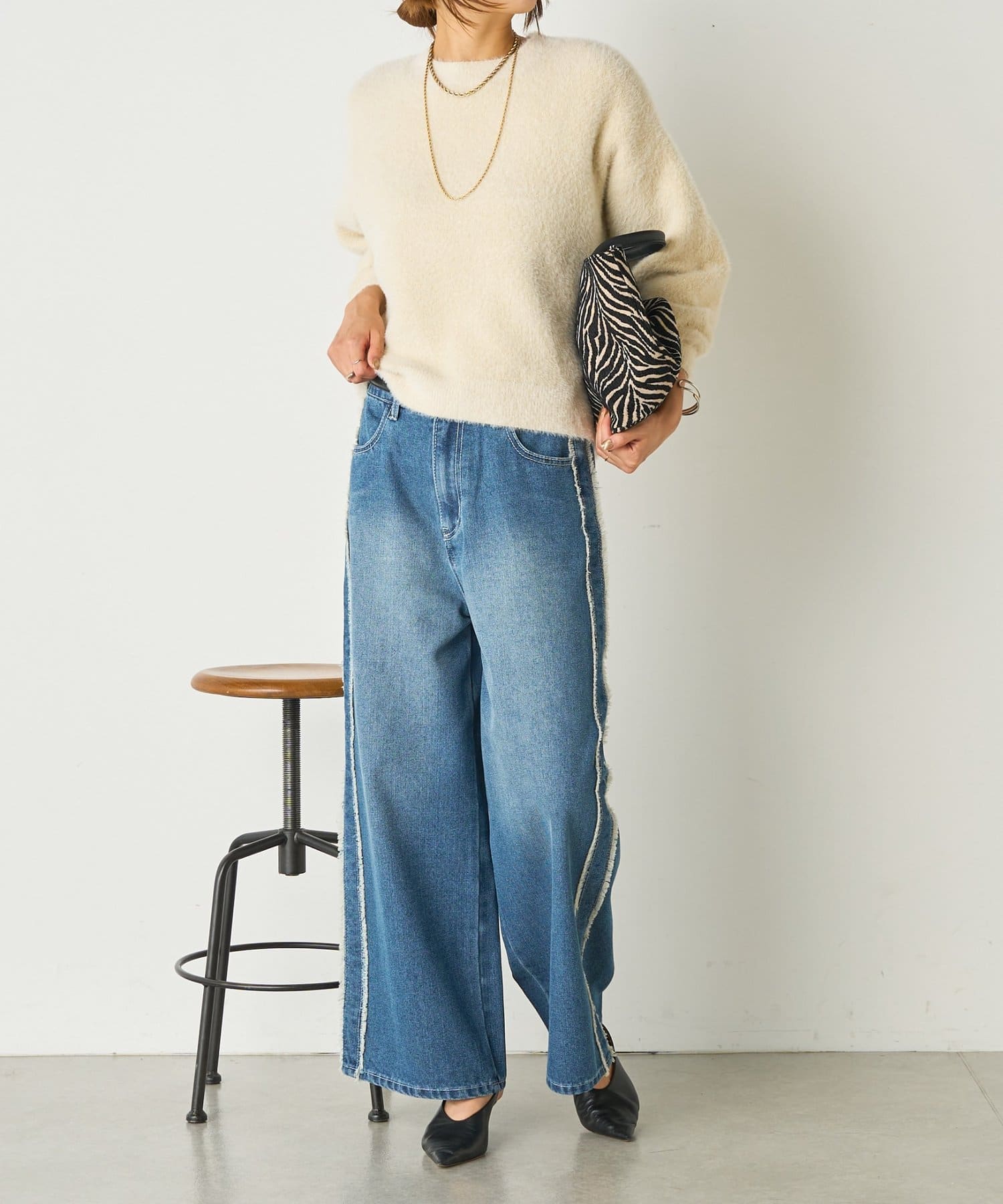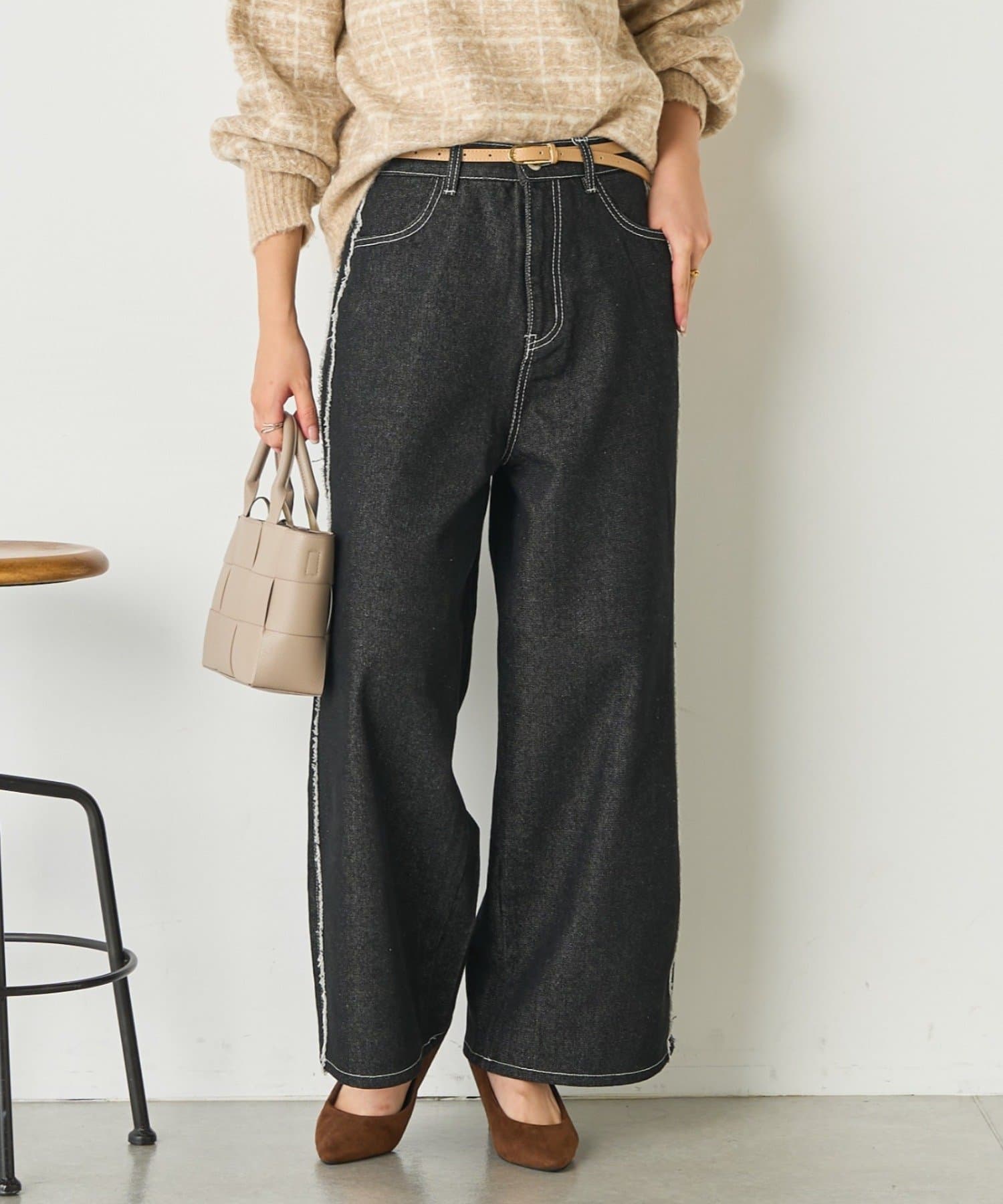 ・サイドにカジュアルなフリンジラインを施した美脚シルエットデニム。