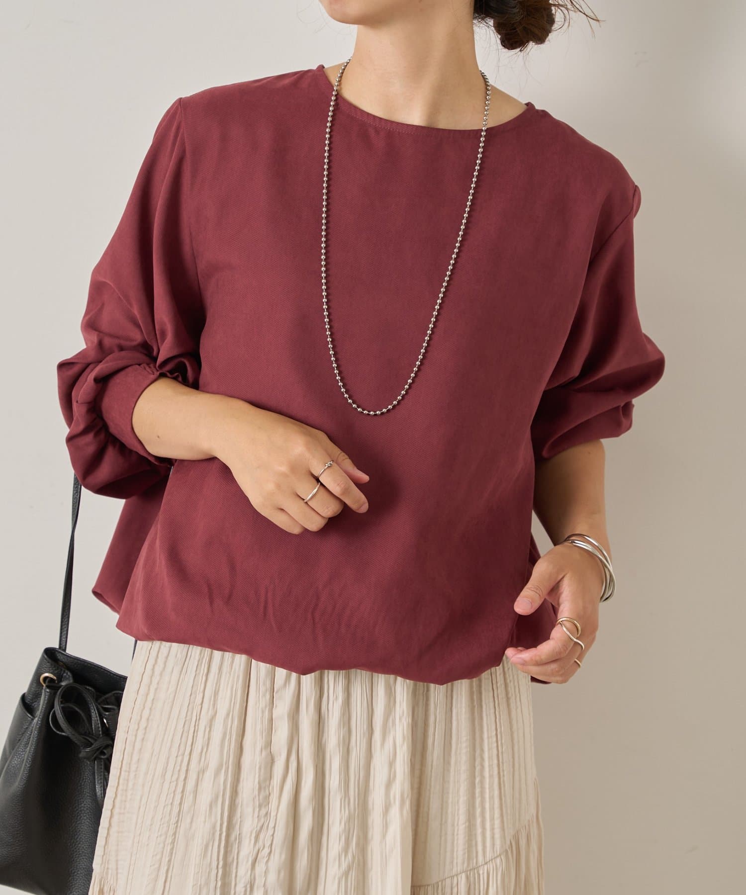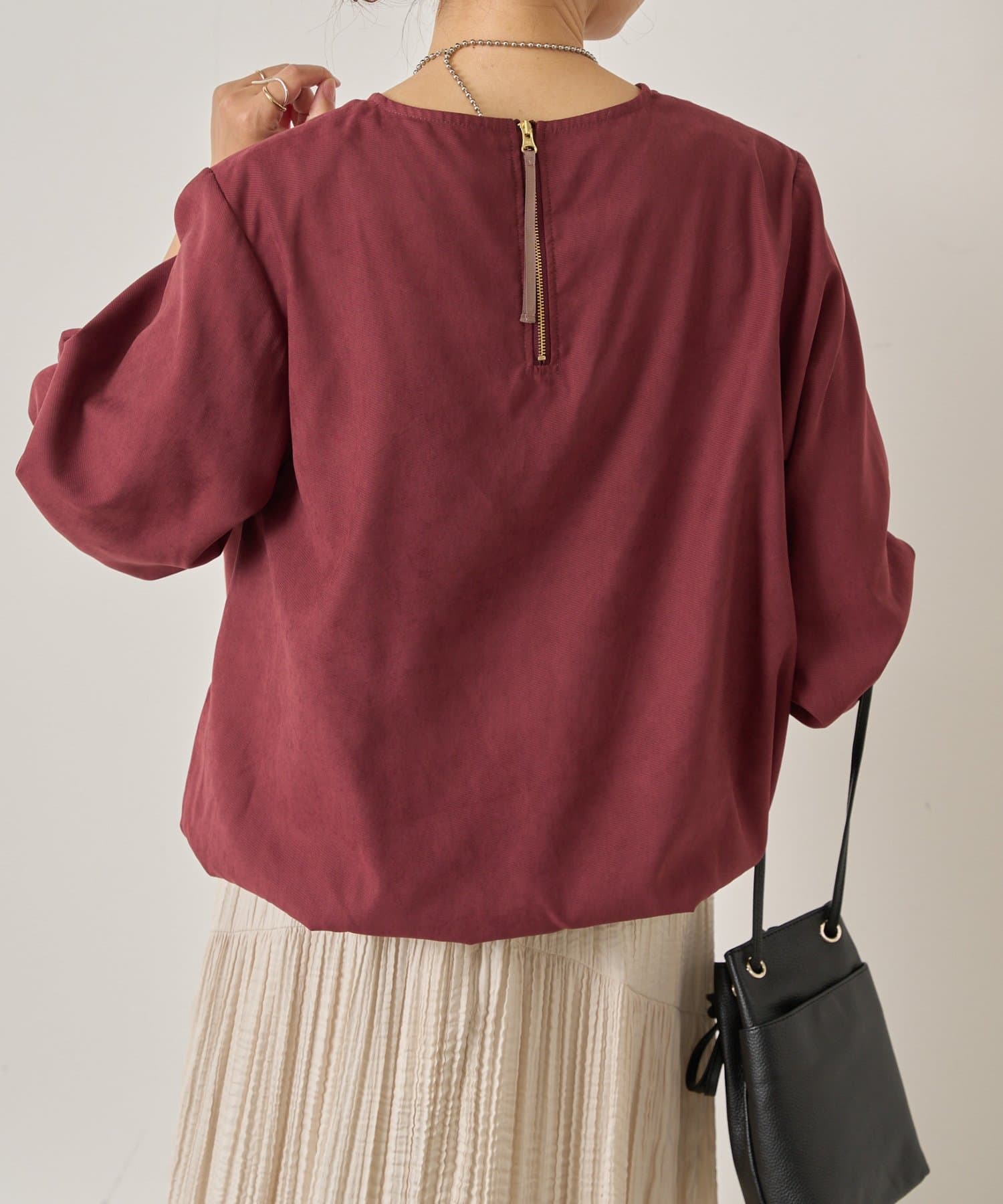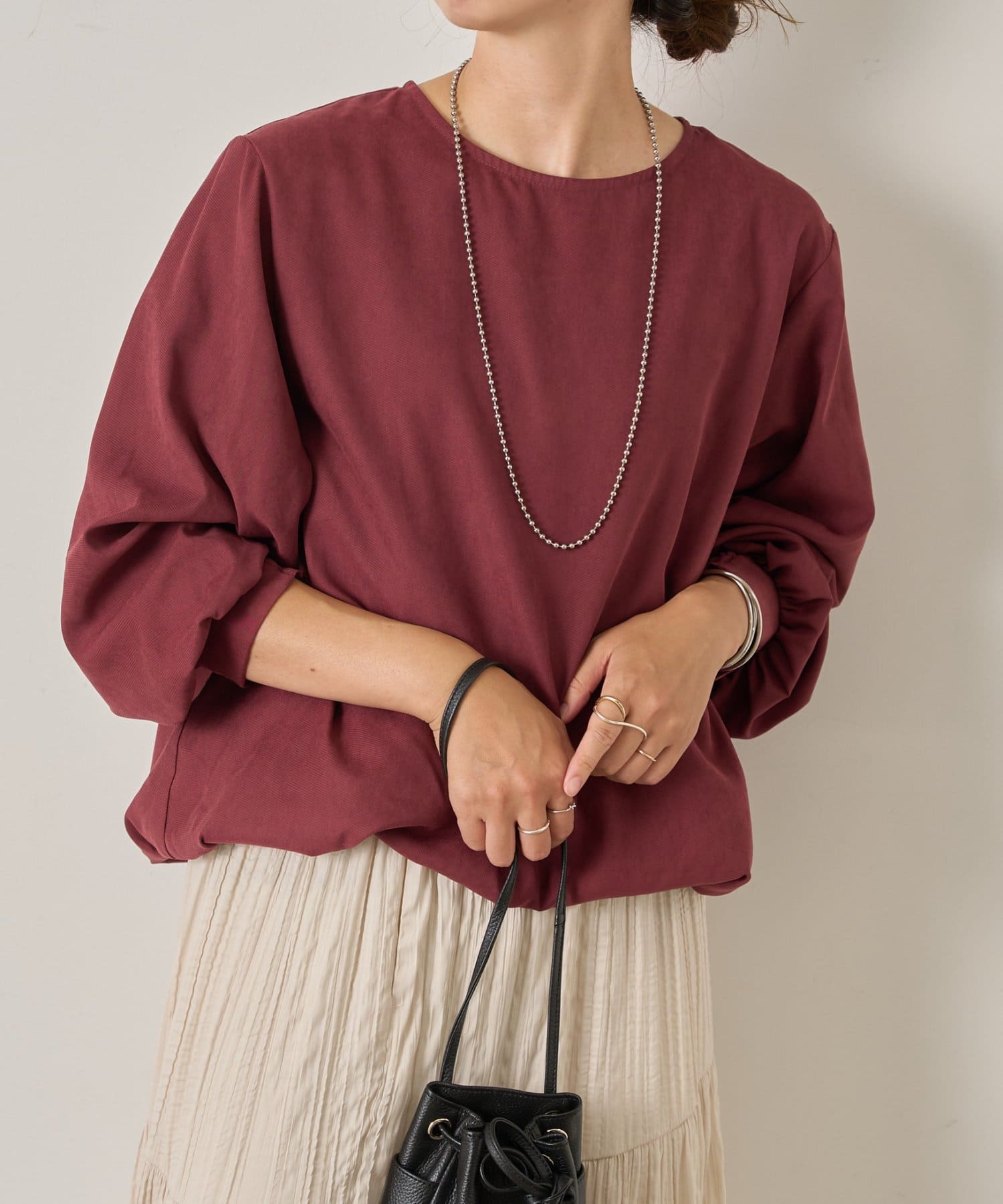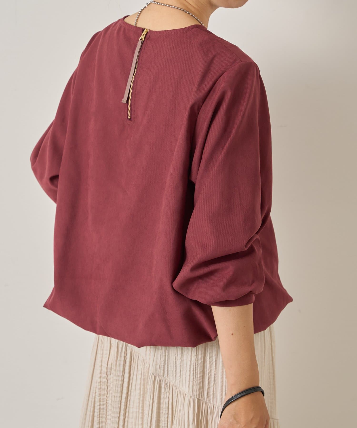 ・柔らかなピーチスキン素材を使用したふんわりとしたシルエットのバルーントップス。